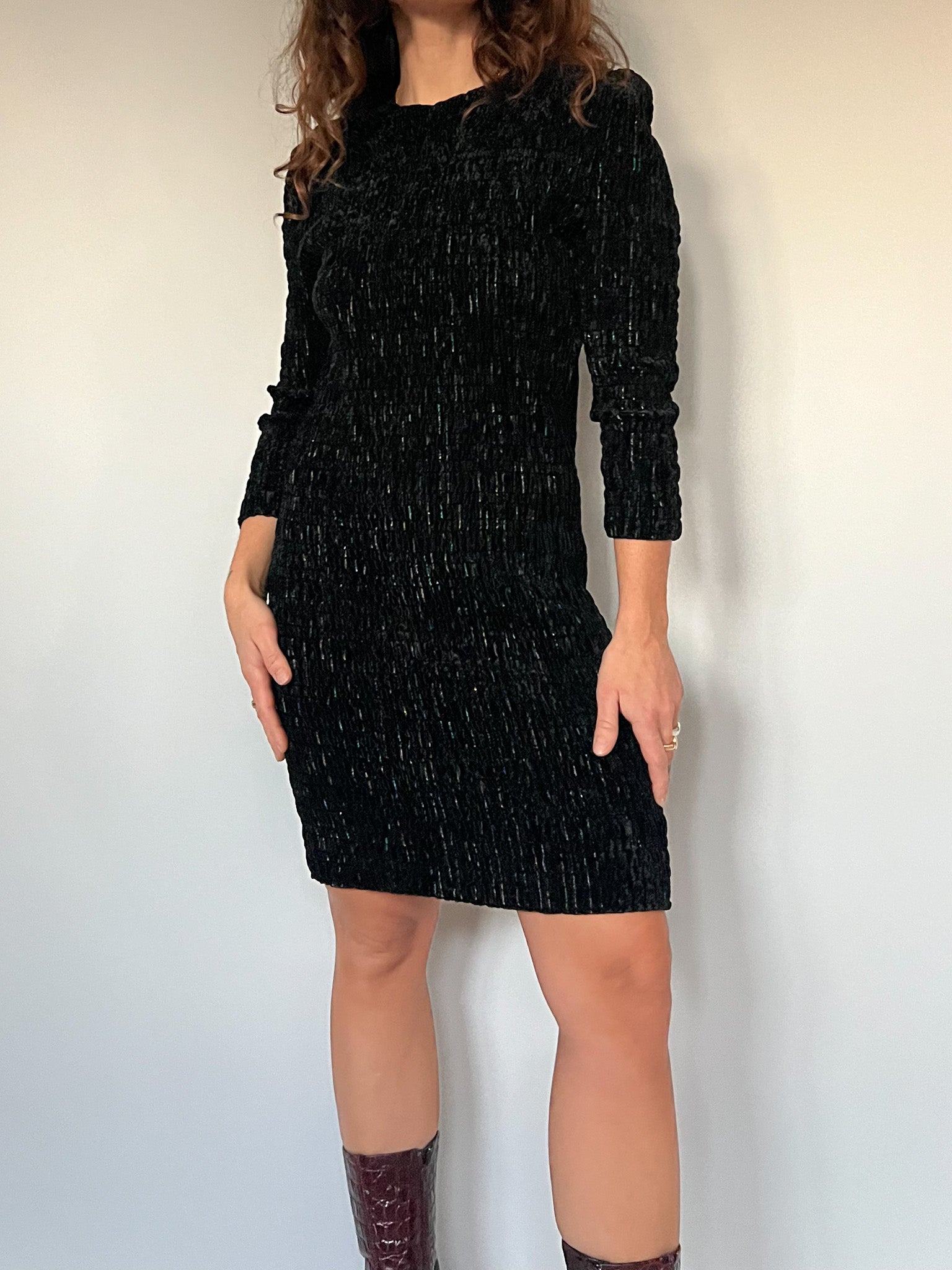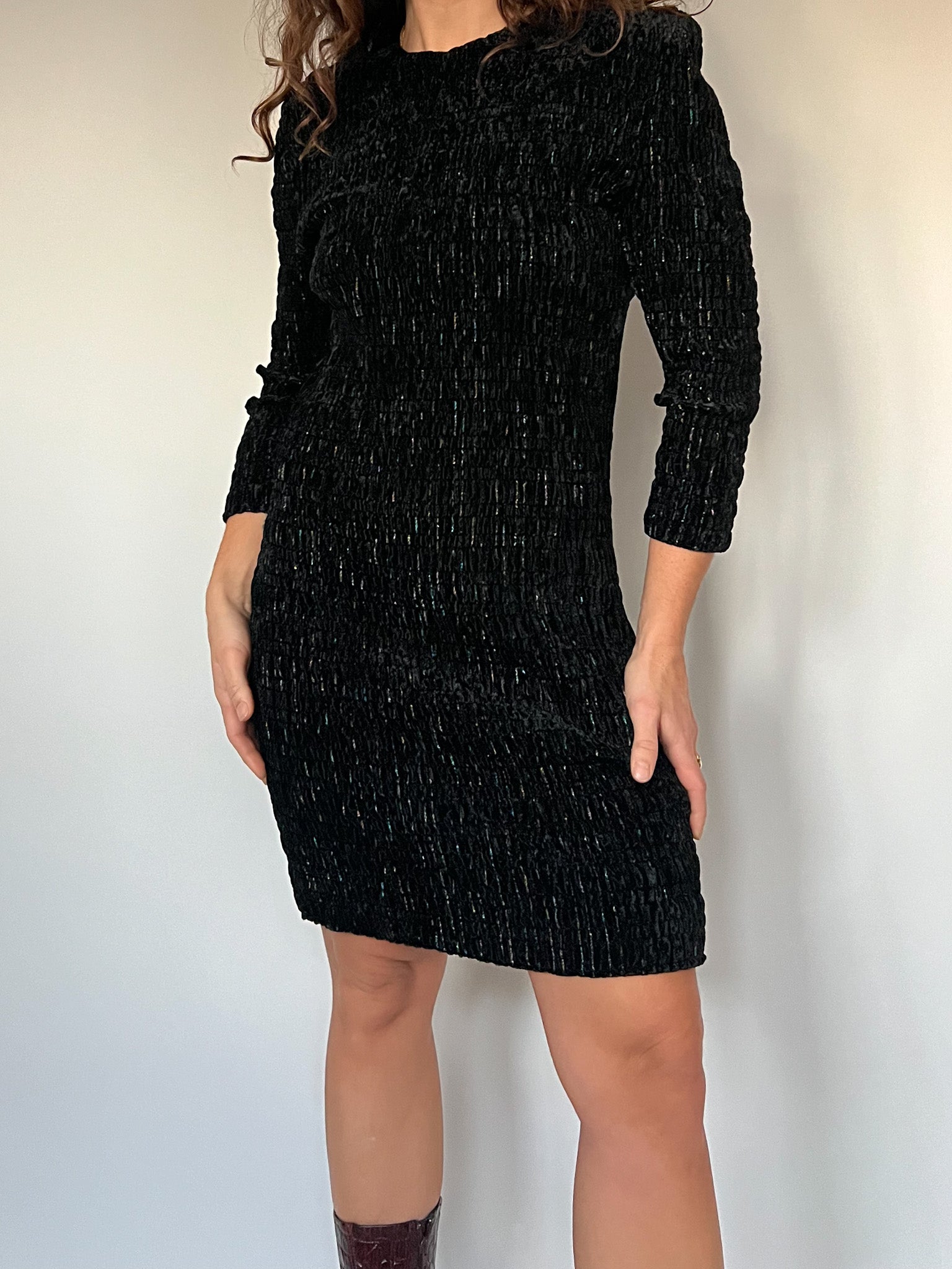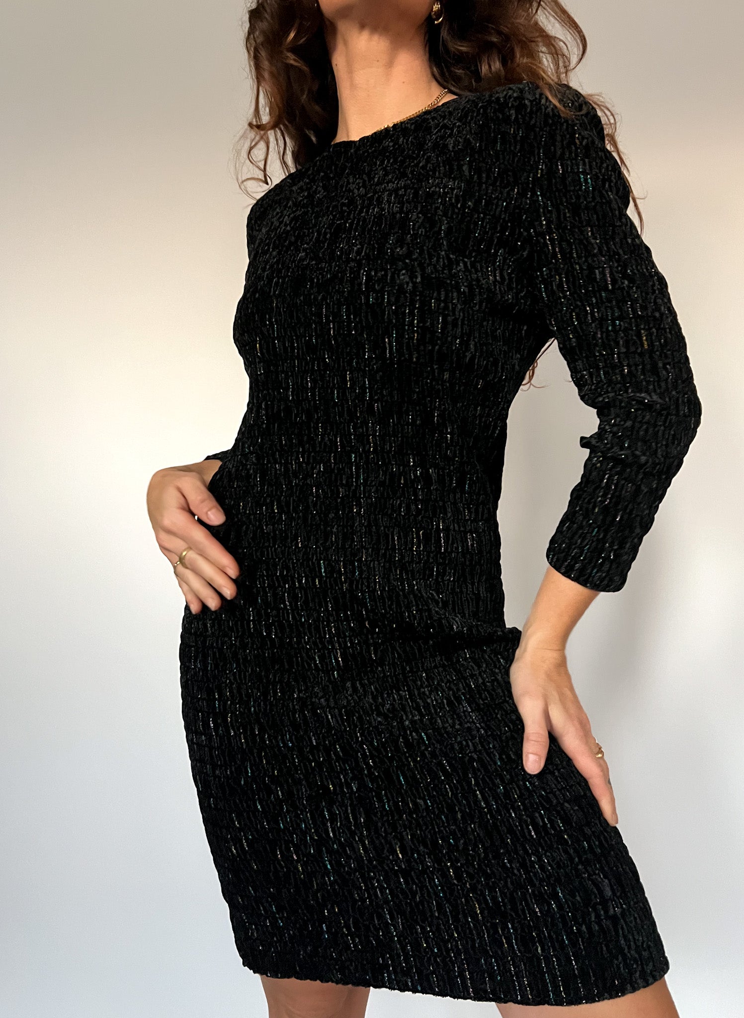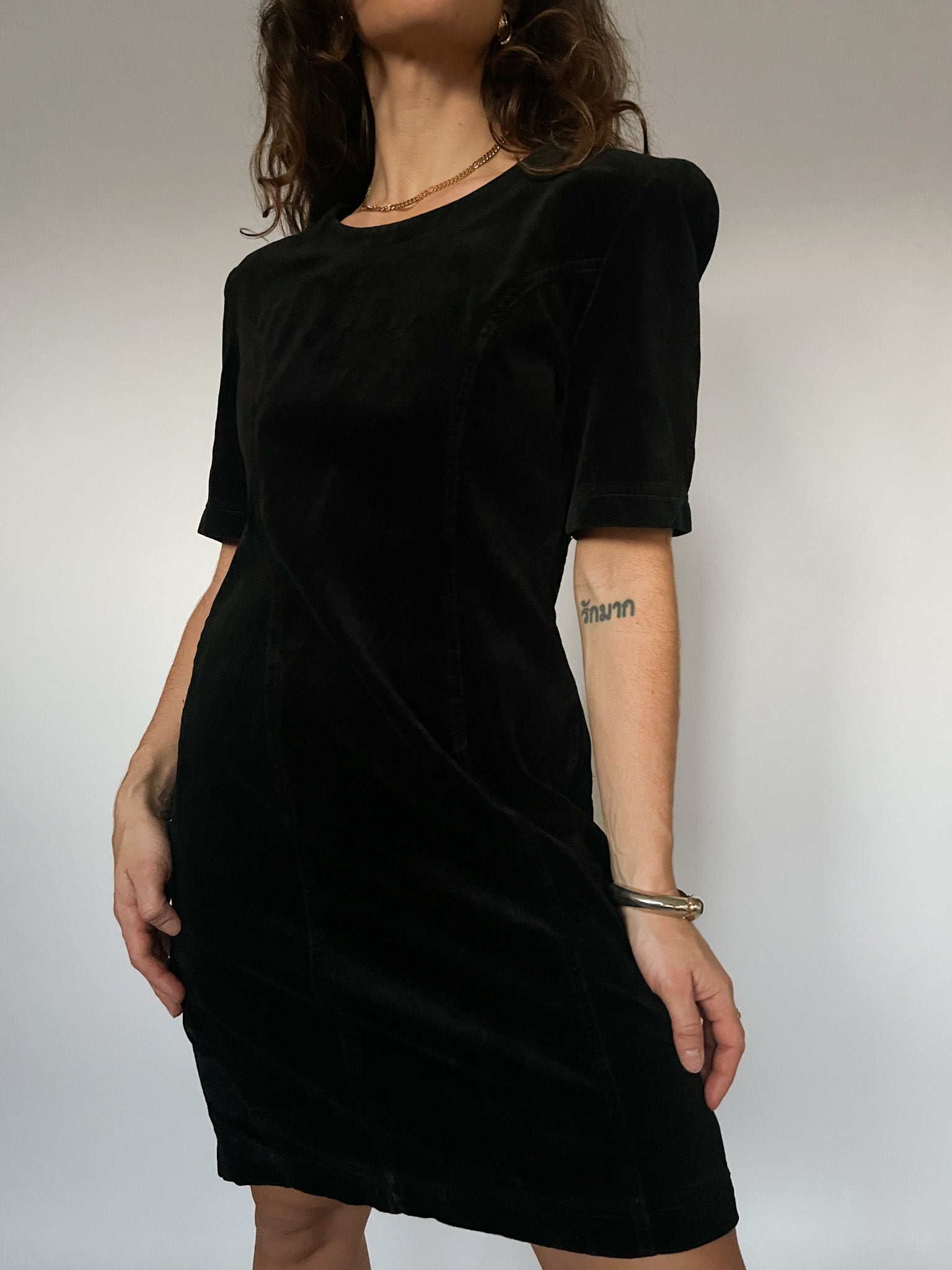 Vintage 90’s Black Velvet Wrap Effect Mini Dress