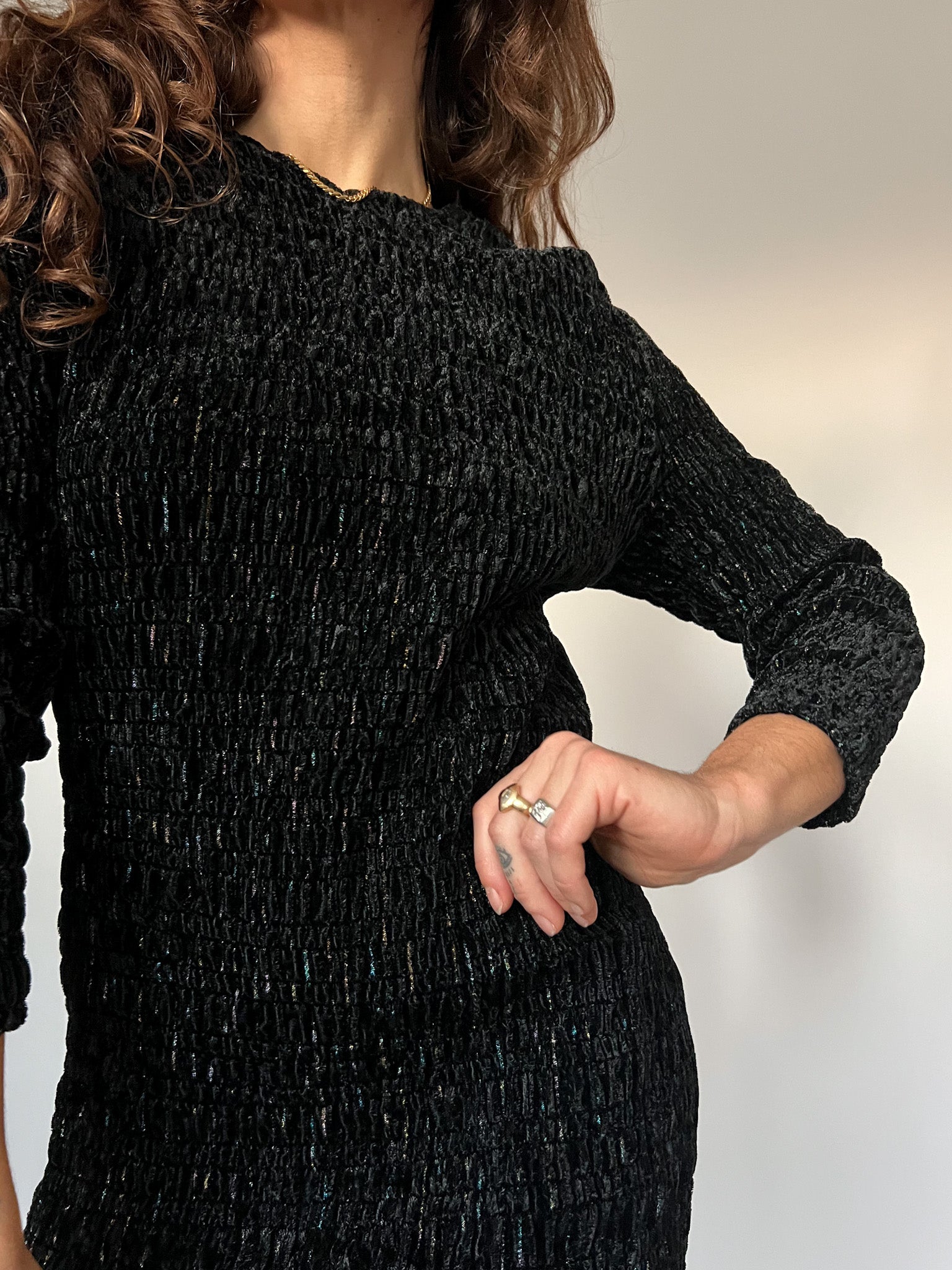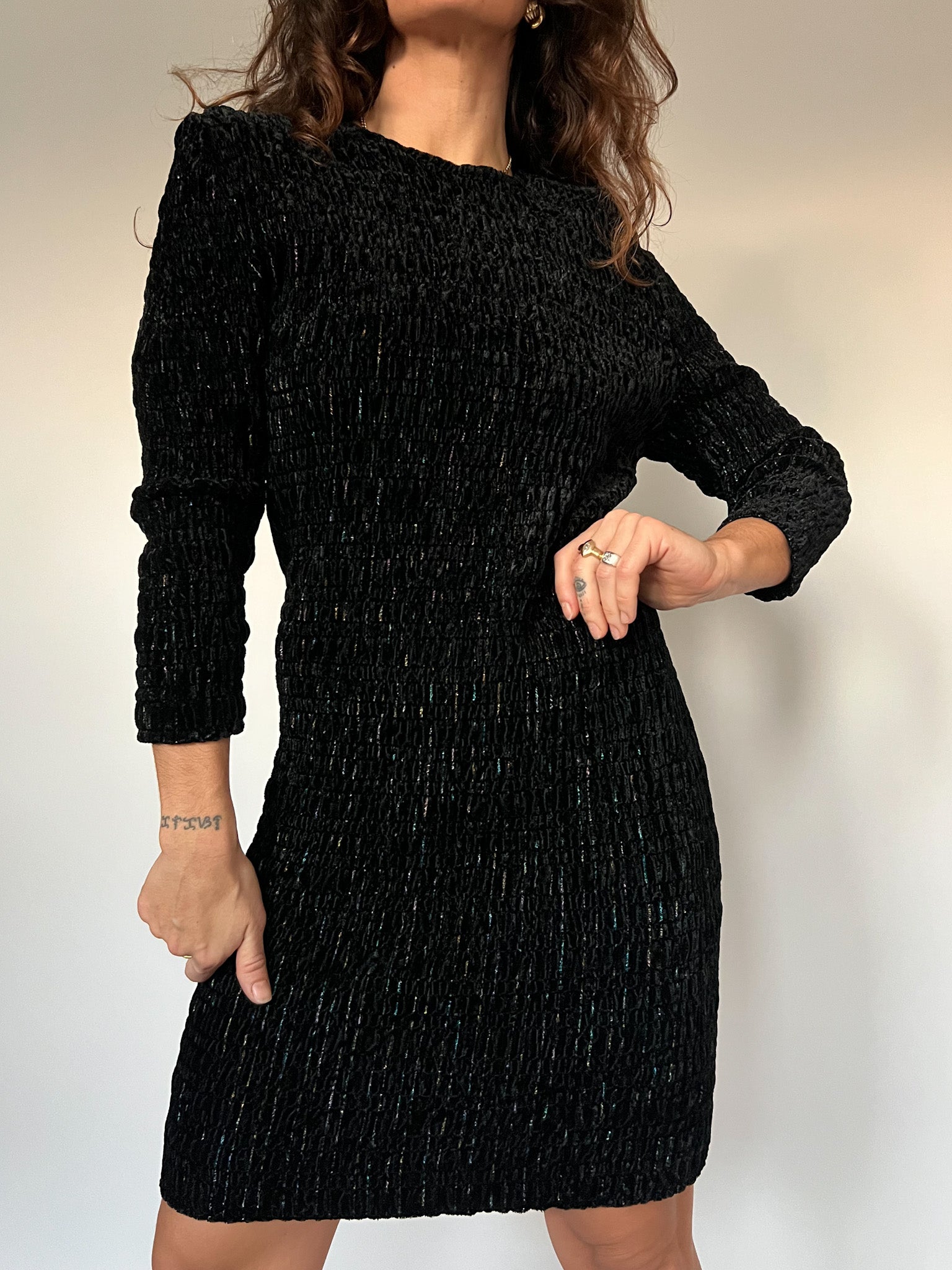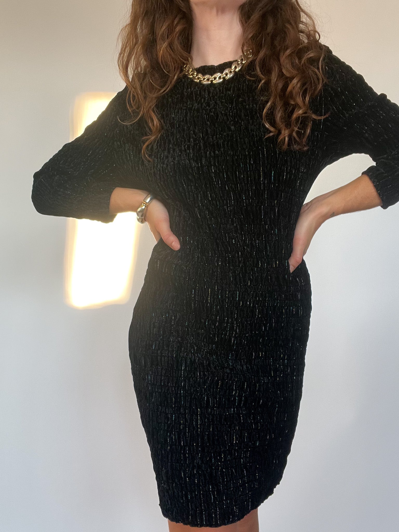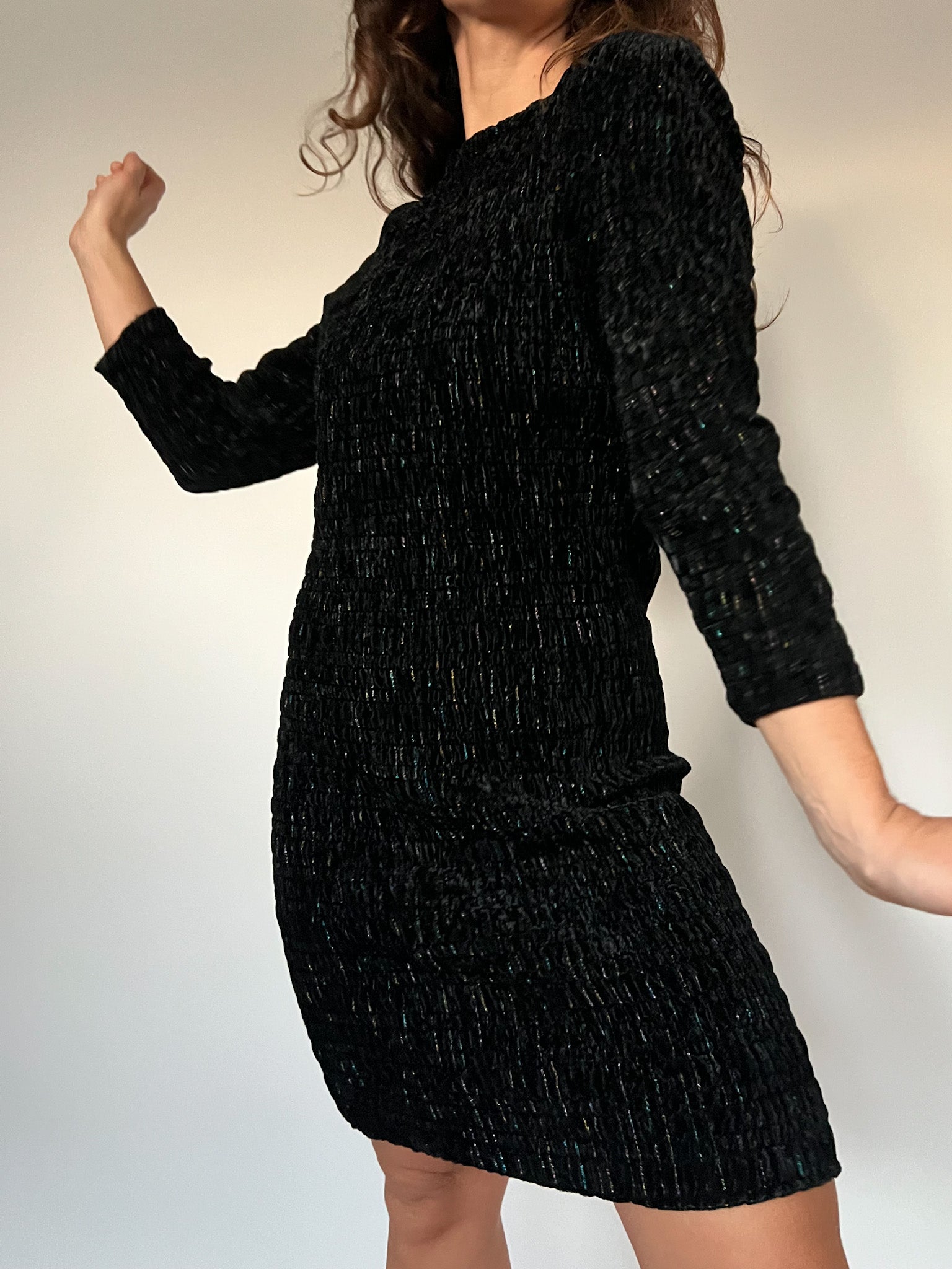 Vintage 90’s Black Velvet Wrap Effect Mini Dress