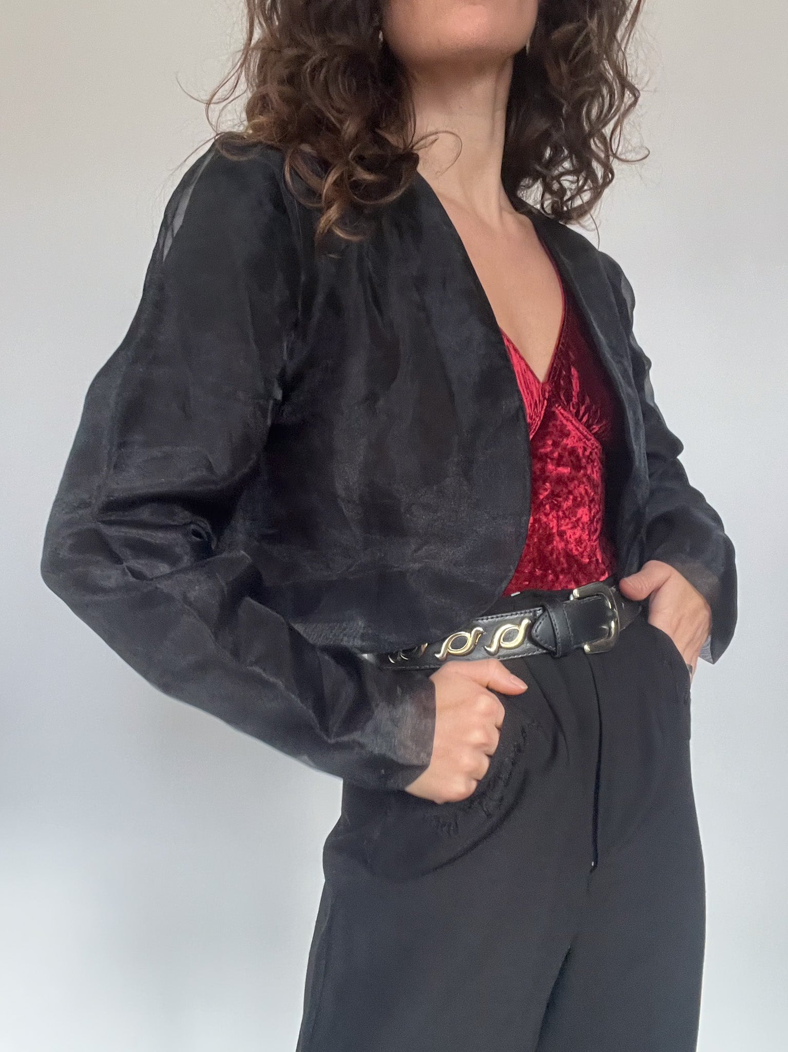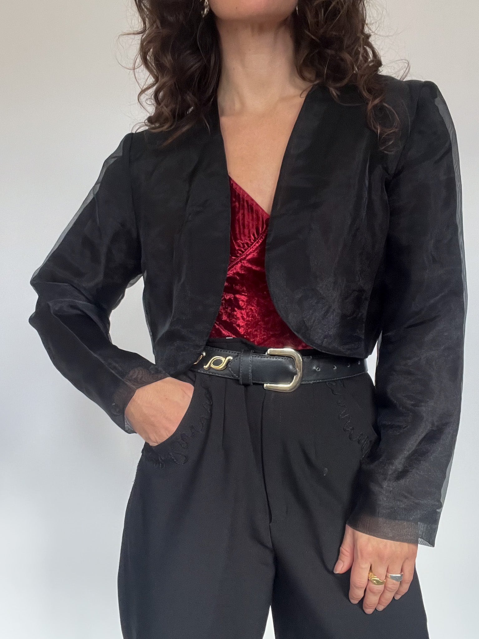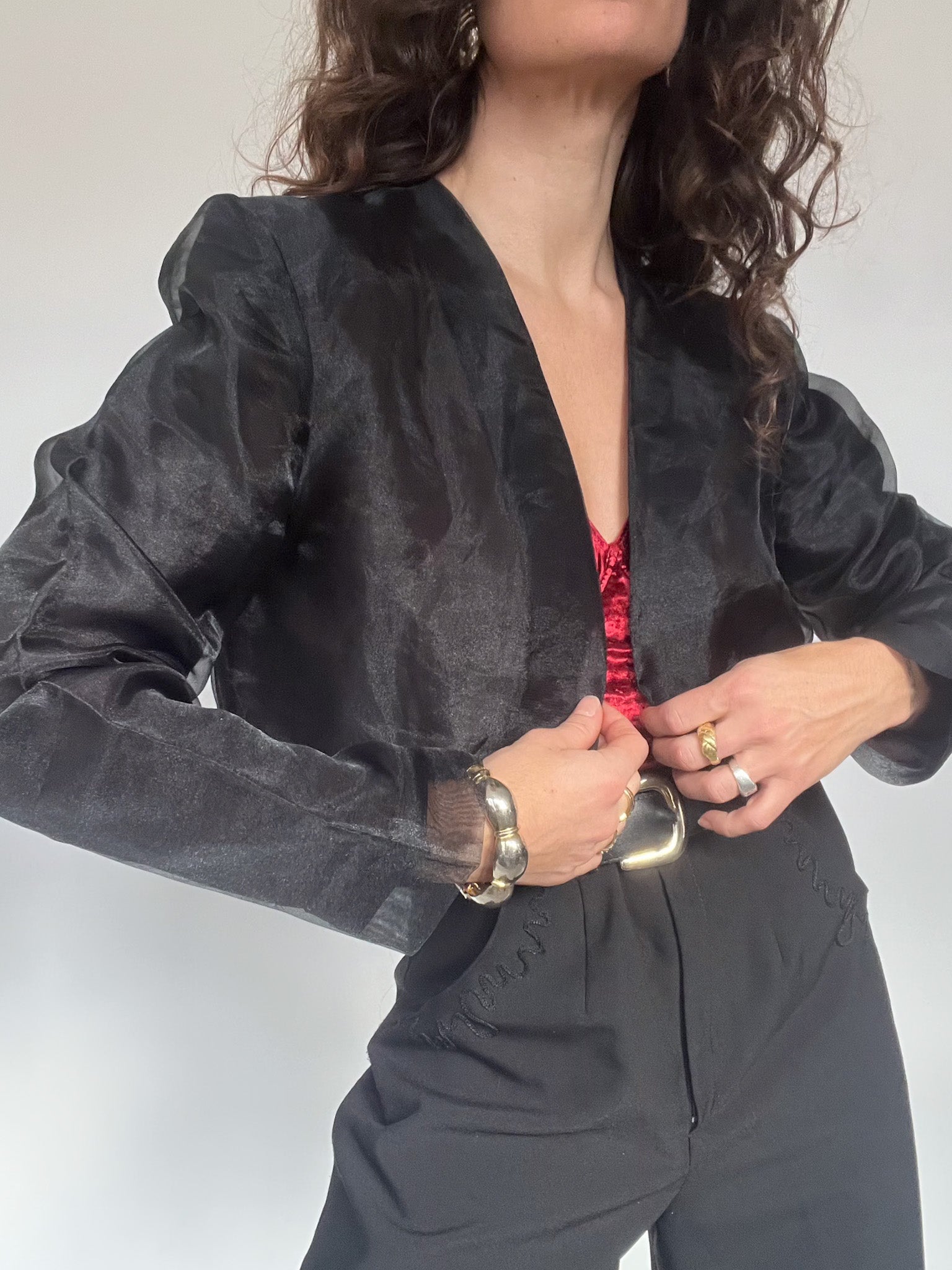 Vintage 90’s Black Sheer-Sleeve Cropped Blazer