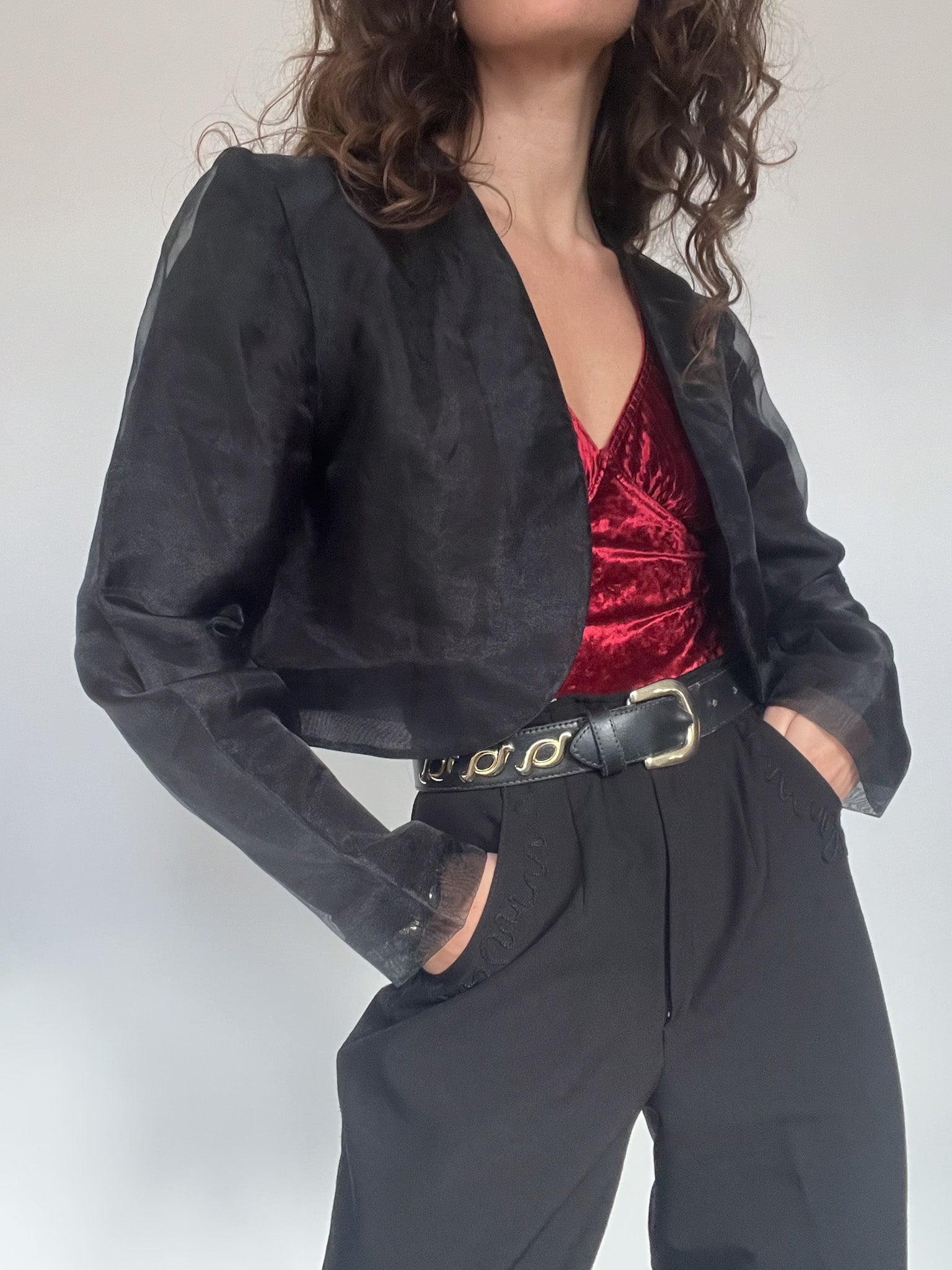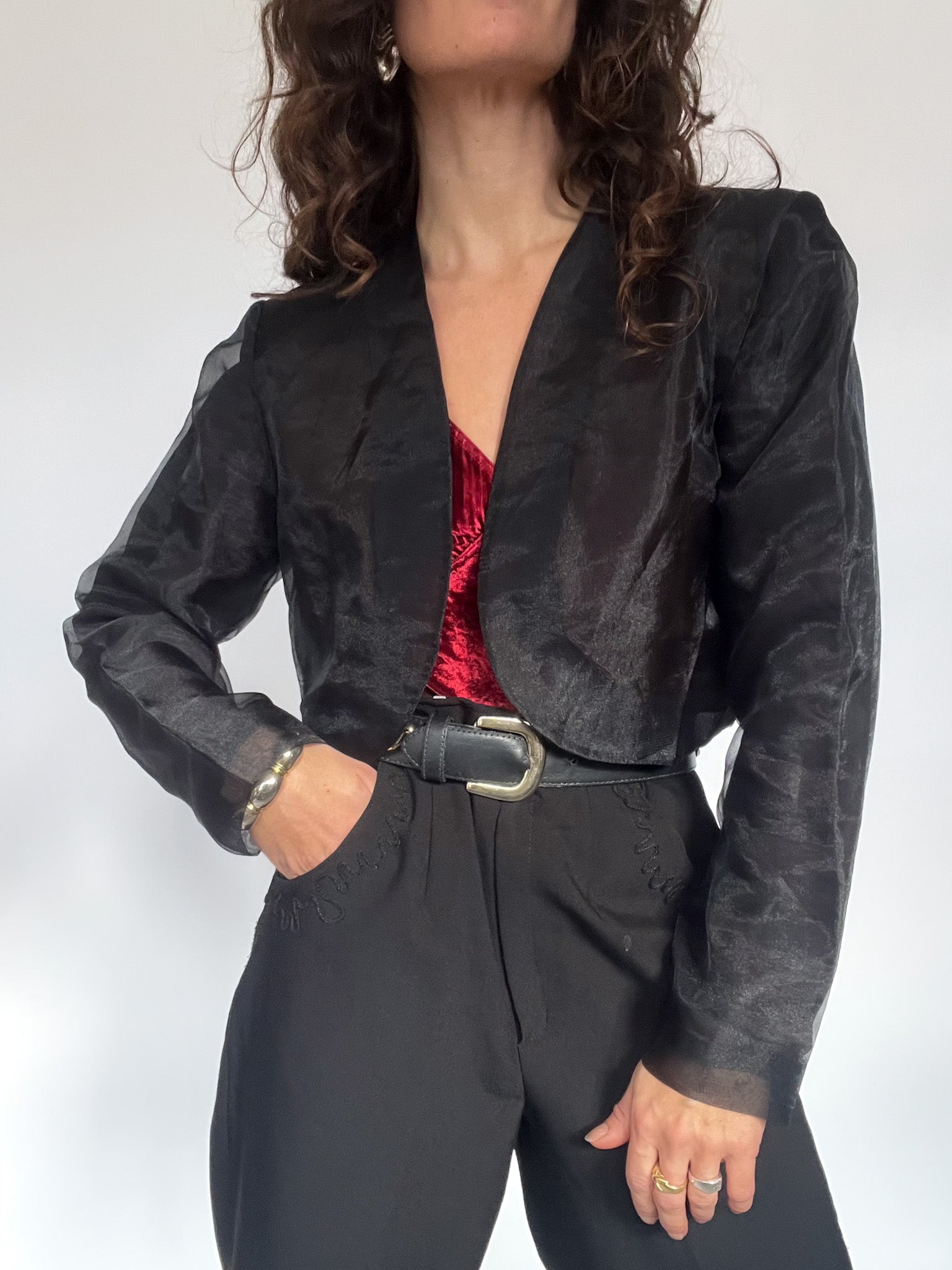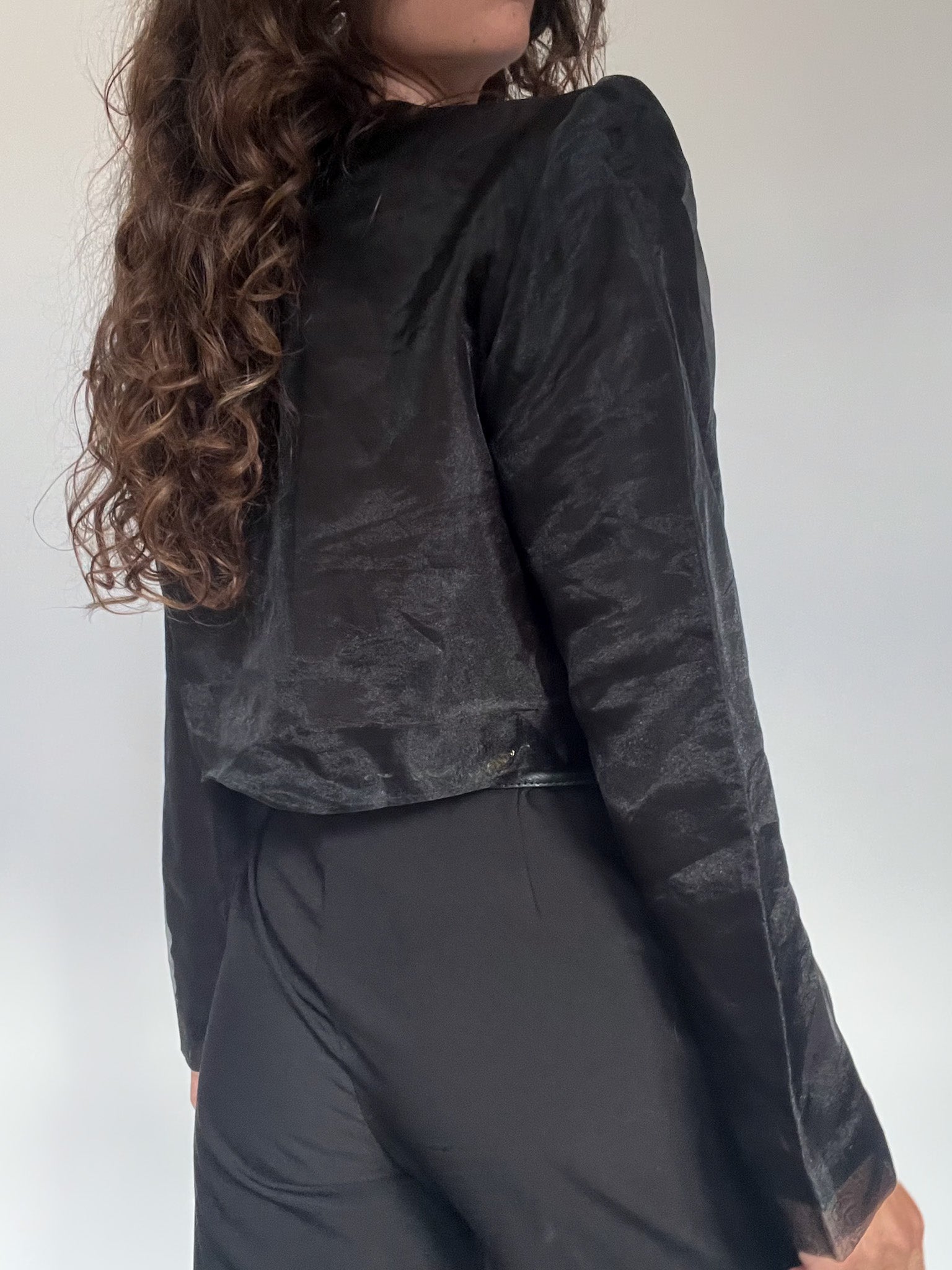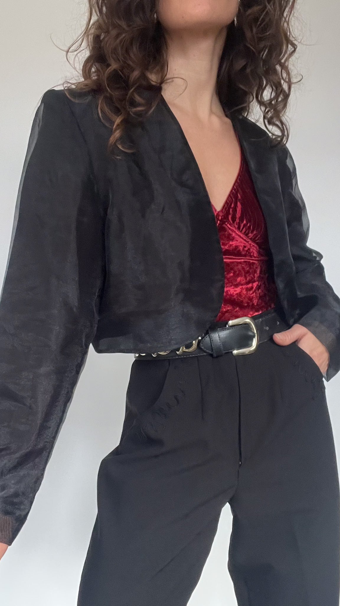 Vintage 90’s Black Sheer-Sleeve Cropped Blazer