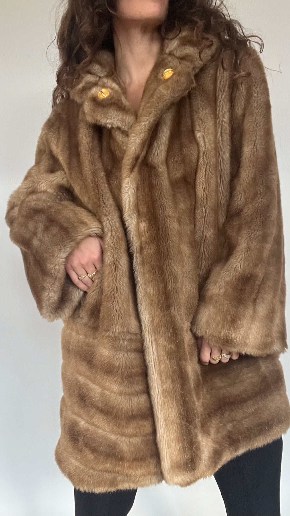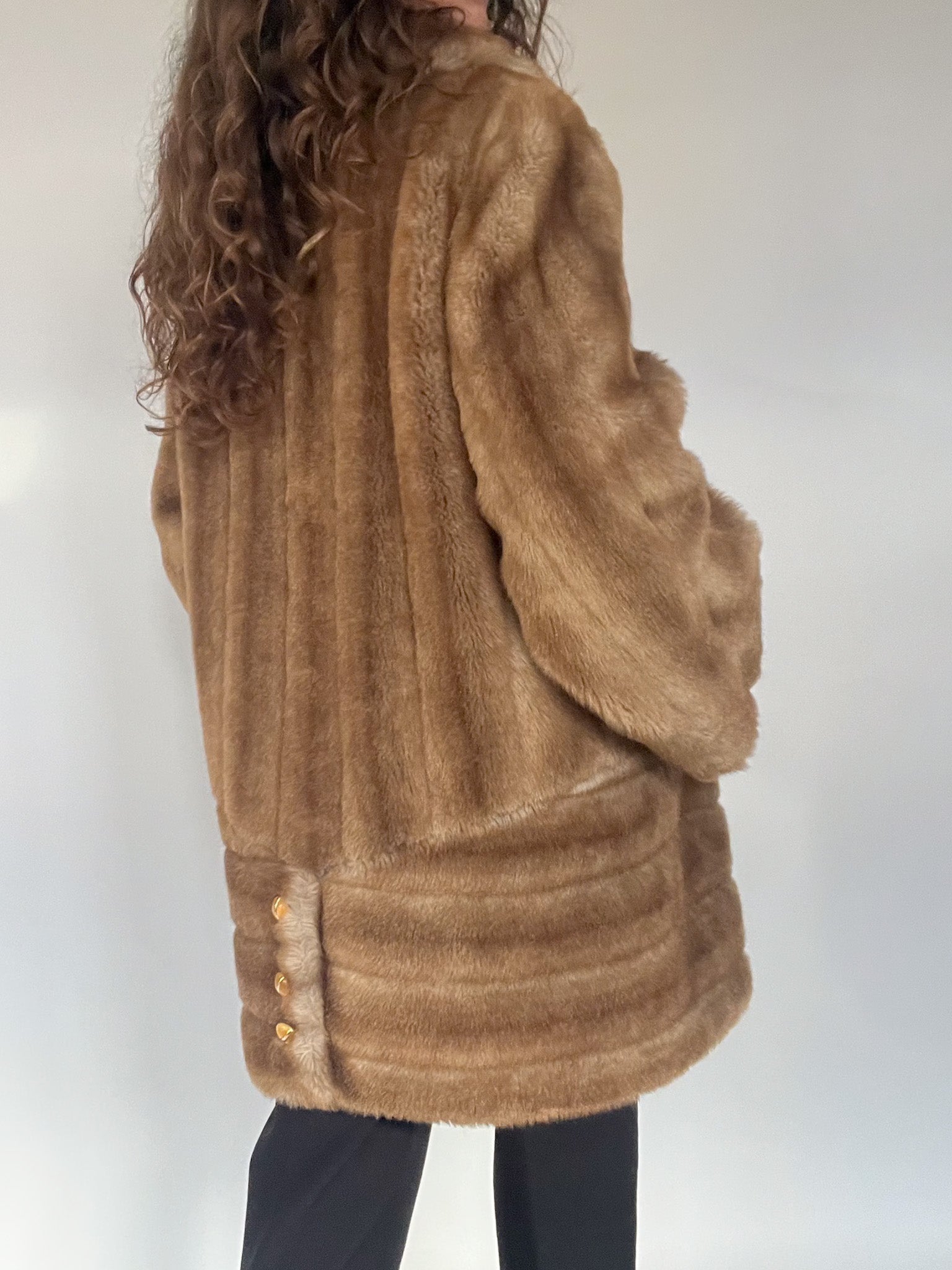 Vintage 90’s Beige Faux Fur Coat with Gold Statement Buttons