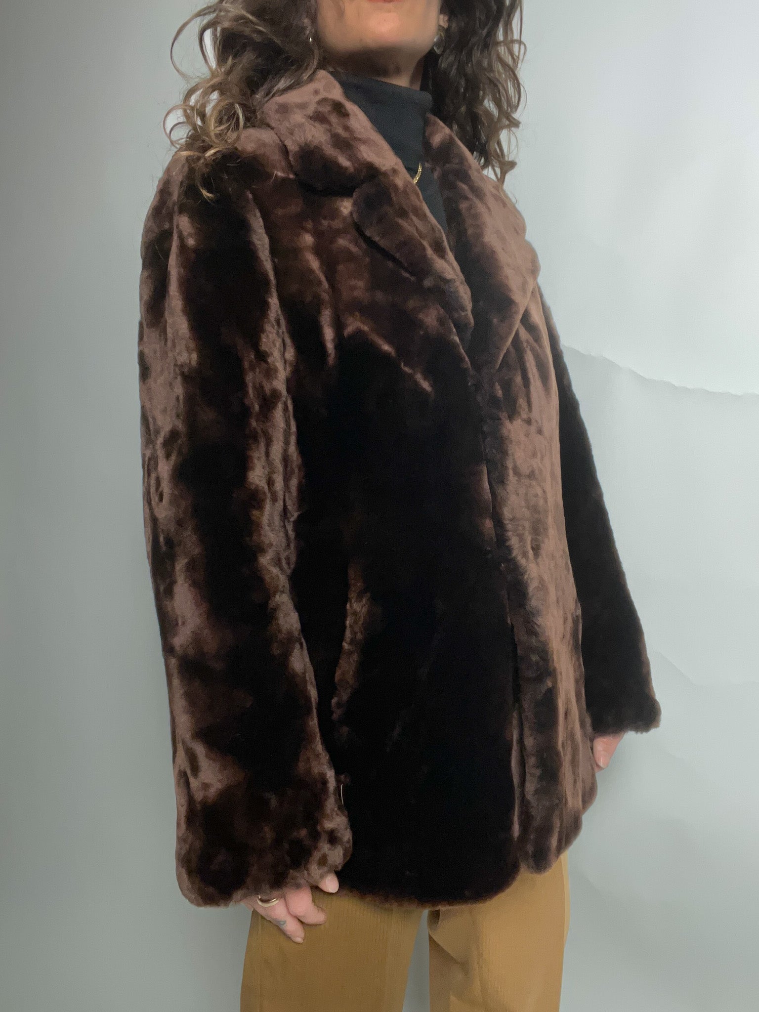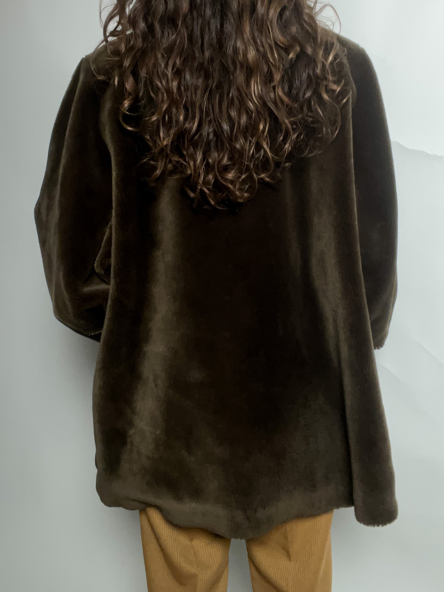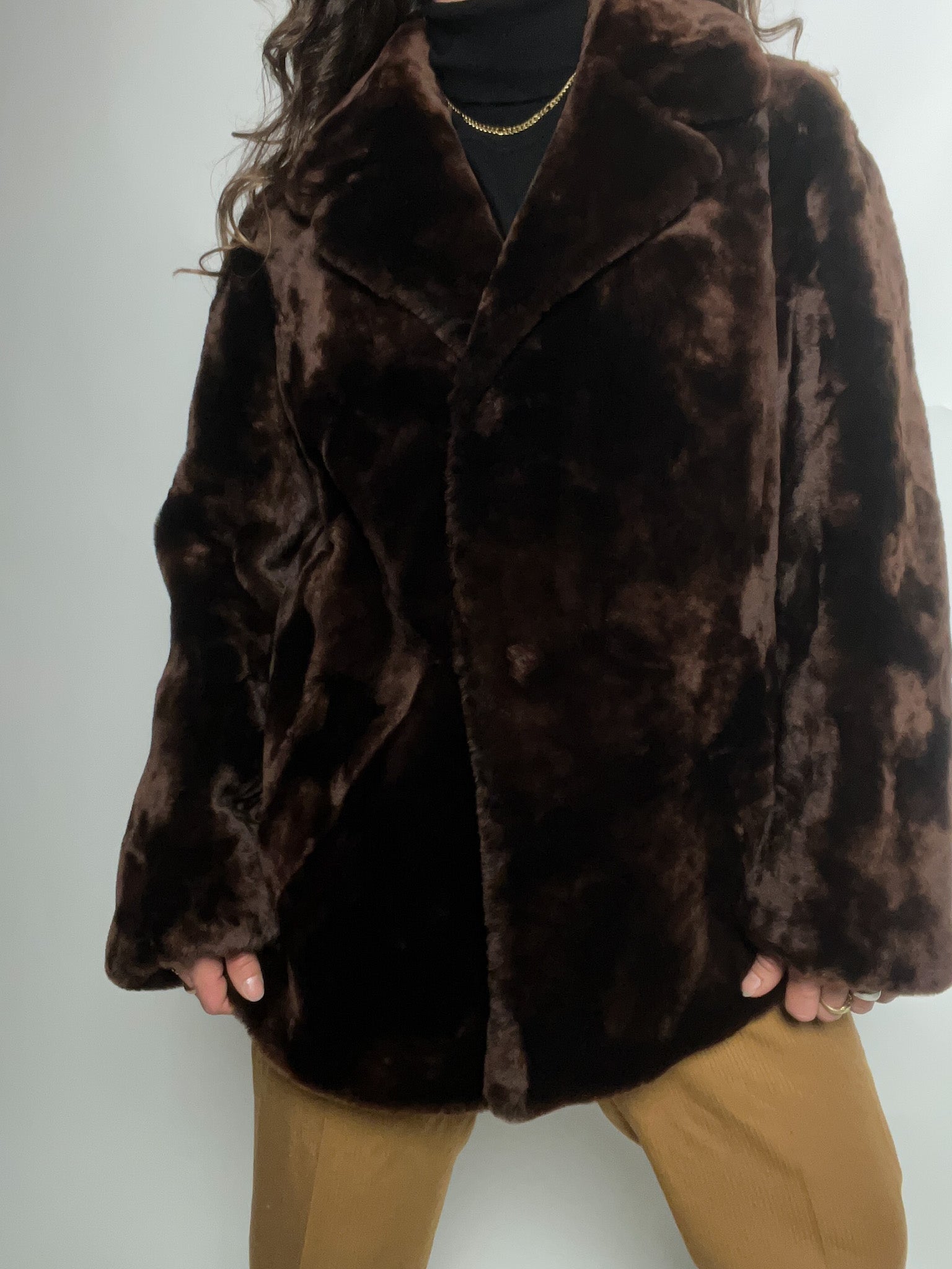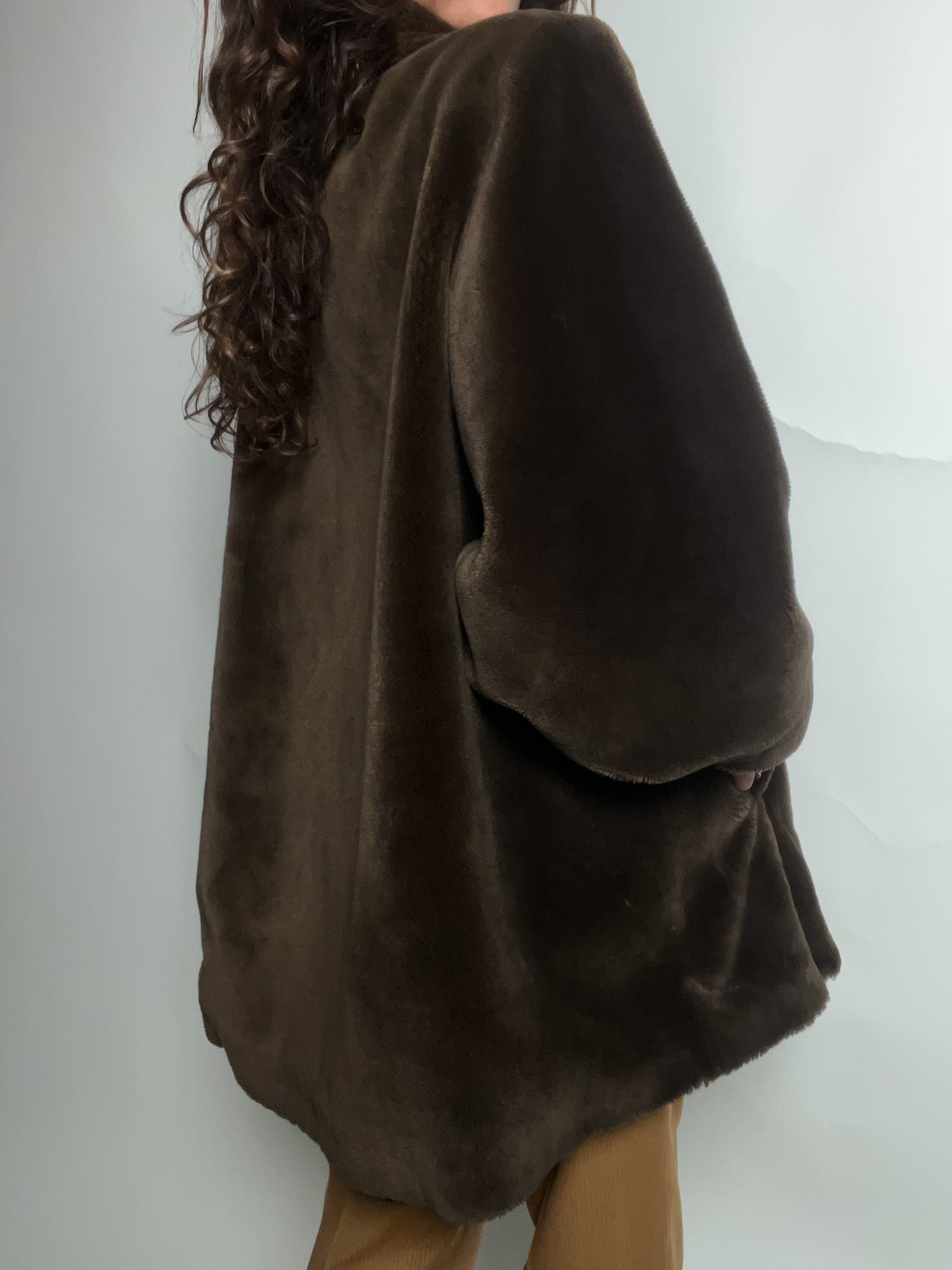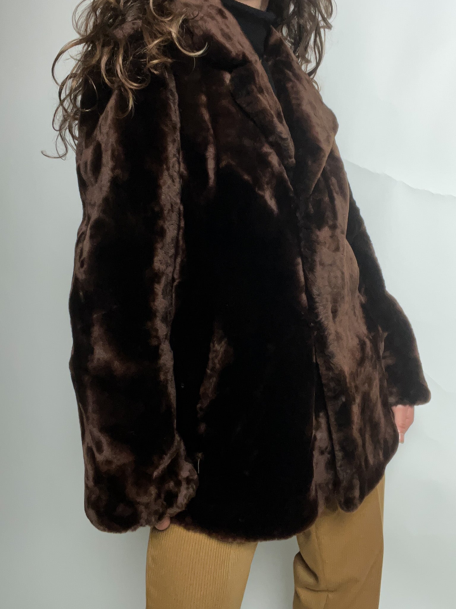 Vintage 90’s Dark Chocolate Faux Fur Coat with Deep Shawl Collar