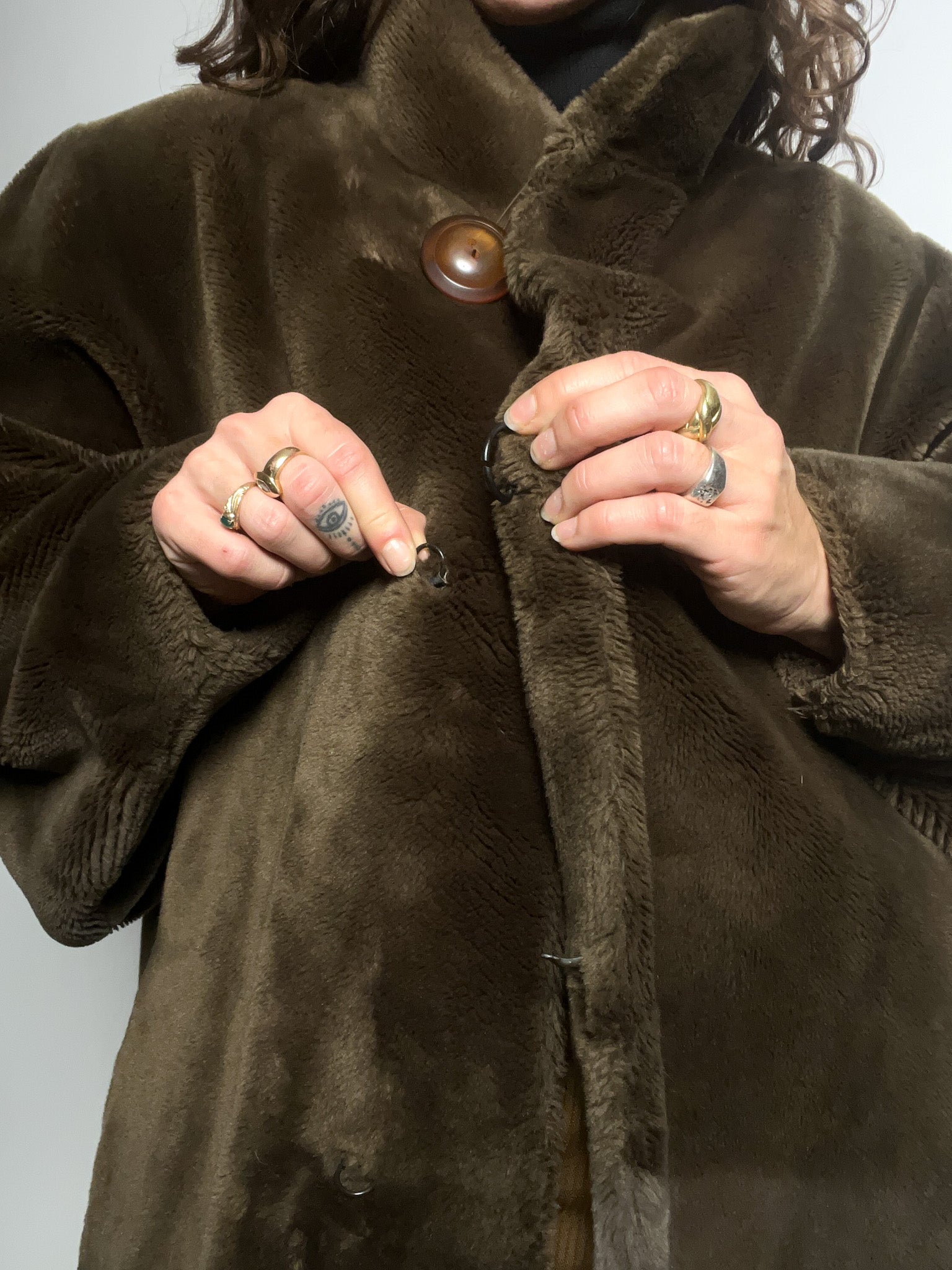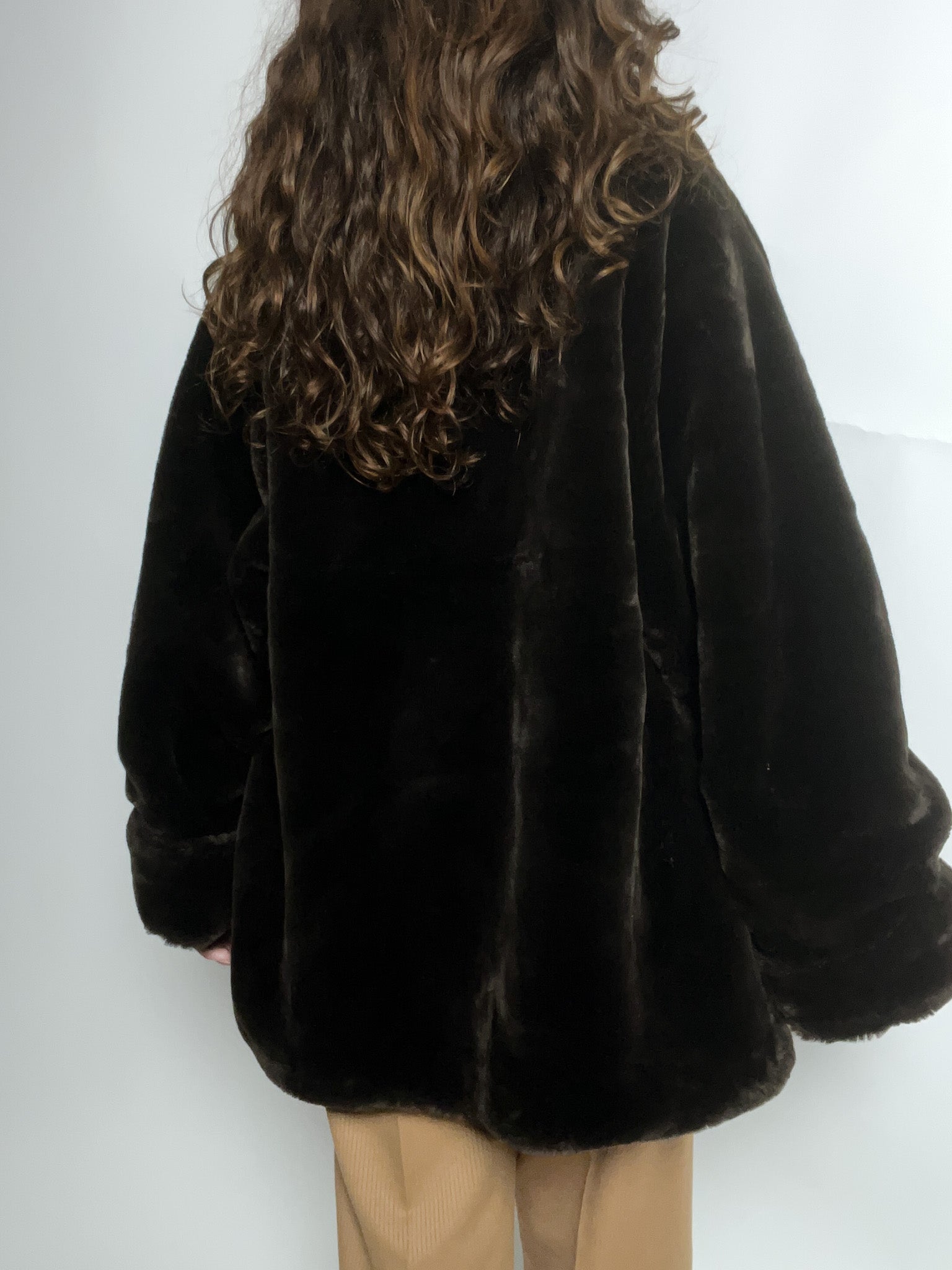 Vintage 90’s Dark Brown Faux Fur Coat with Oversized Collar