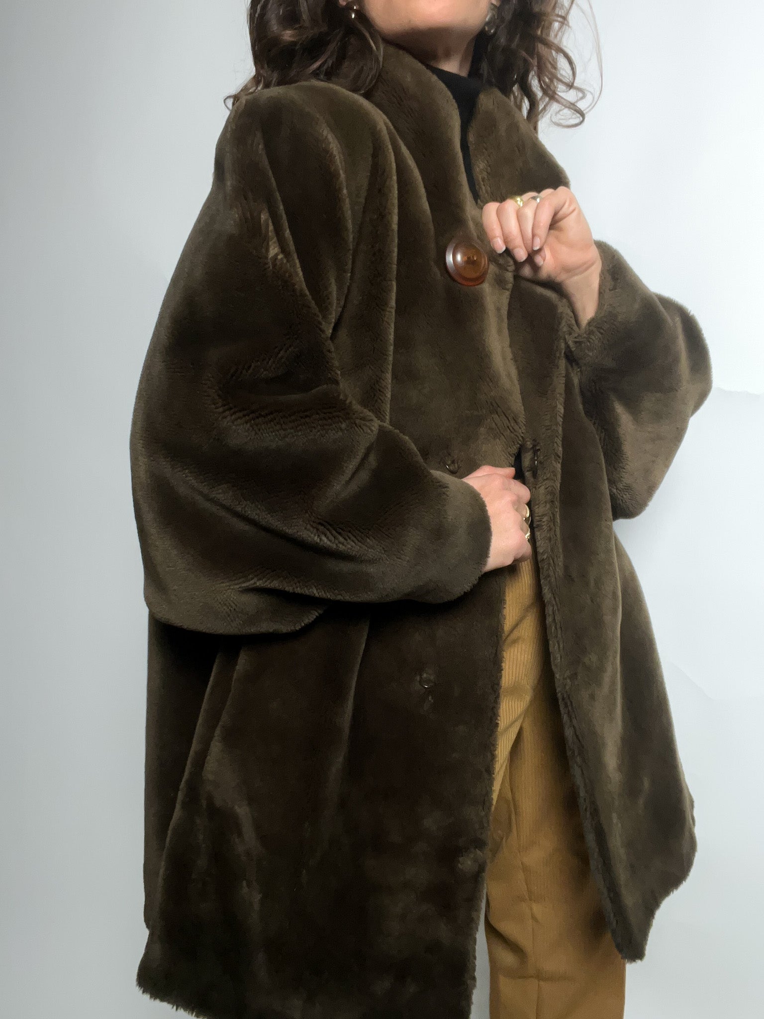 Vintage 90’s Deep Brick-Brown Faux Fur Coat