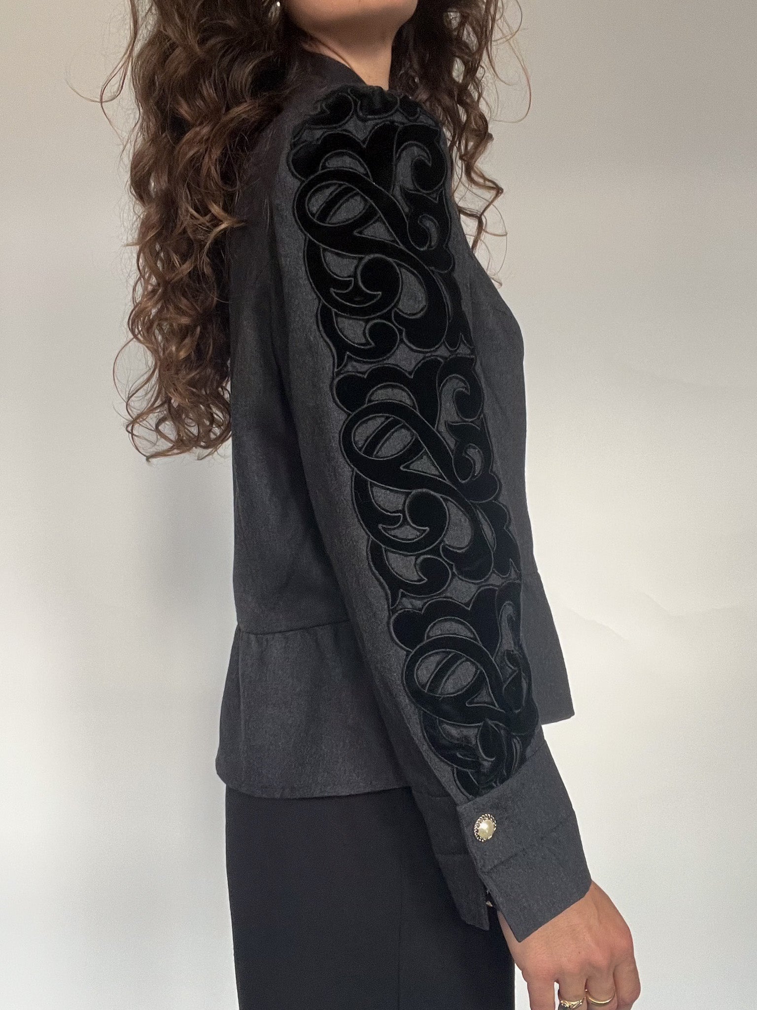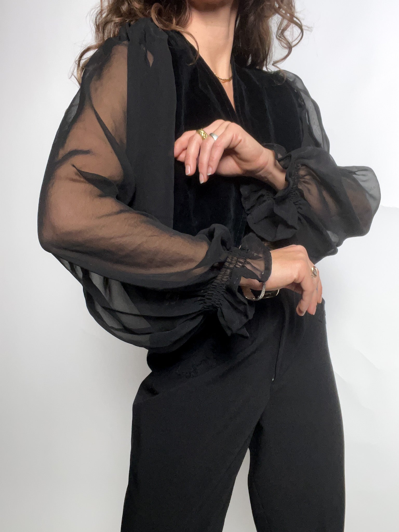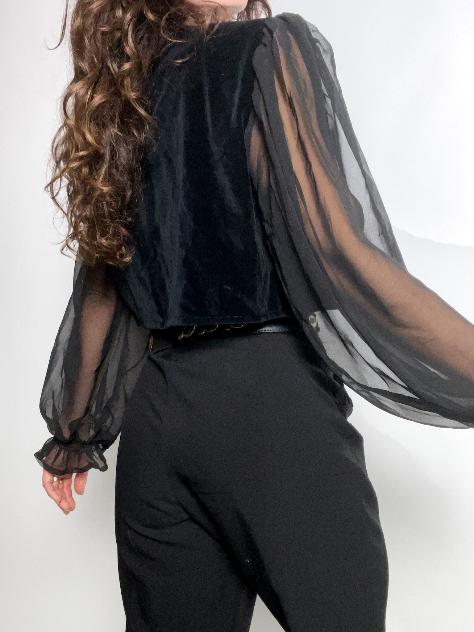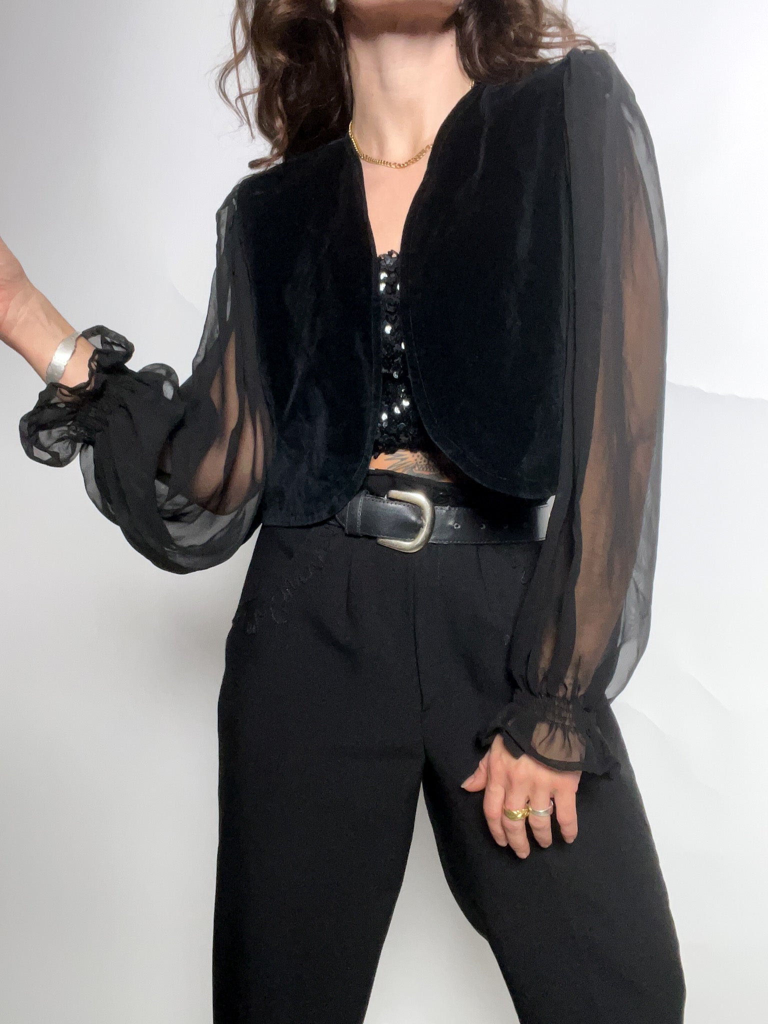 Vintage 90’s Black Velvet Sheer-Sleeve Bolero