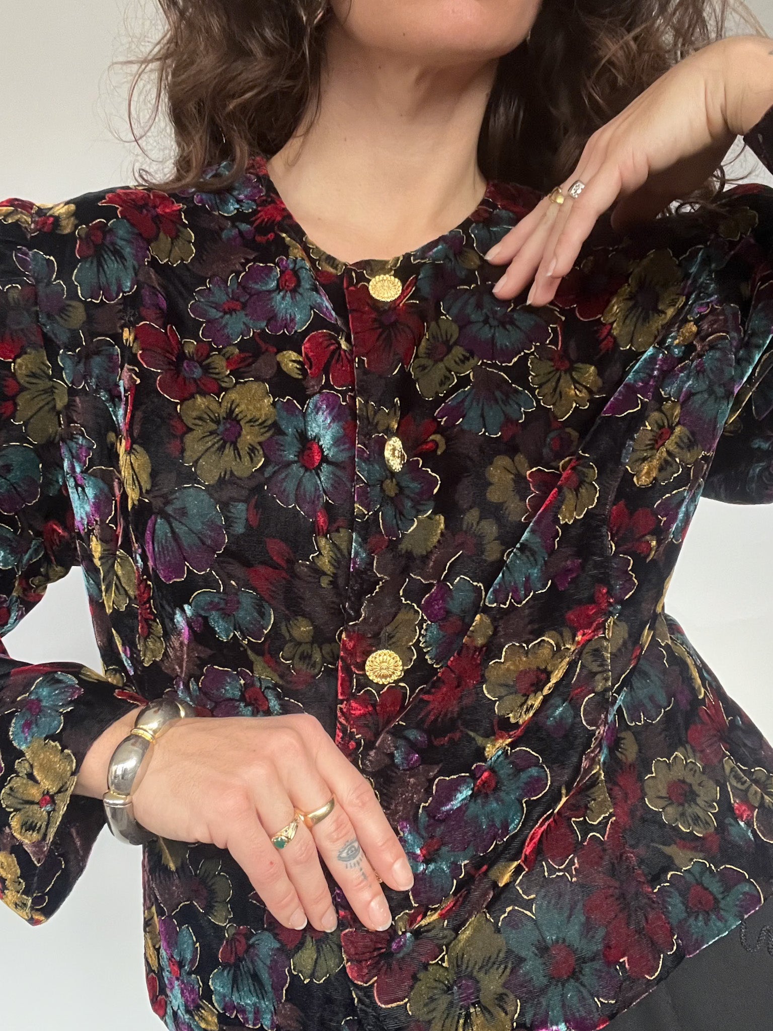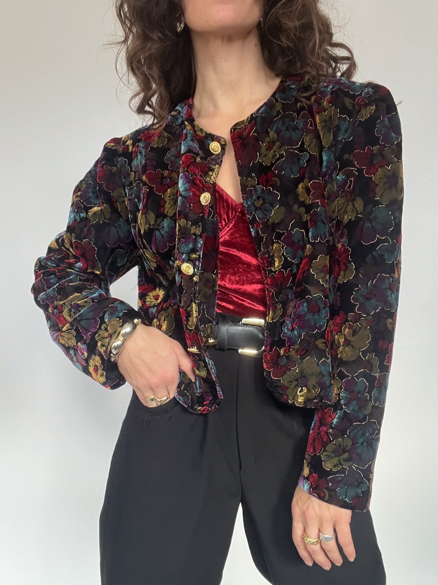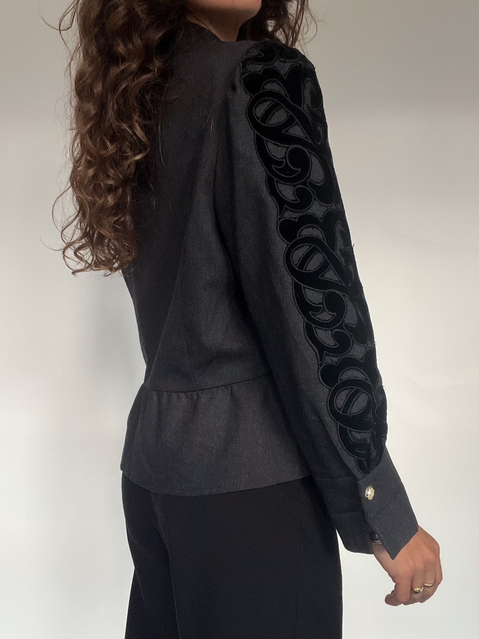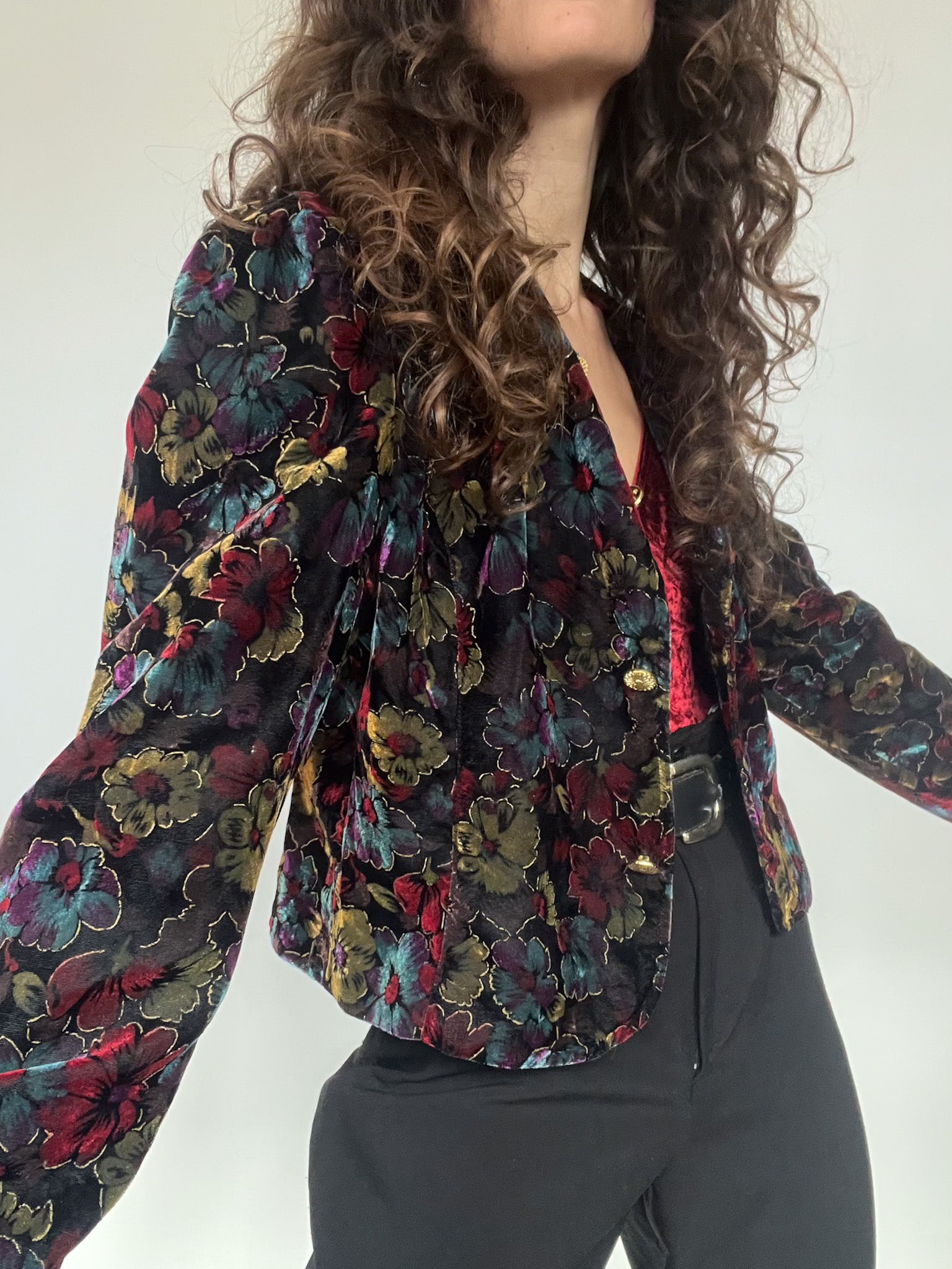 Vintage 90’s Black Velvet Sheer-Sleeve Bolero