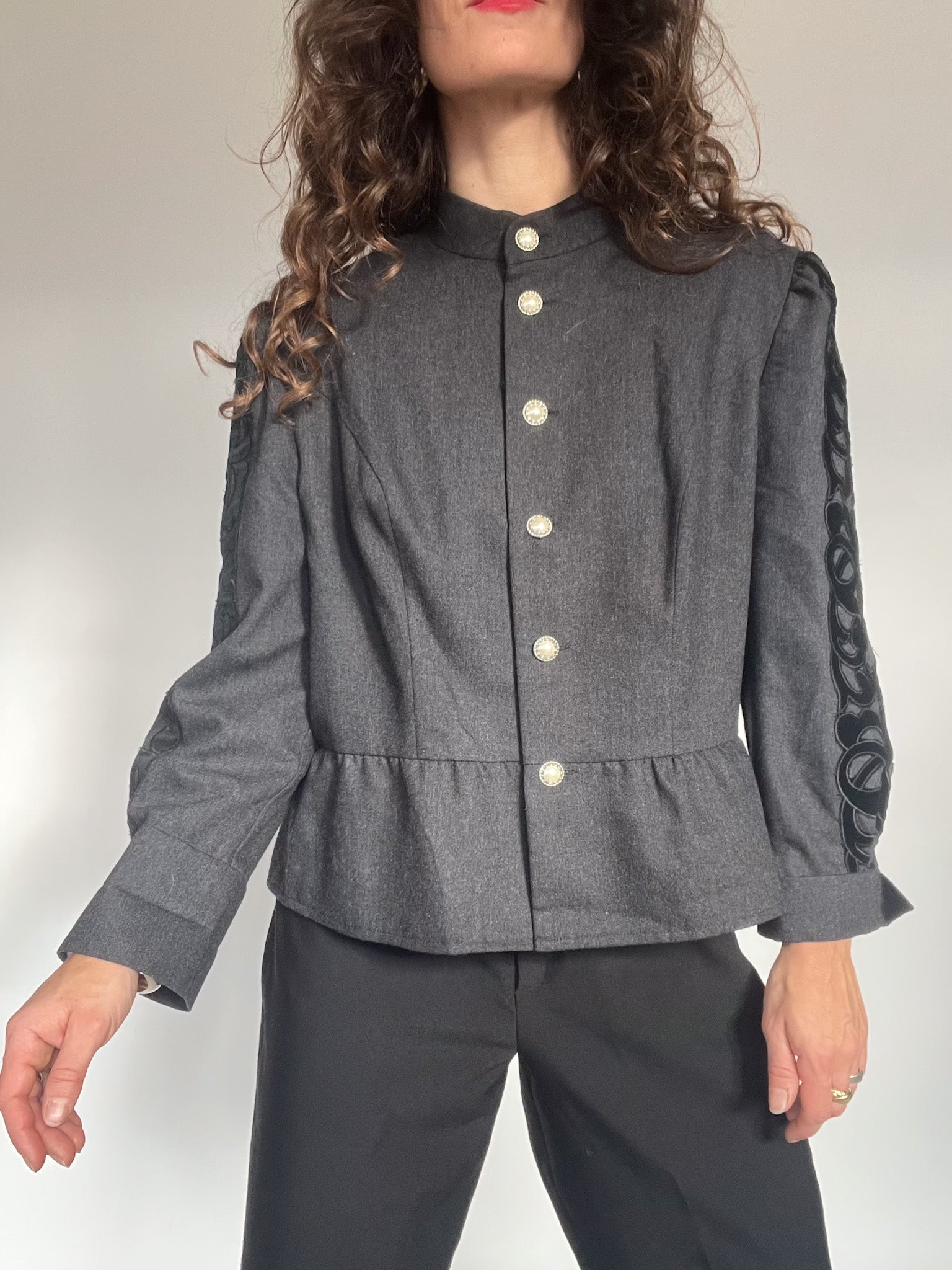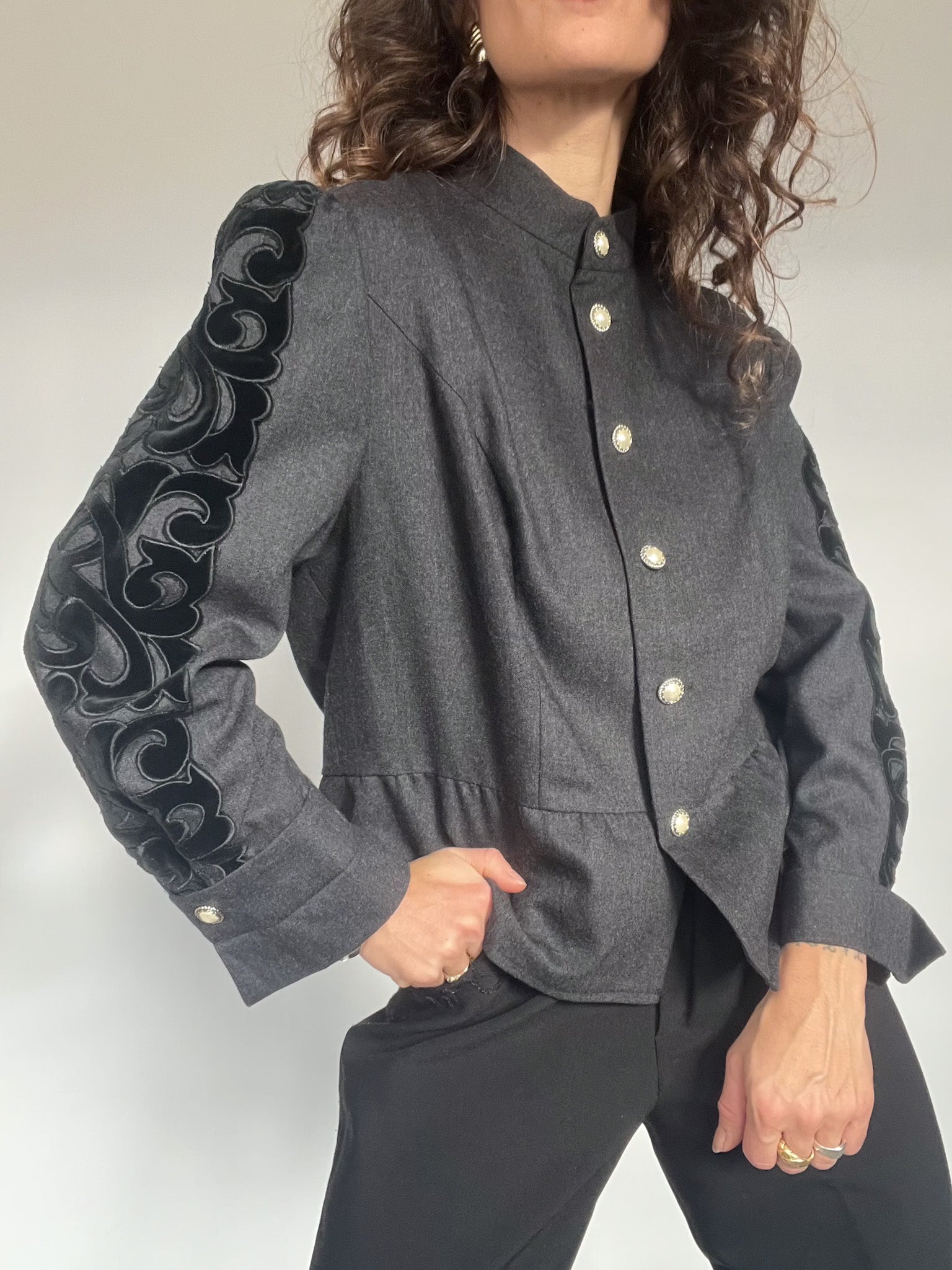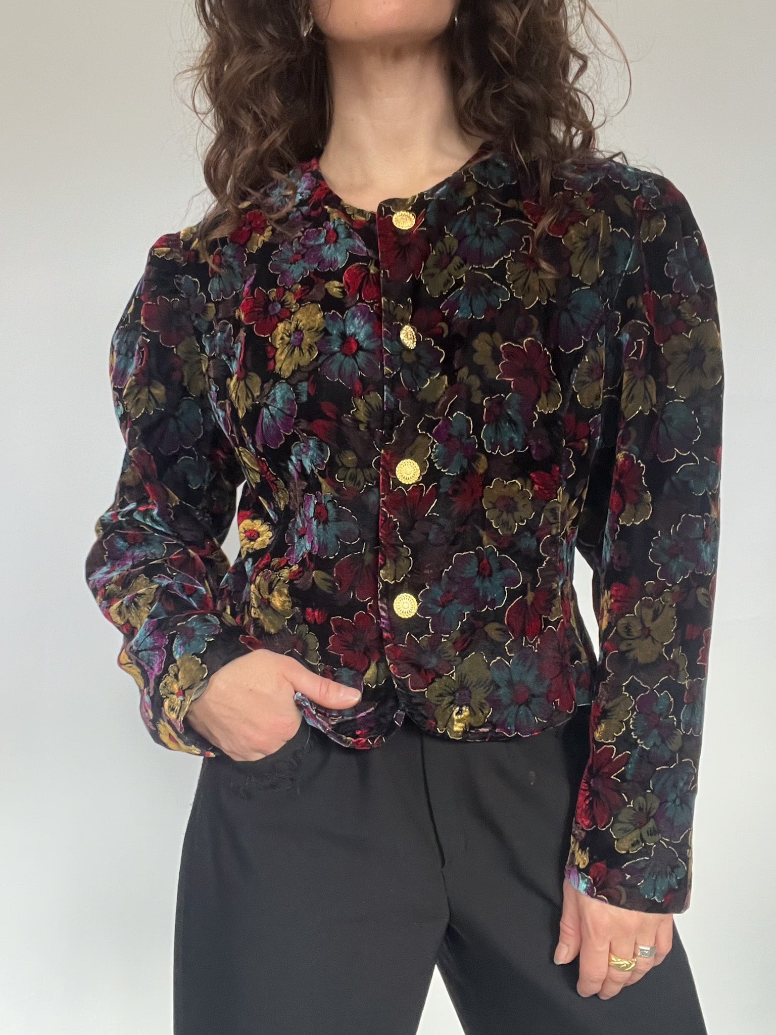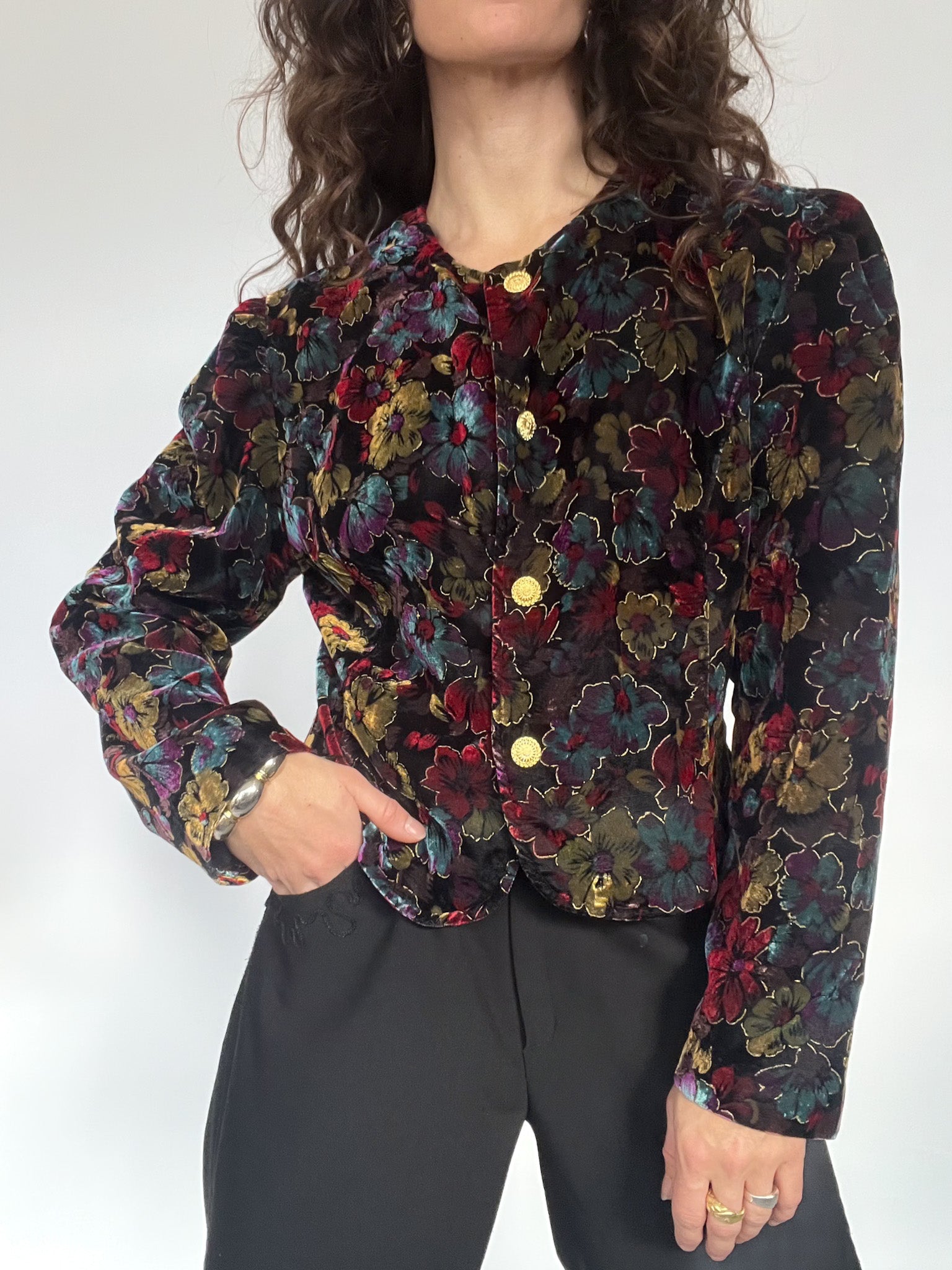 Vintage 90’s Black Velvet Sheer-Sleeve Bolero