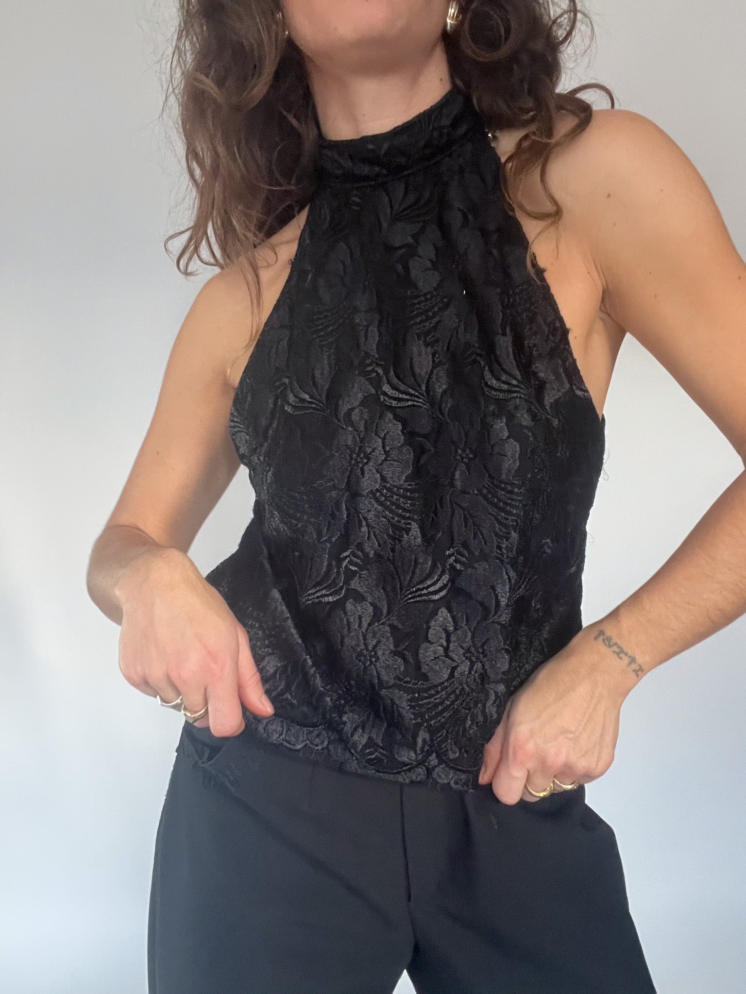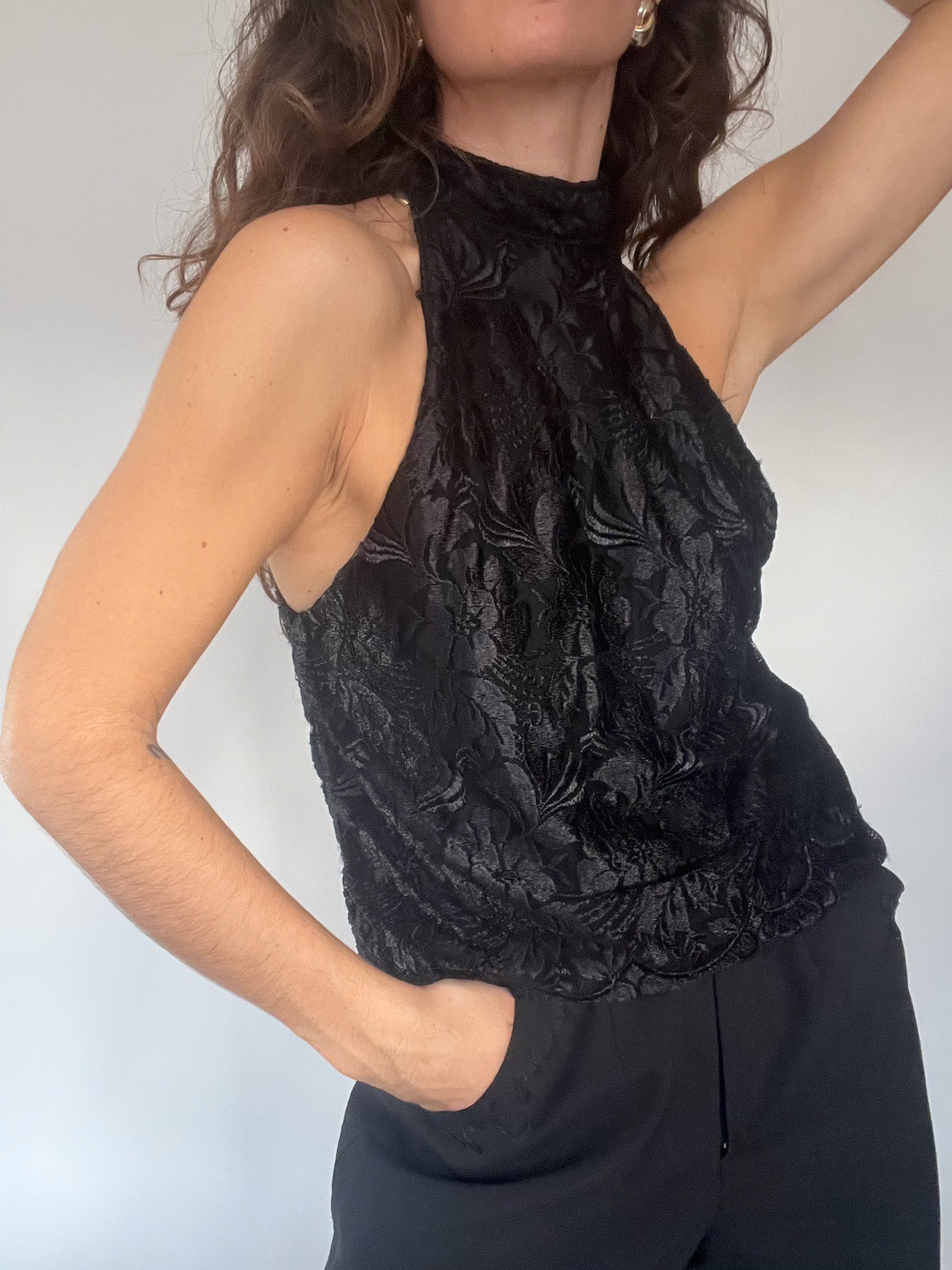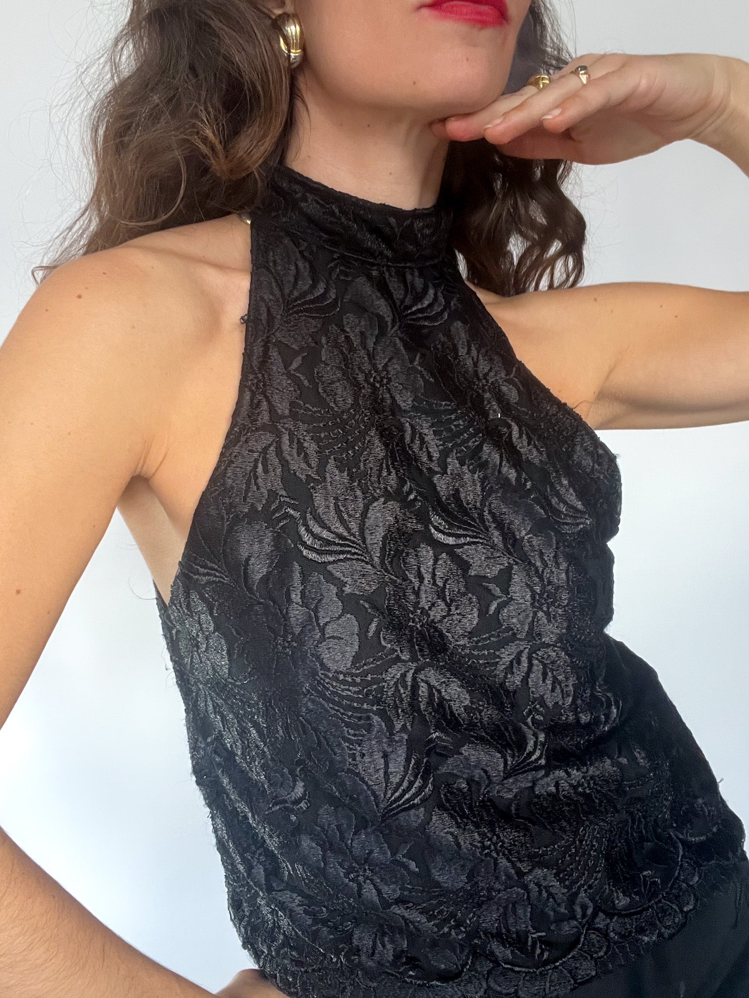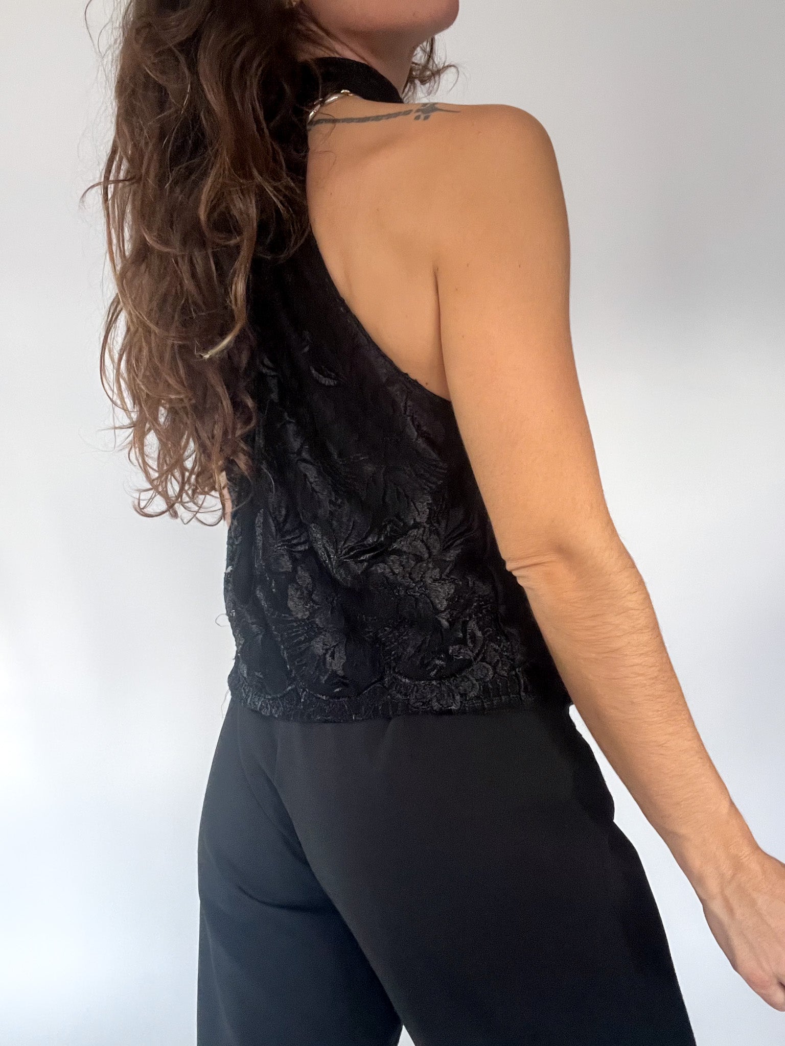 Vintage 90’s Black Viscose Jacquard Halter Top