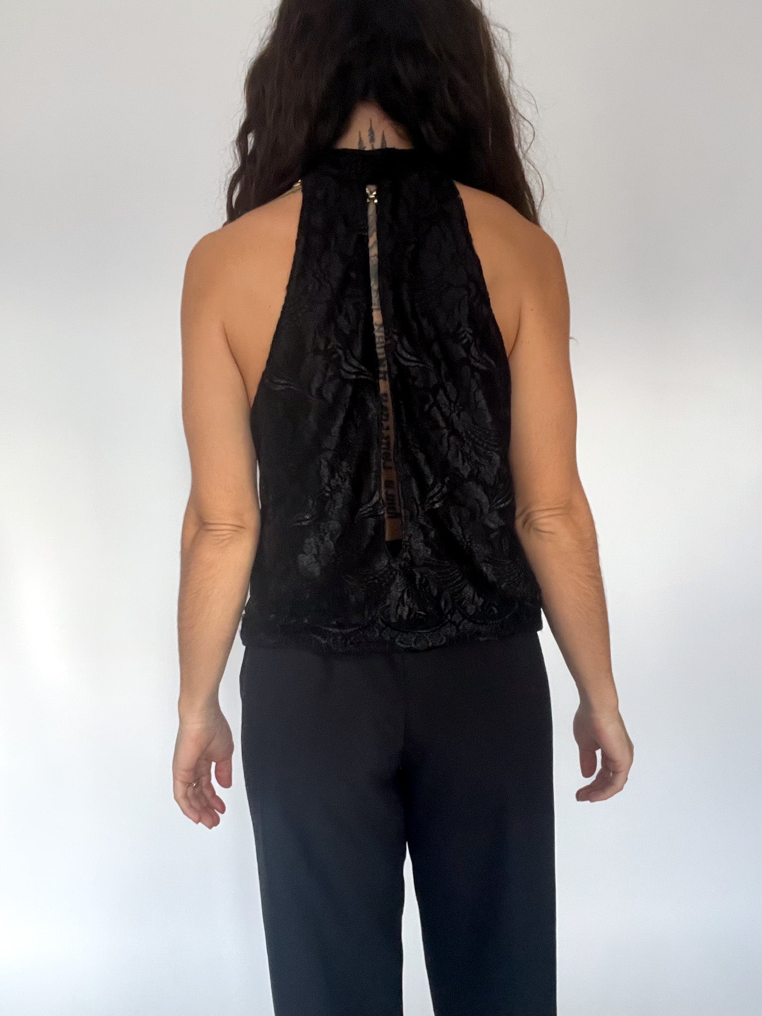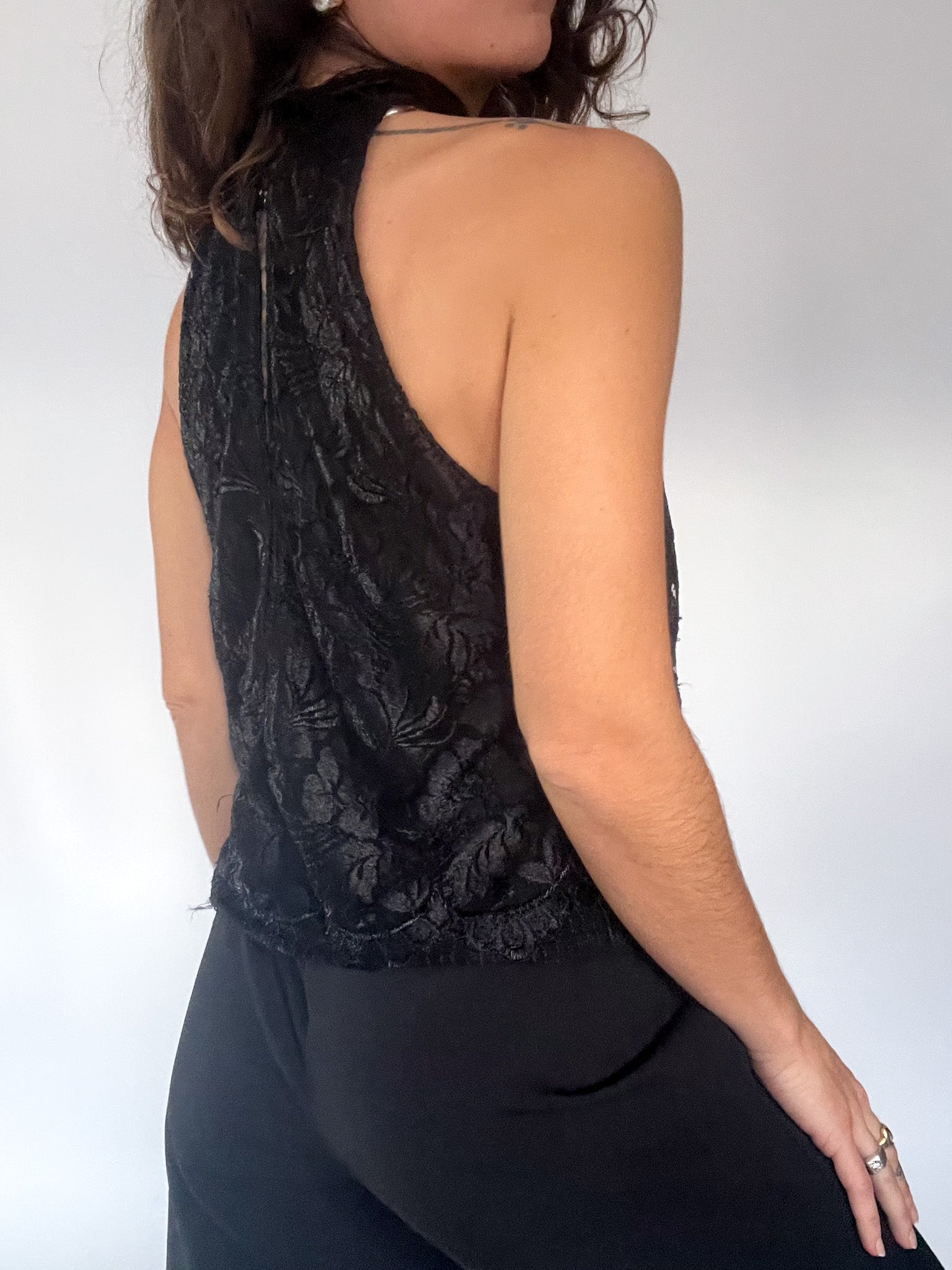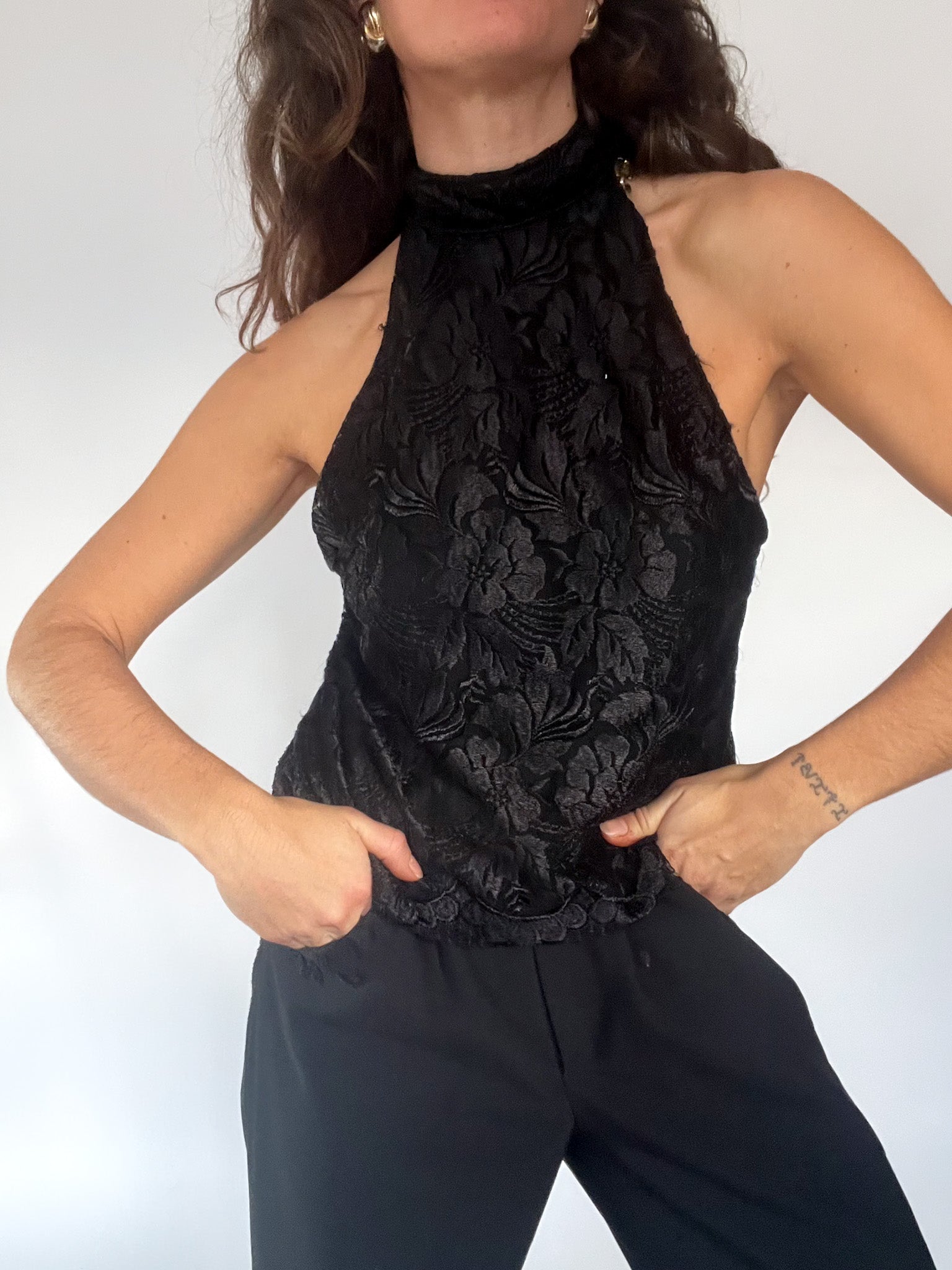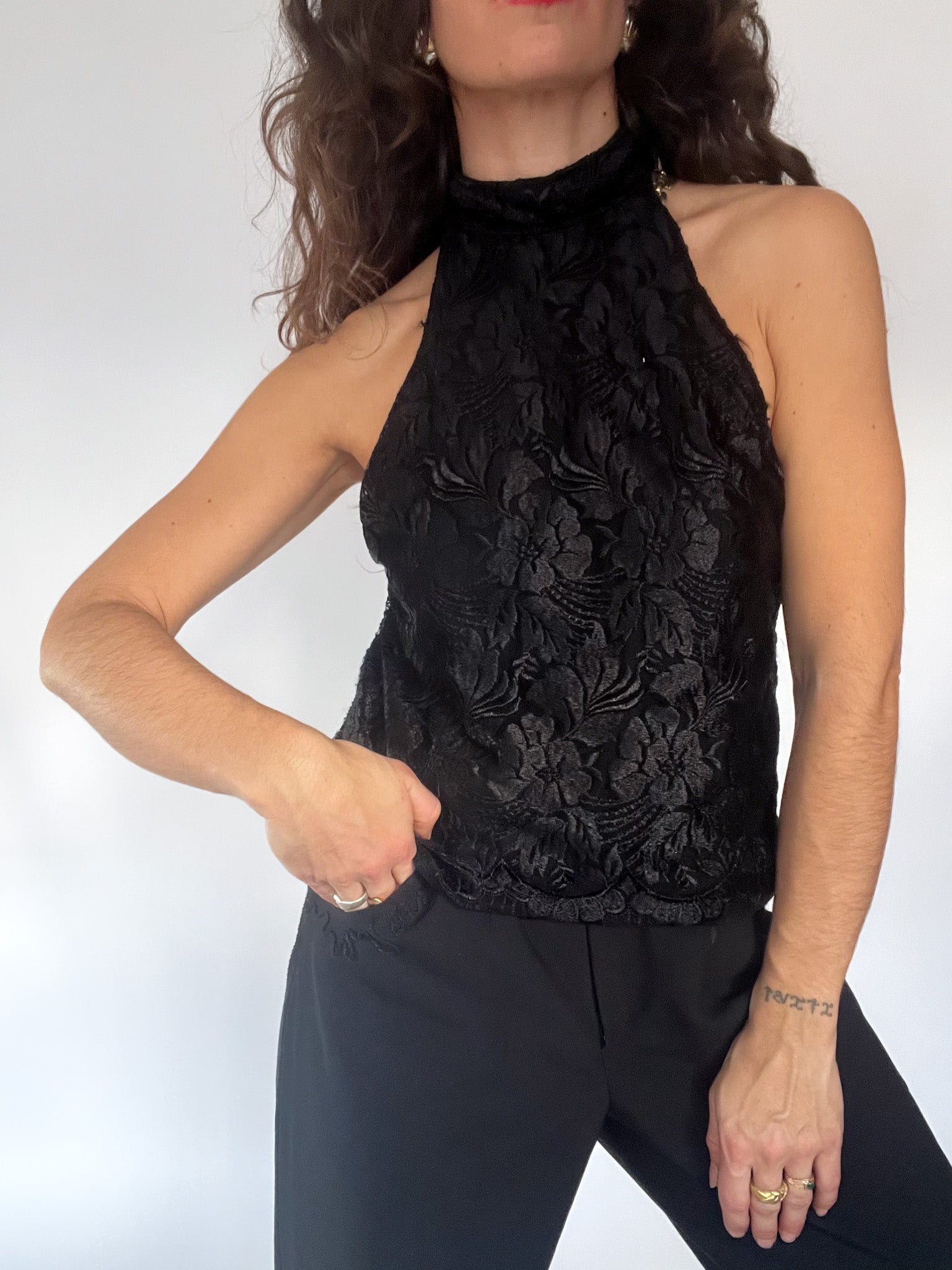 Vintage 90’s Black Viscose Jacquard Halter Top