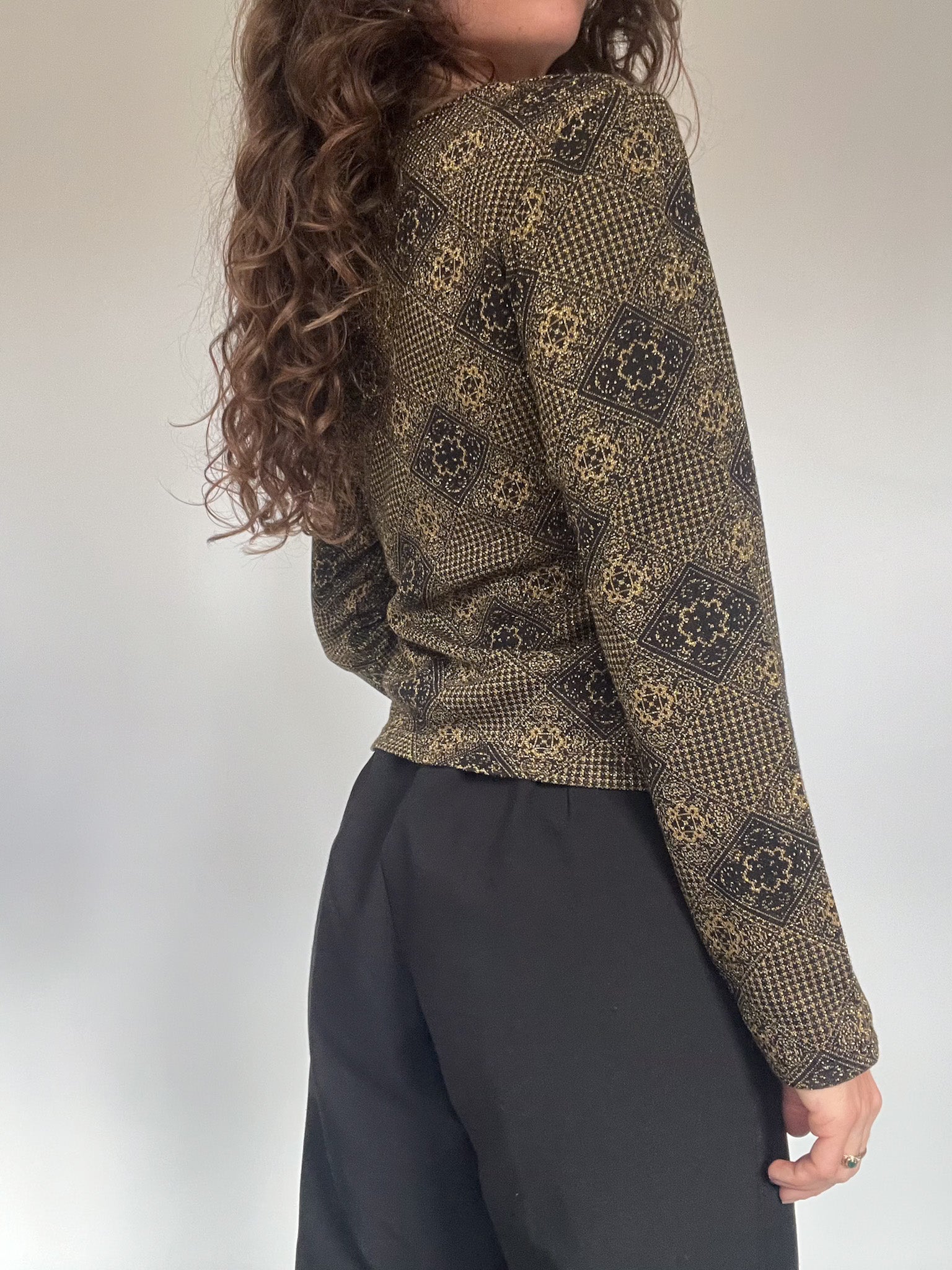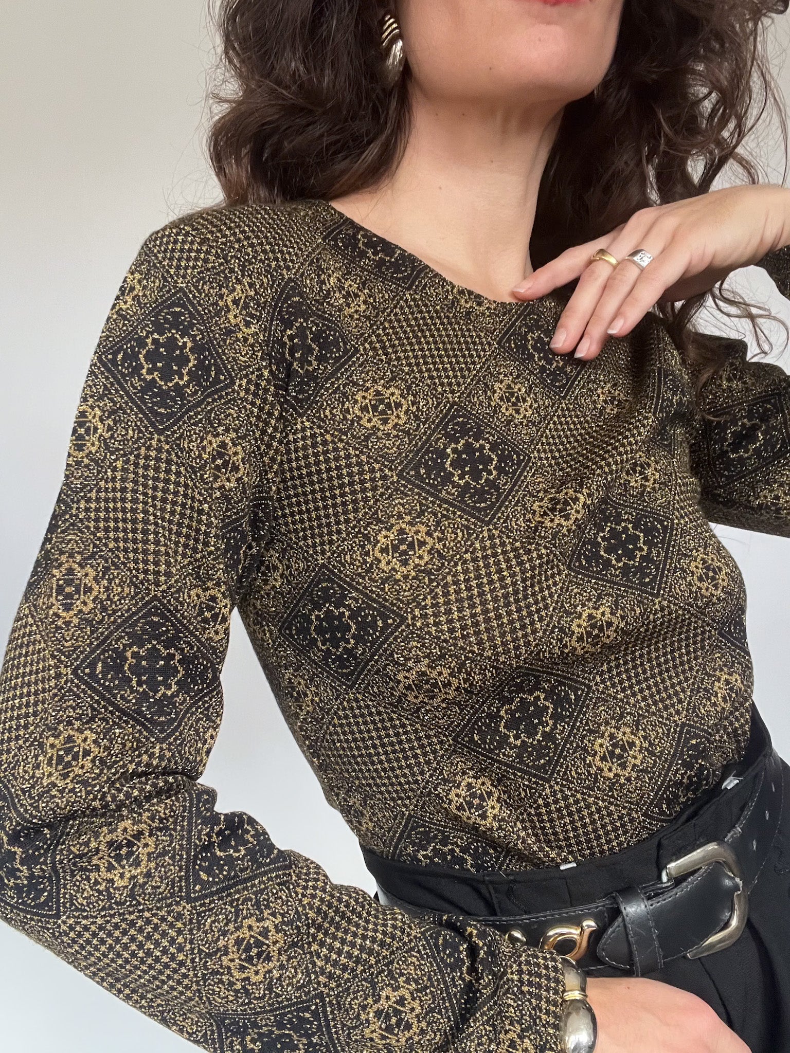Vintage 90’s Black & Gold Sheer Patterned Shirt