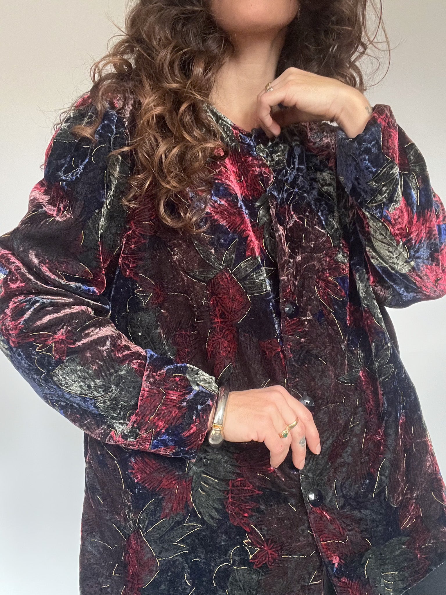 Vintage 90’s Red Silk Blouse with Gold Button Detail