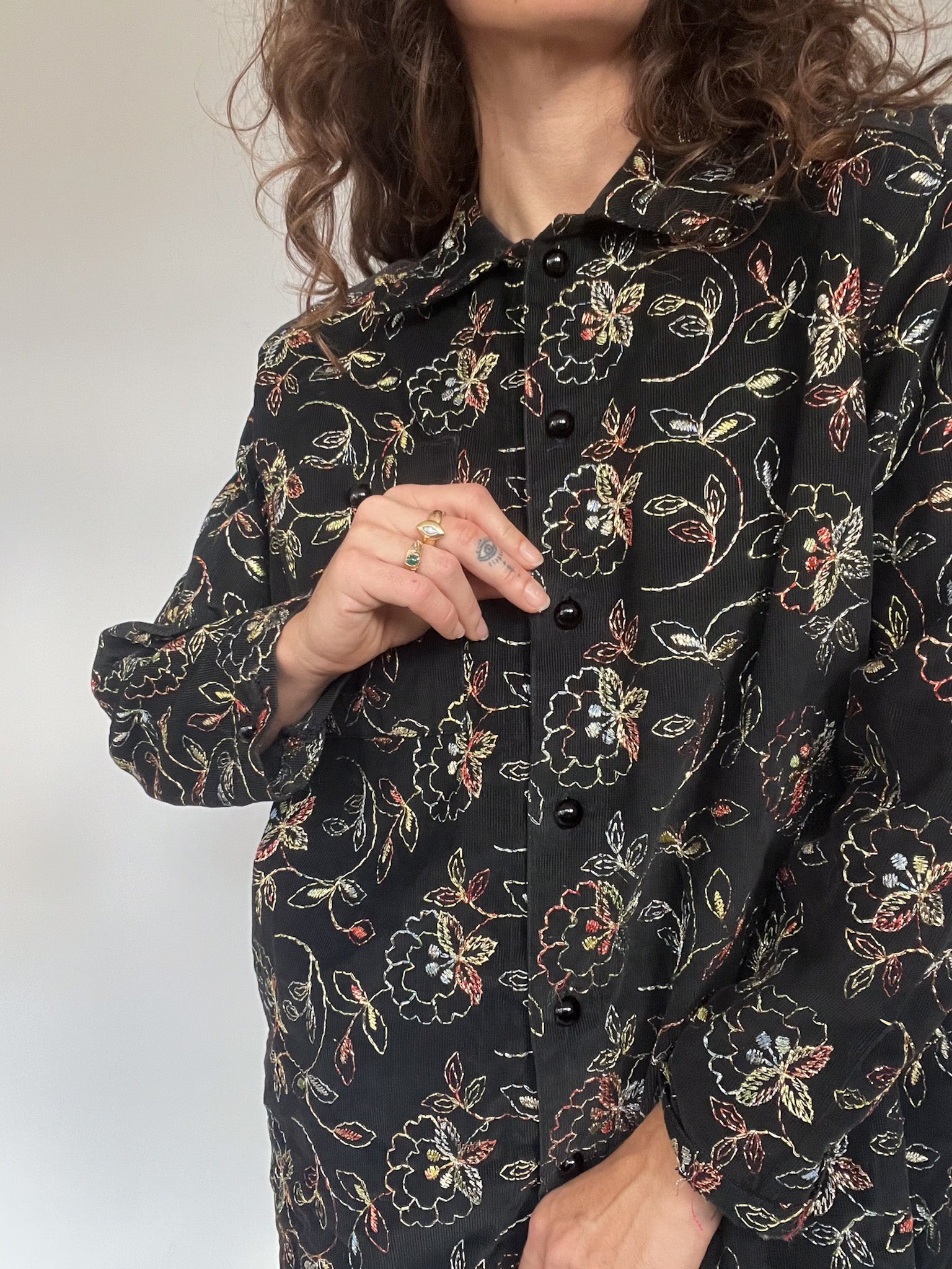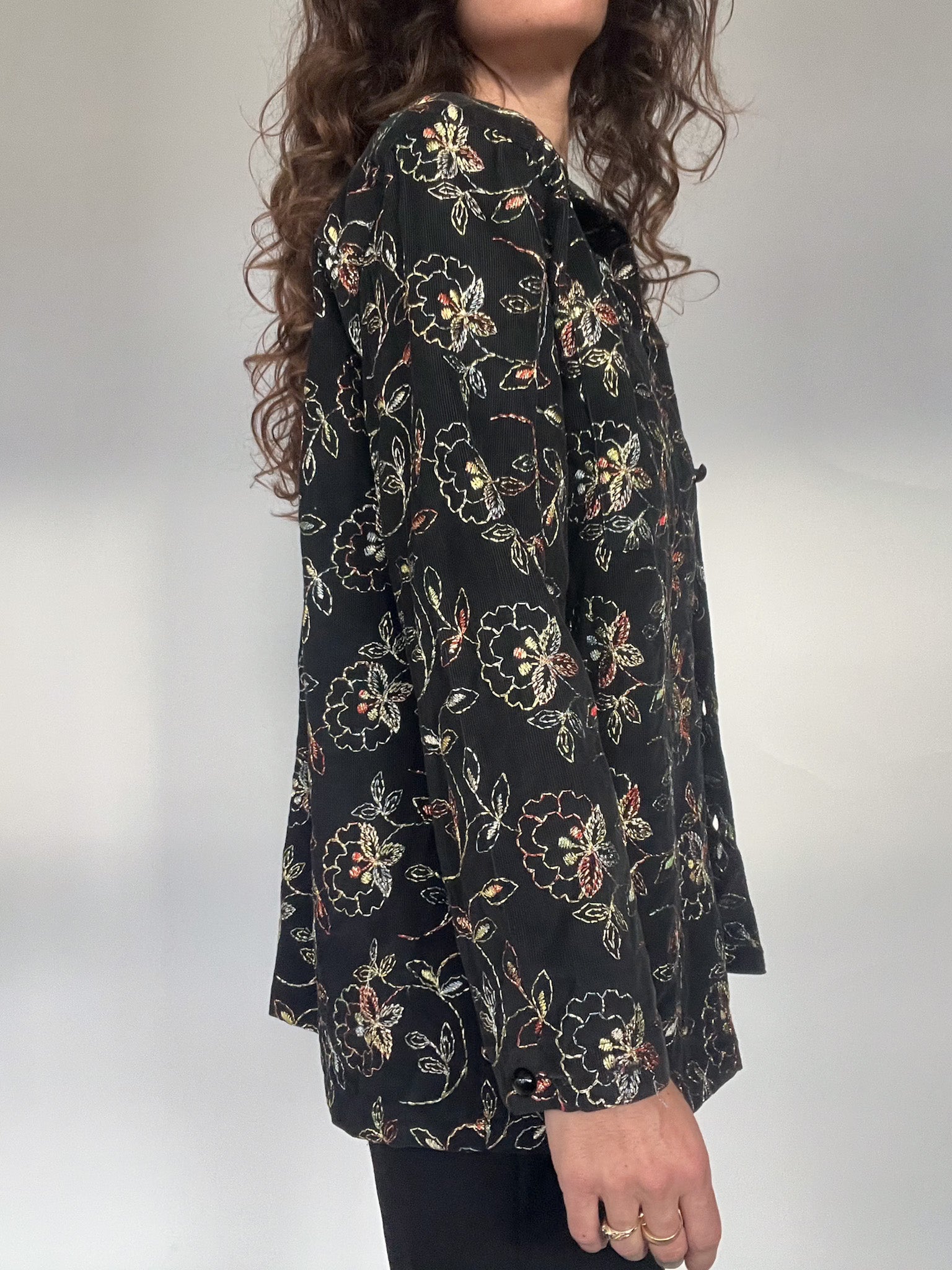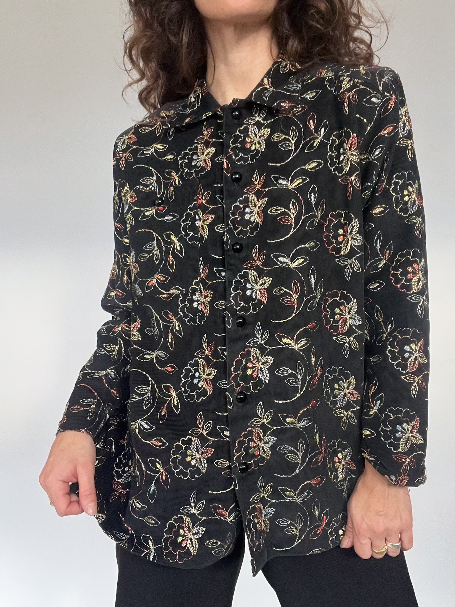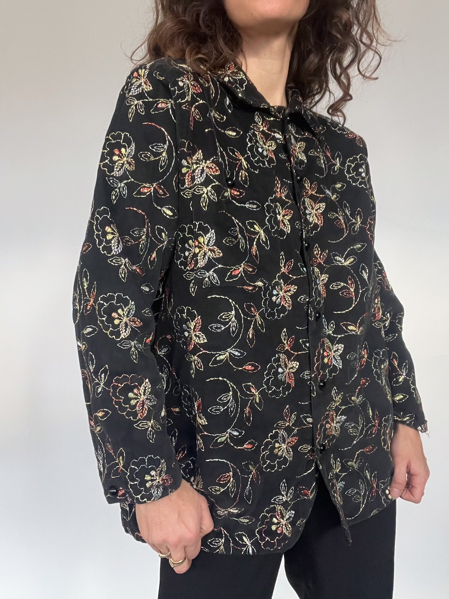 Vintage 90’s Black Embroidered Cotton Shirt-Jacket