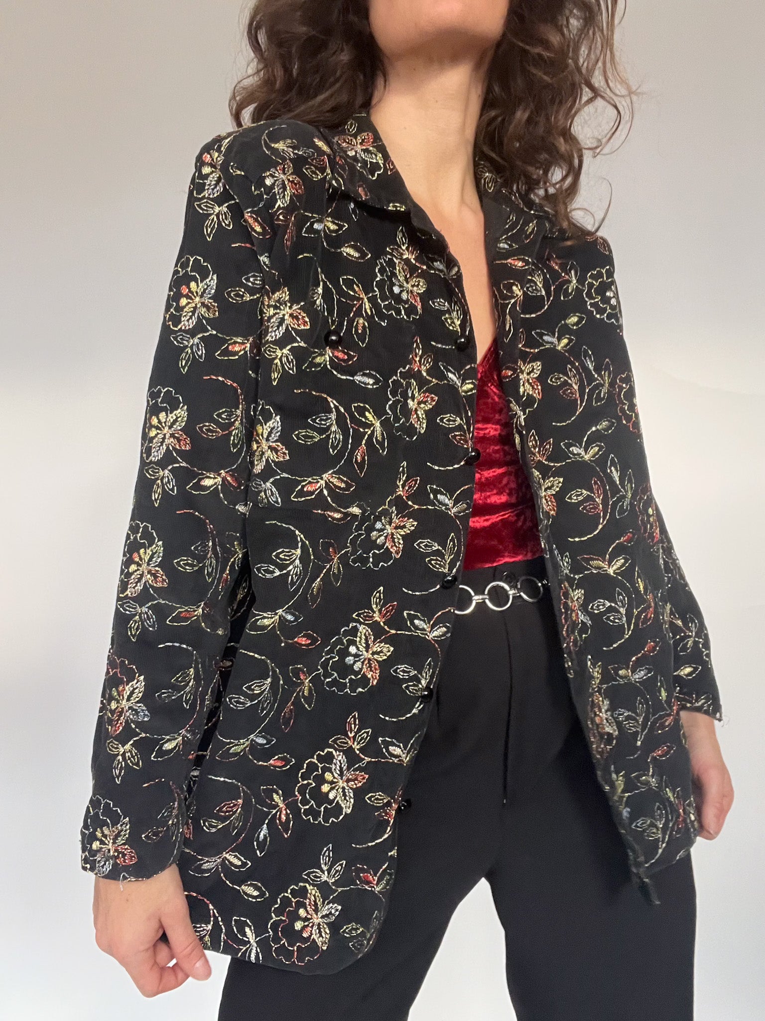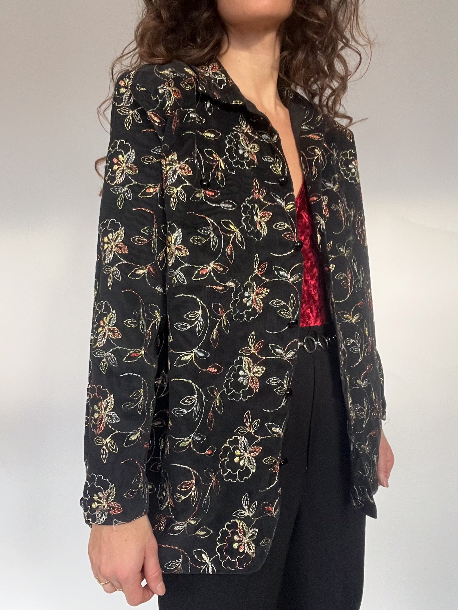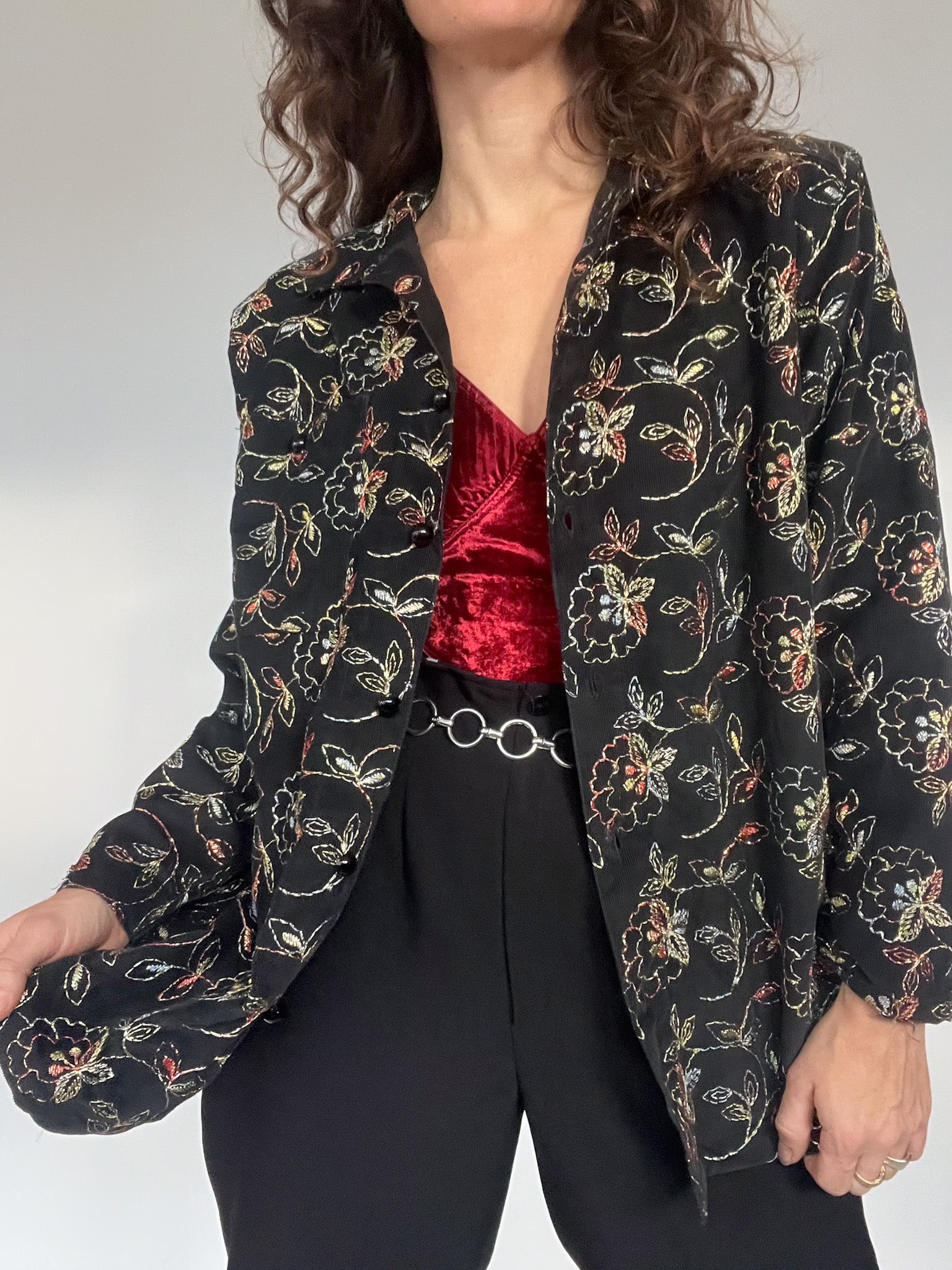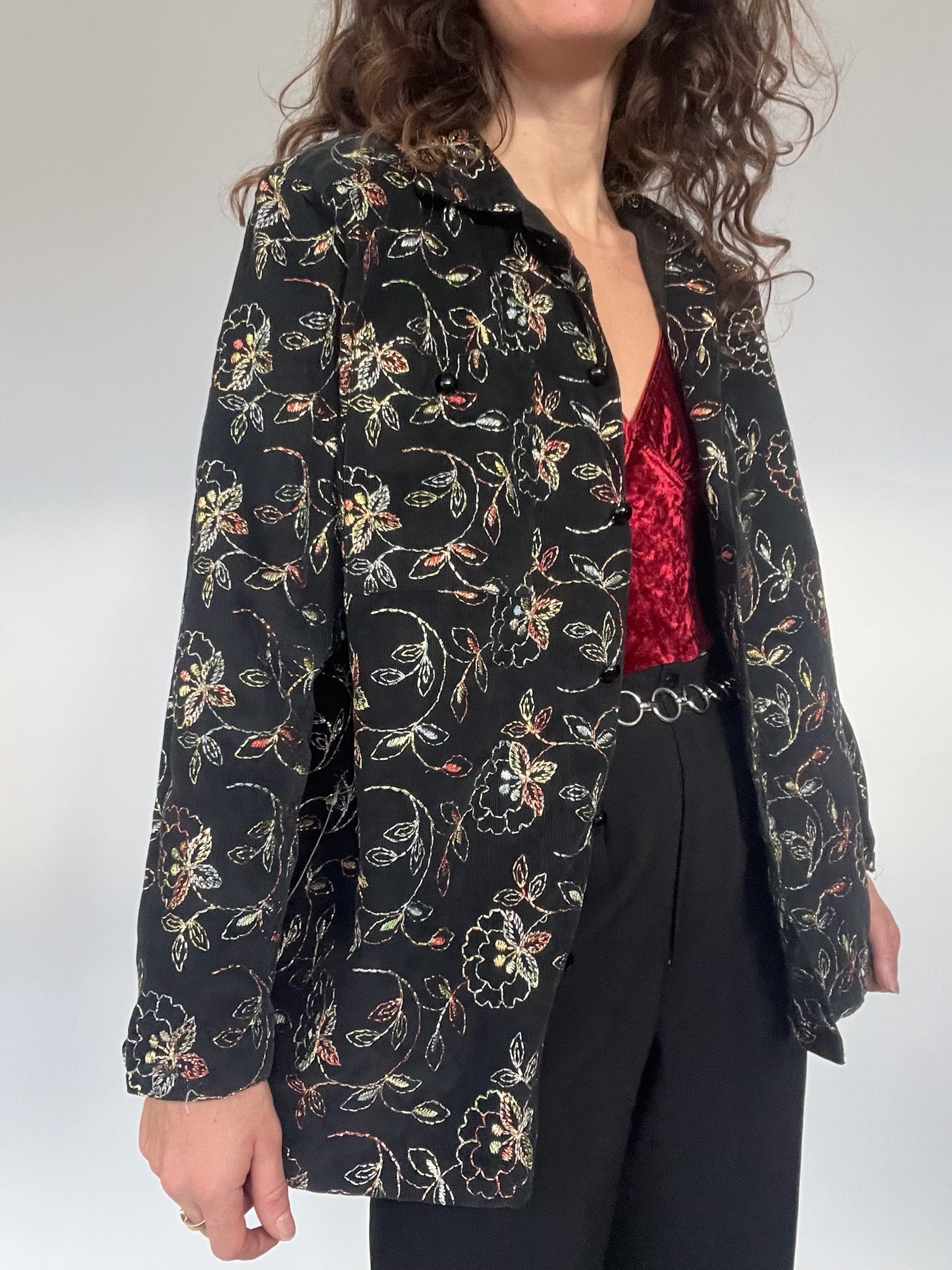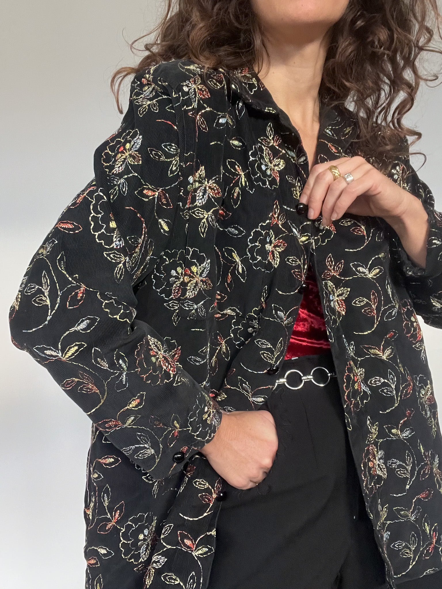 Vintage 90’s Black Embroidered Cotton Shirt-Jacket