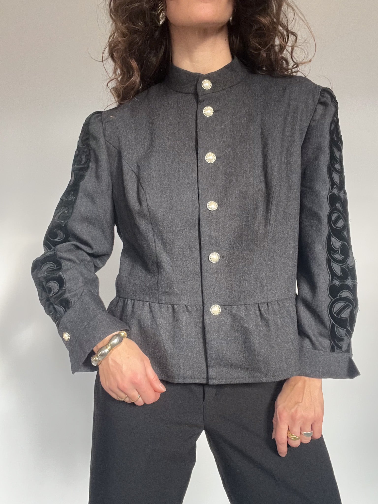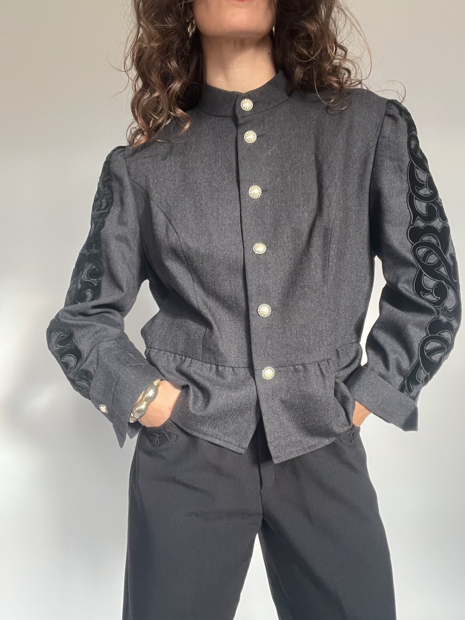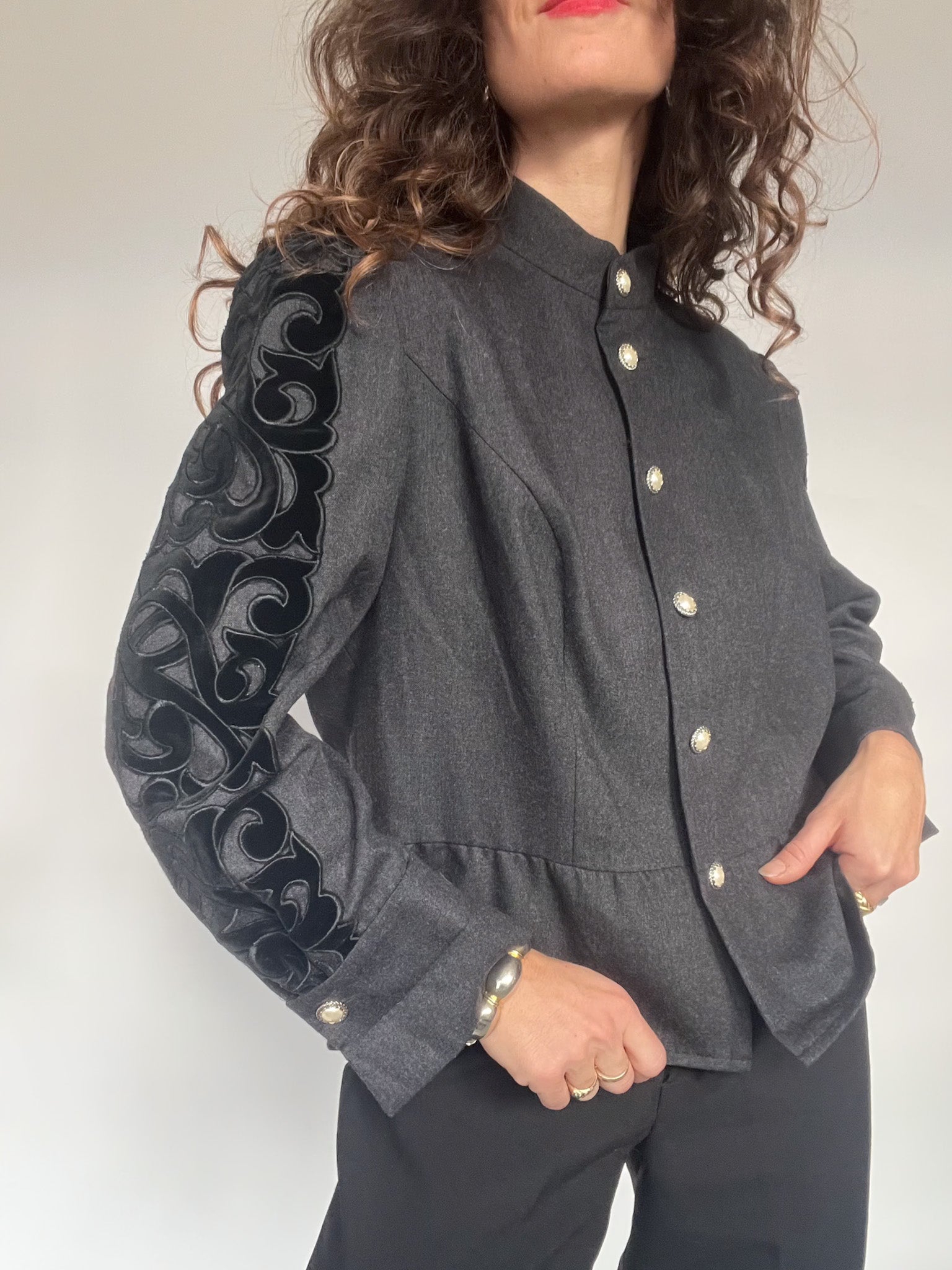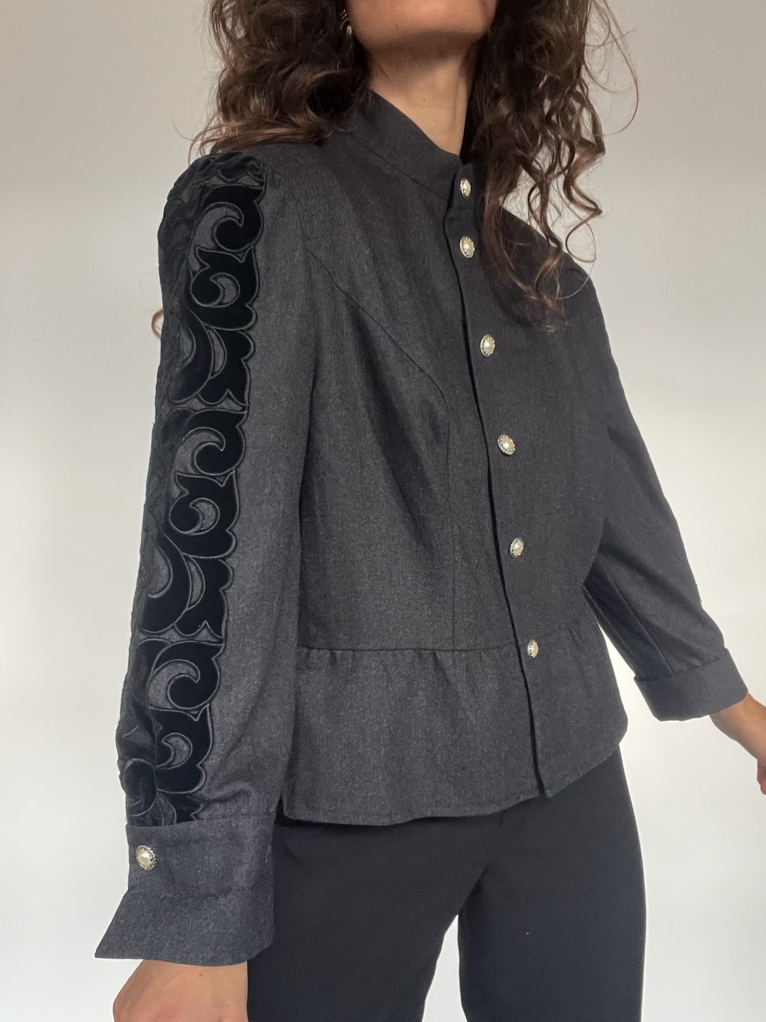 Vintage 90’s Black Embroidered Cotton Shirt-Jacket