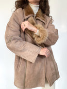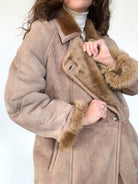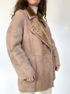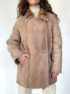 Vintage 70’s Beige Shearling Coat with Straight Lines Detail