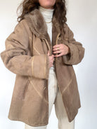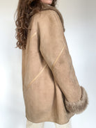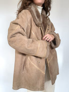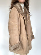 Vintage 70’s Beige Shearling Coat with Vertical Lines Detail