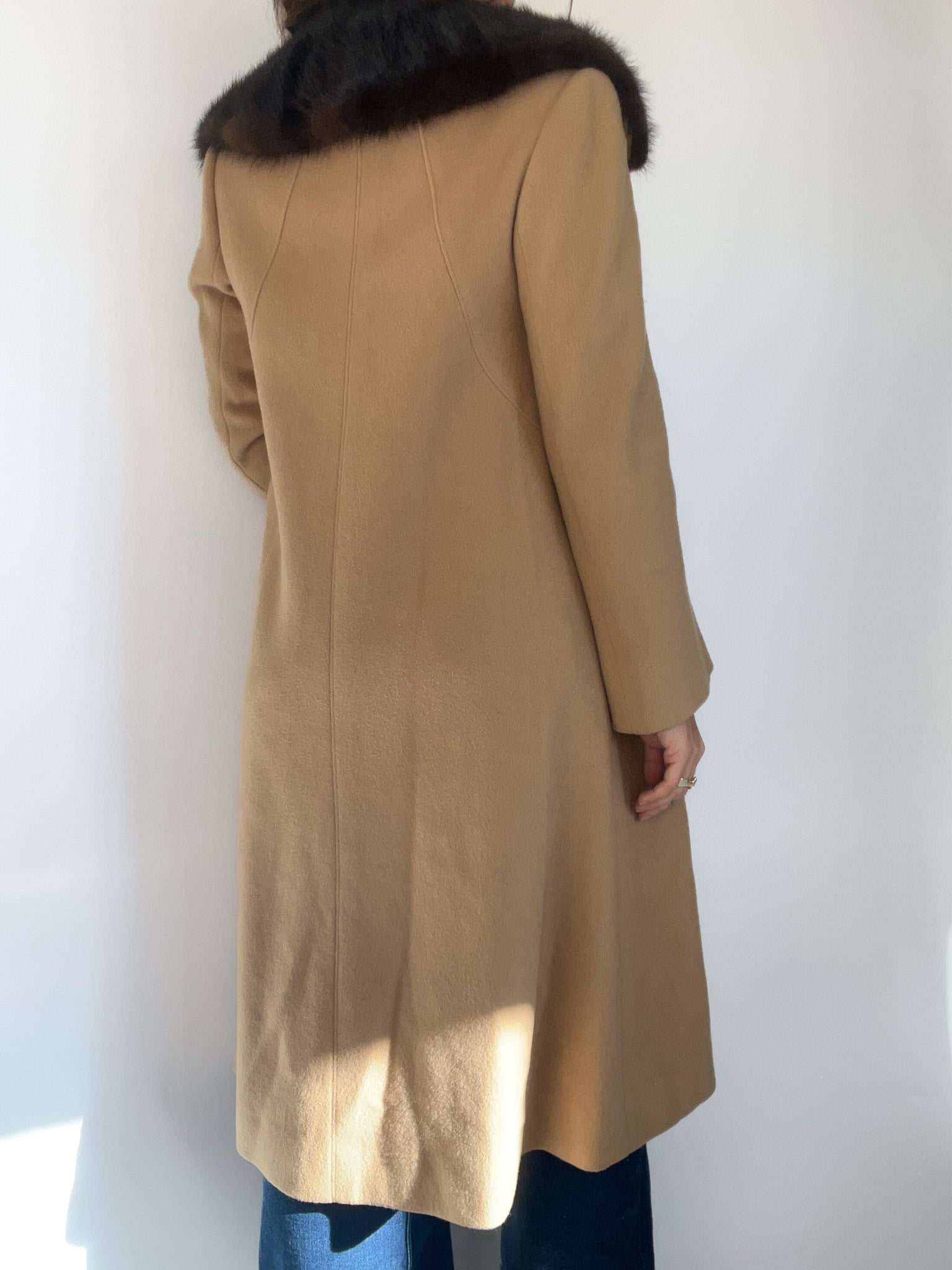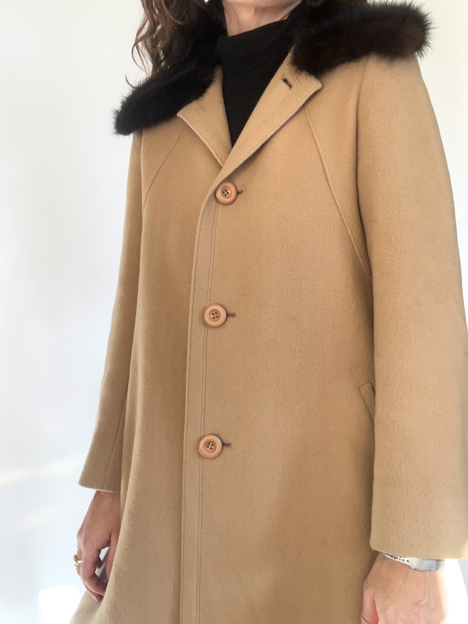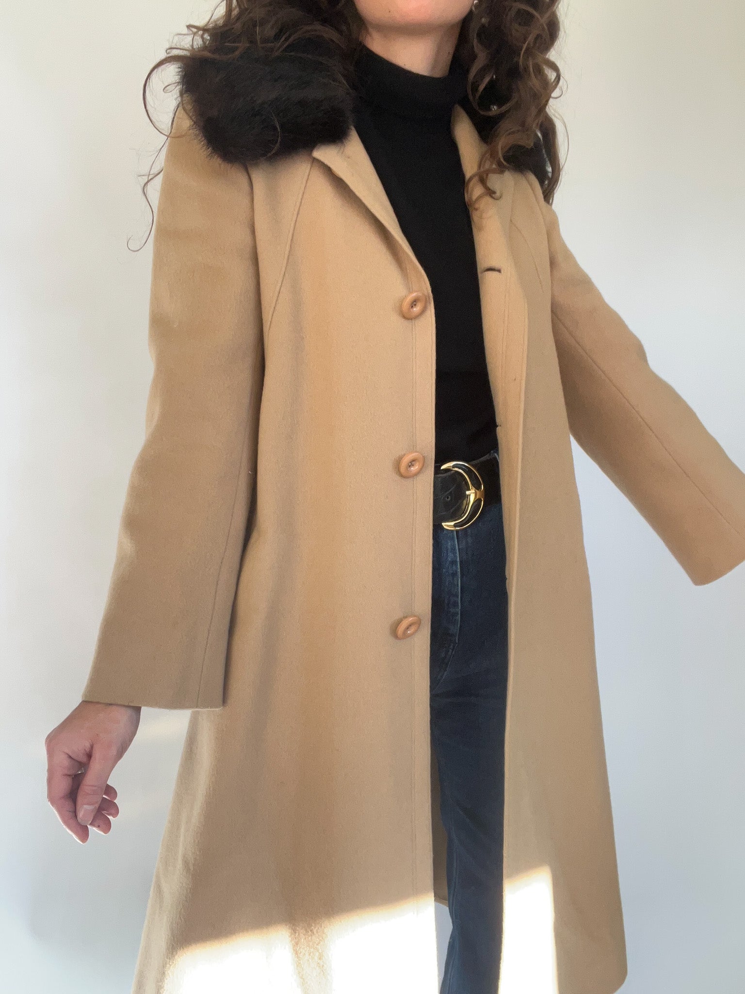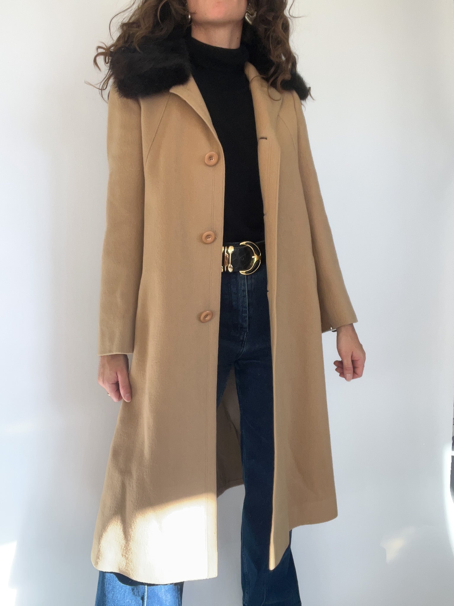 Vintage 70’s Camel Wool Coat with Detachable Faux Fur Collar