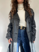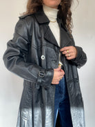 Vintage 80’s Black Double-Breasted Leather Trench Coat