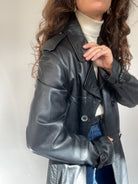 A masterpiece of 80’s design — structured, dramatic, and effortlessly chic. This double-breasted leather trench brings that cinematic allure with its belted waist and tailored cut. The shoulder details and wrist buckles give it a subtly rebellious edge, while the longline silhouette elongates the body with confidence. A true statement coat, made for women who channel timeless elegance with attitude.