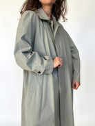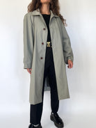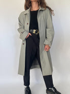 This vintage trench from the 80’s presents a unique grey-blue tone, subtle yet distinctive, offering a refined alternative to classic neutrals. Its generous cut with strong shoulders and mid-length silhouette embodies the bold tailoring of the decade. The fluid drape and versatile shade make it a sophisticated piece, adaptable for both casual and elevated looks. At Skorpiones Vintage, we celebrate such rare tones and structured designs—pieces that empower women to stand apart with authenticity and timeless elegance.