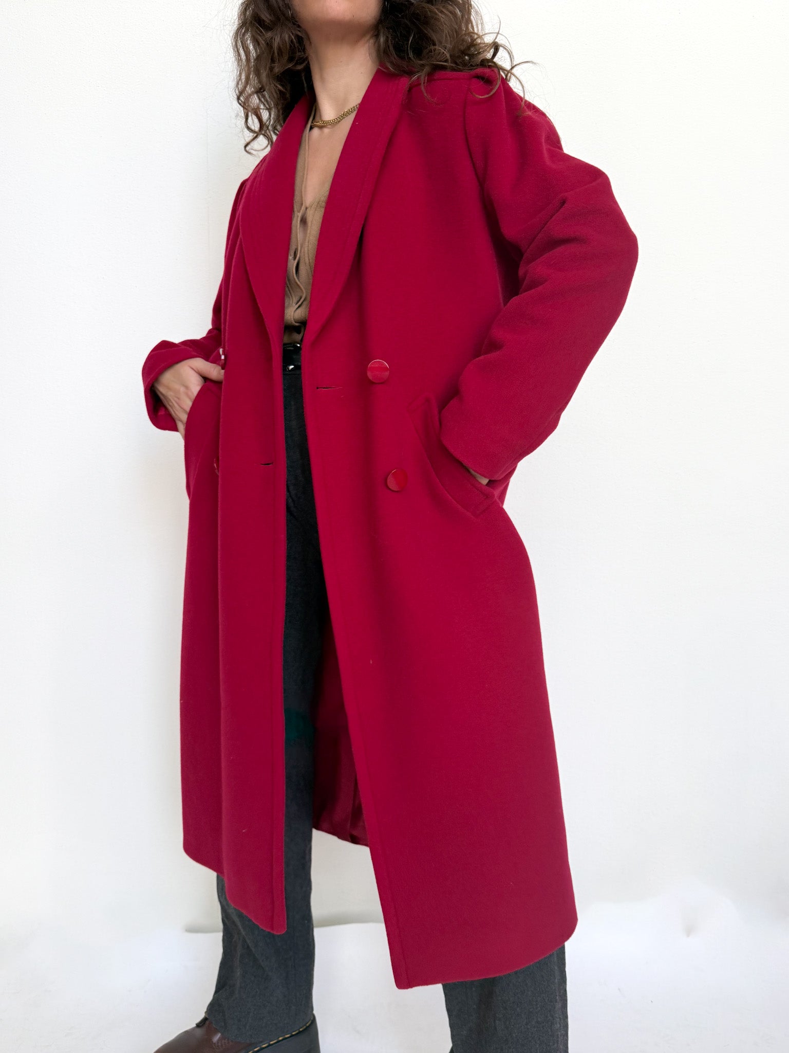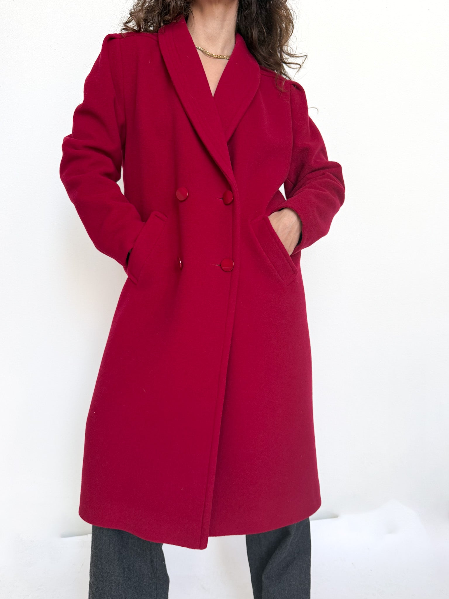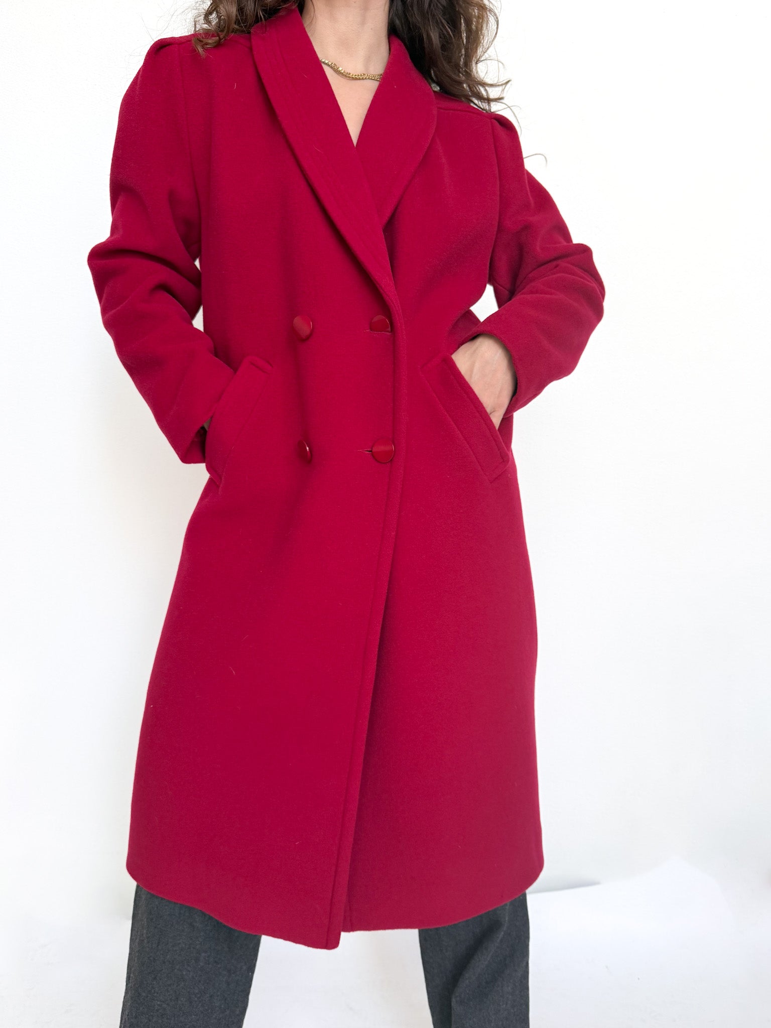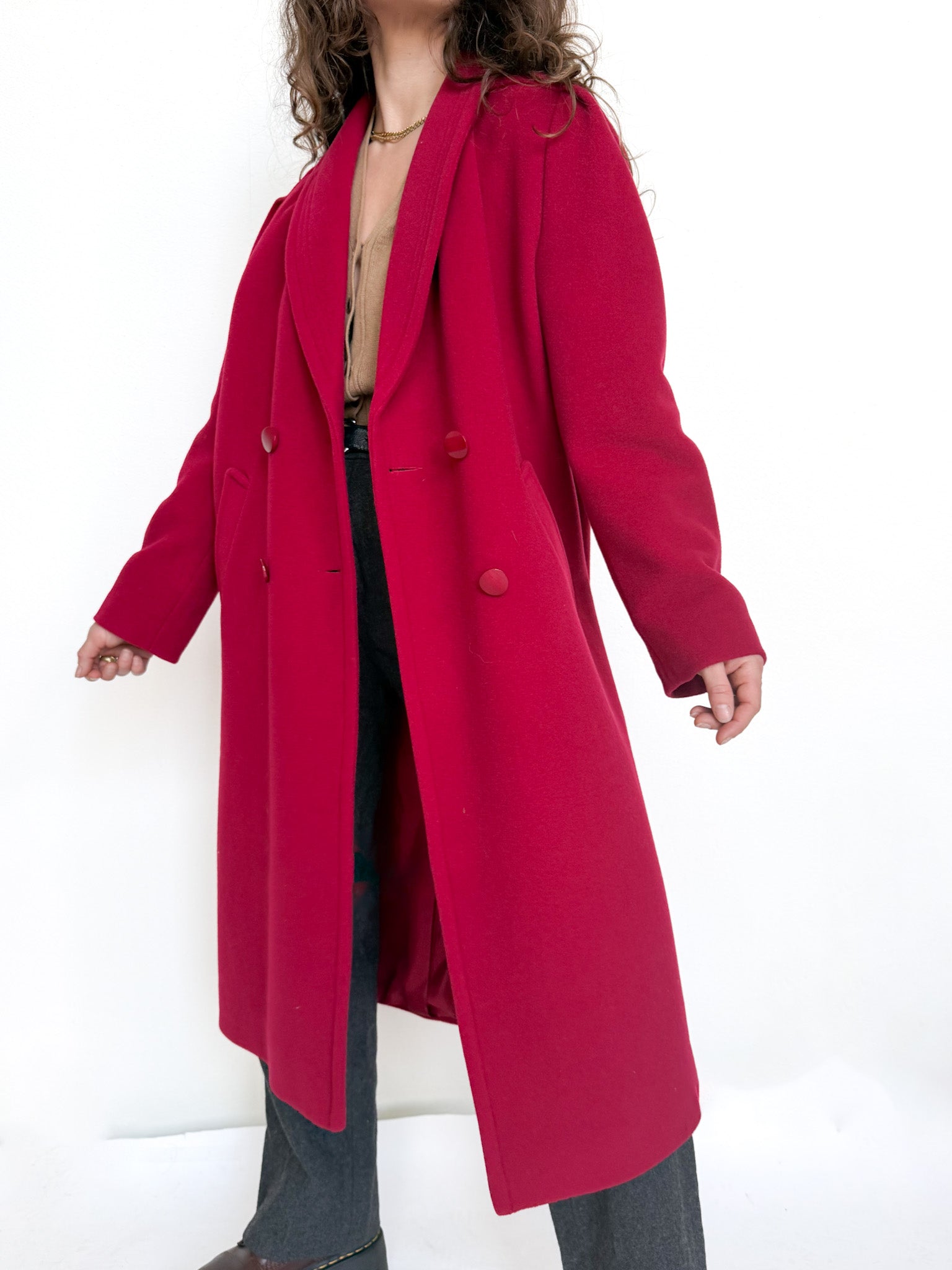 Vintage 80’s Raspberry Wool Double-Breasted Coat