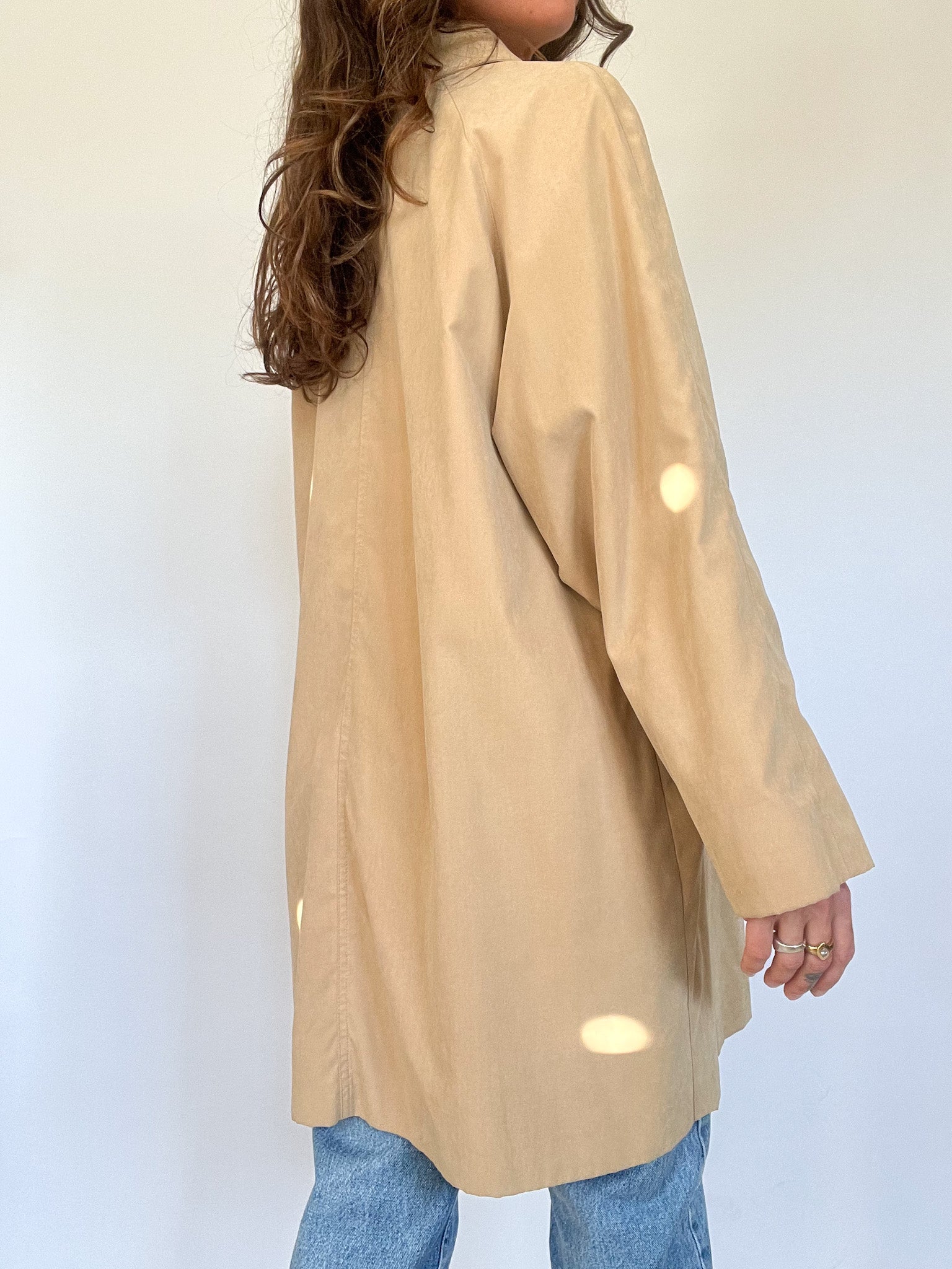 Simple yet impactful, this minimalist trench coat from the 90s is a light outerwear staple. The sand beige tone and clean cut reflect a relaxed sophistication that pairs effortlessly with any silhouette. A reminder that timeless design always wins — selected for those who embrace elegance without compromise.