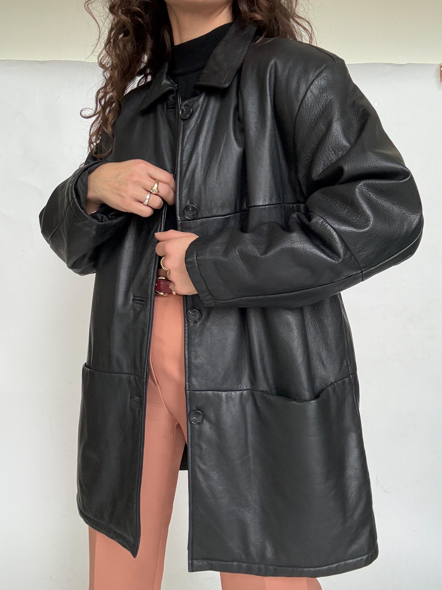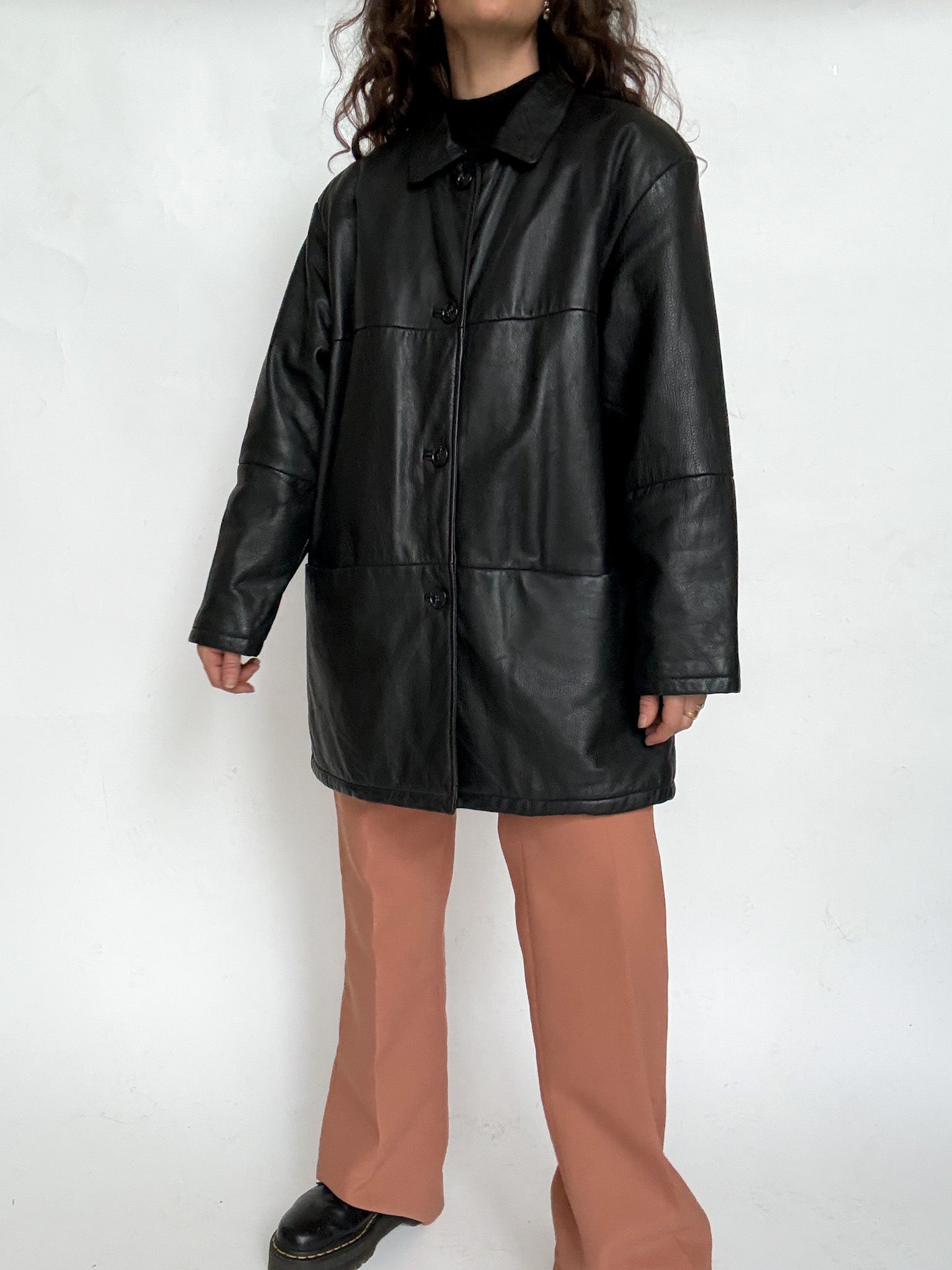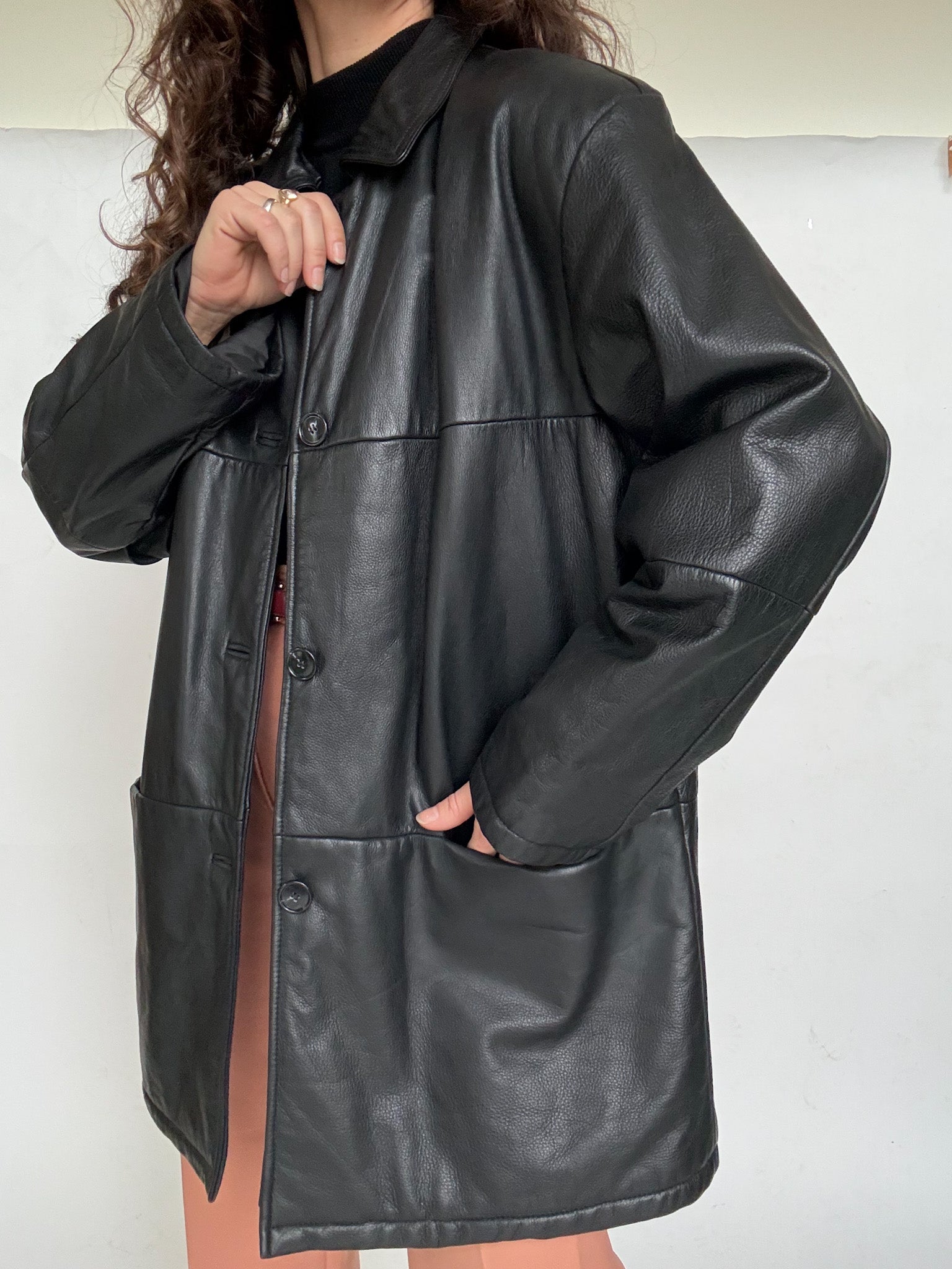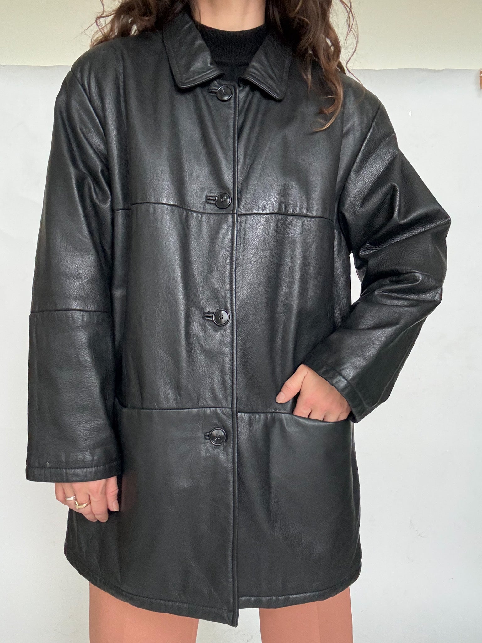 Chosen for its timeless simplicity and effortless versatility, this leather jacket is a true everyday winter essential. The clean silhouette is balanced by a slightly relaxed fit, making it easy to wear with any outfit while still feeling polished. Fully lined for warmth, it’s a piece selected for its practicality, durability and that understated vintage elegance that never goes out of style.