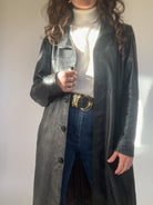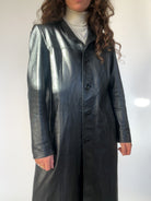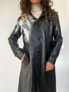Minimal, structured, and endlessly refined — this 90’s leather coat embodies quiet confidence. The clean tailoring elongates the silhouette, while the smooth leather texture gives it that sleek sophistication that transcends eras. It’s the kind of piece that turns simplicity into power — timeless, bold, and effortlessly elegant.