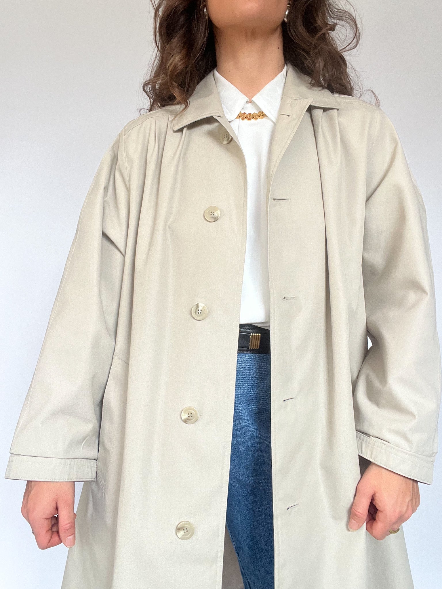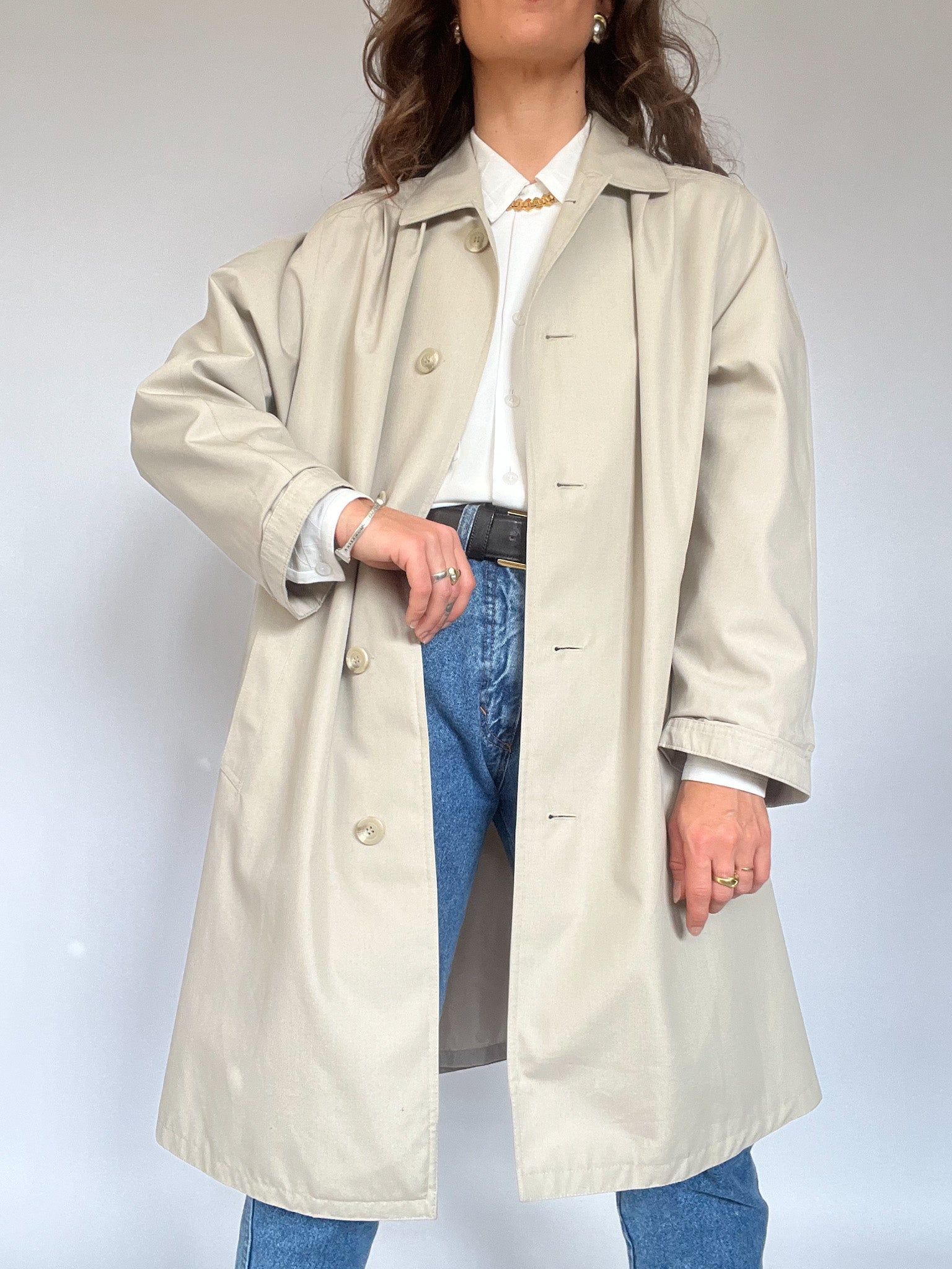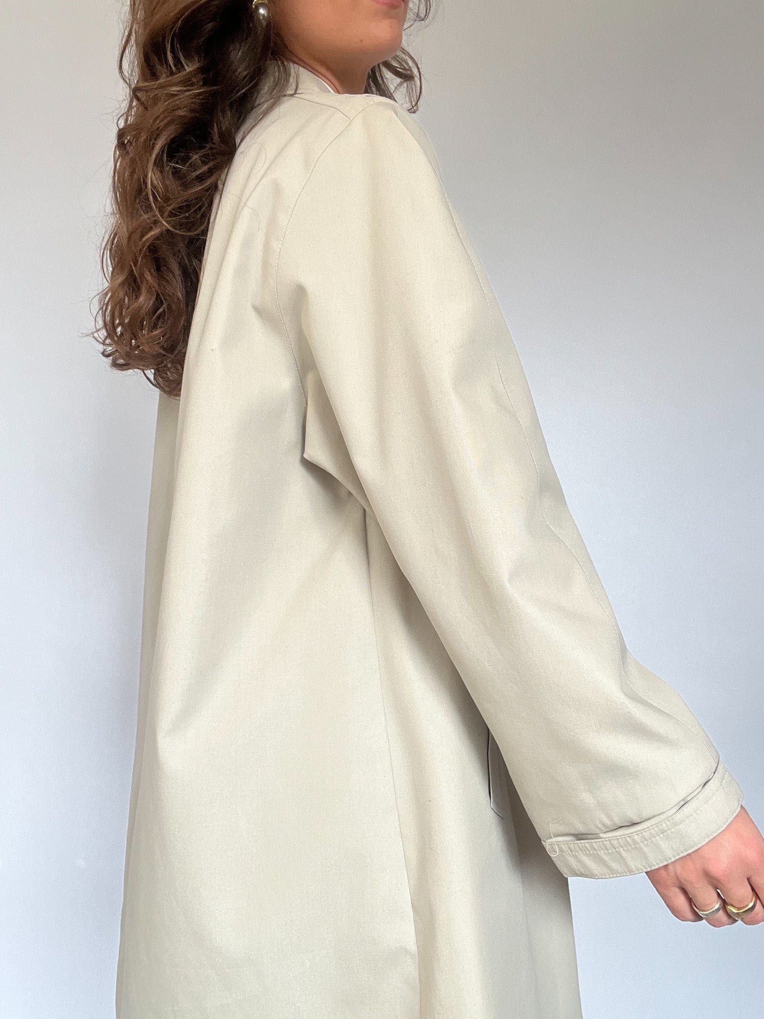 A timeless essential for the mid-season wardrobe, this vintage trench coat embodies the kind of quiet strength and subtle elegance Skorpiones Vintage loves to highlight. Its minimalist design and soft beige tone make it a versatile piece, perfect for layering and embracing the shift of seasons with effortless grace.