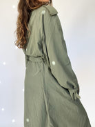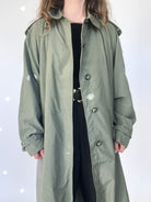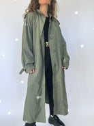 This Italian-made trench from the 90’s combines utility and elegance with its deep khaki tone and long structured cut. Crafted entirely in polyester, it offers durability and a sleek drape, making it a versatile piece for everyday wear. Its broad shoulders and generous fit embody the confident lines of 90’s tailoring while keeping an effortlessly timeless look. At Skorpiones Vintage, we select coats like this for their ability to empower—pieces that balance strength and sophistication, ready to stand apart from fast fashion trends.