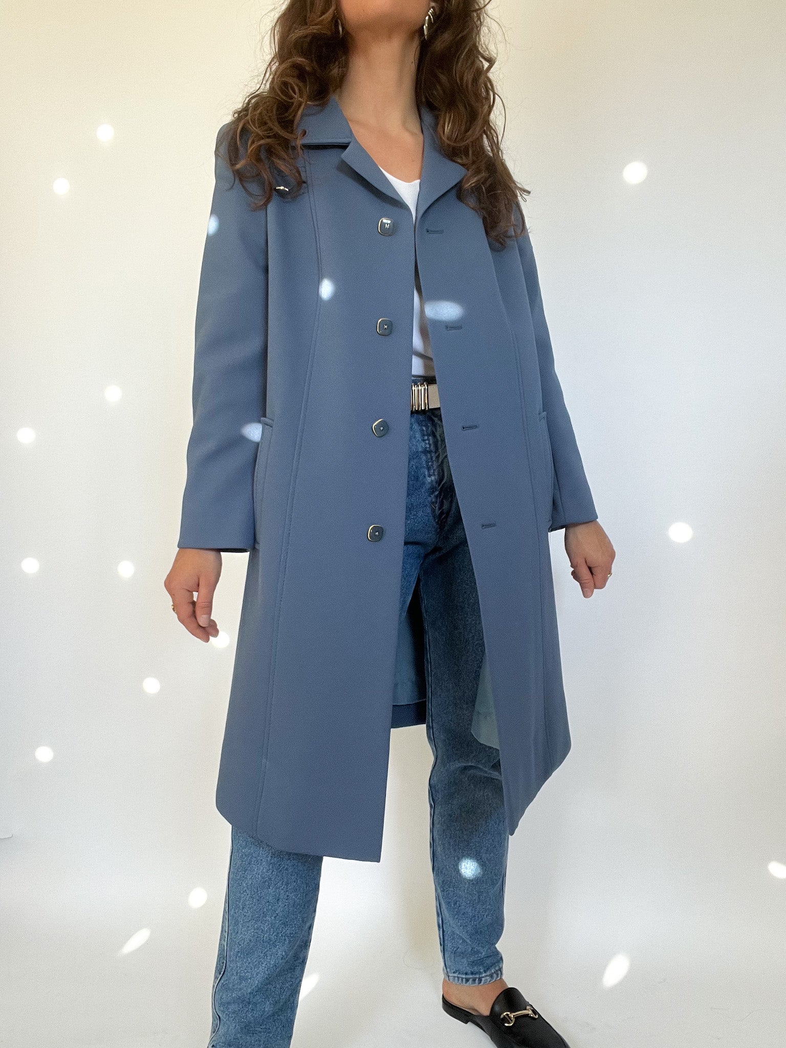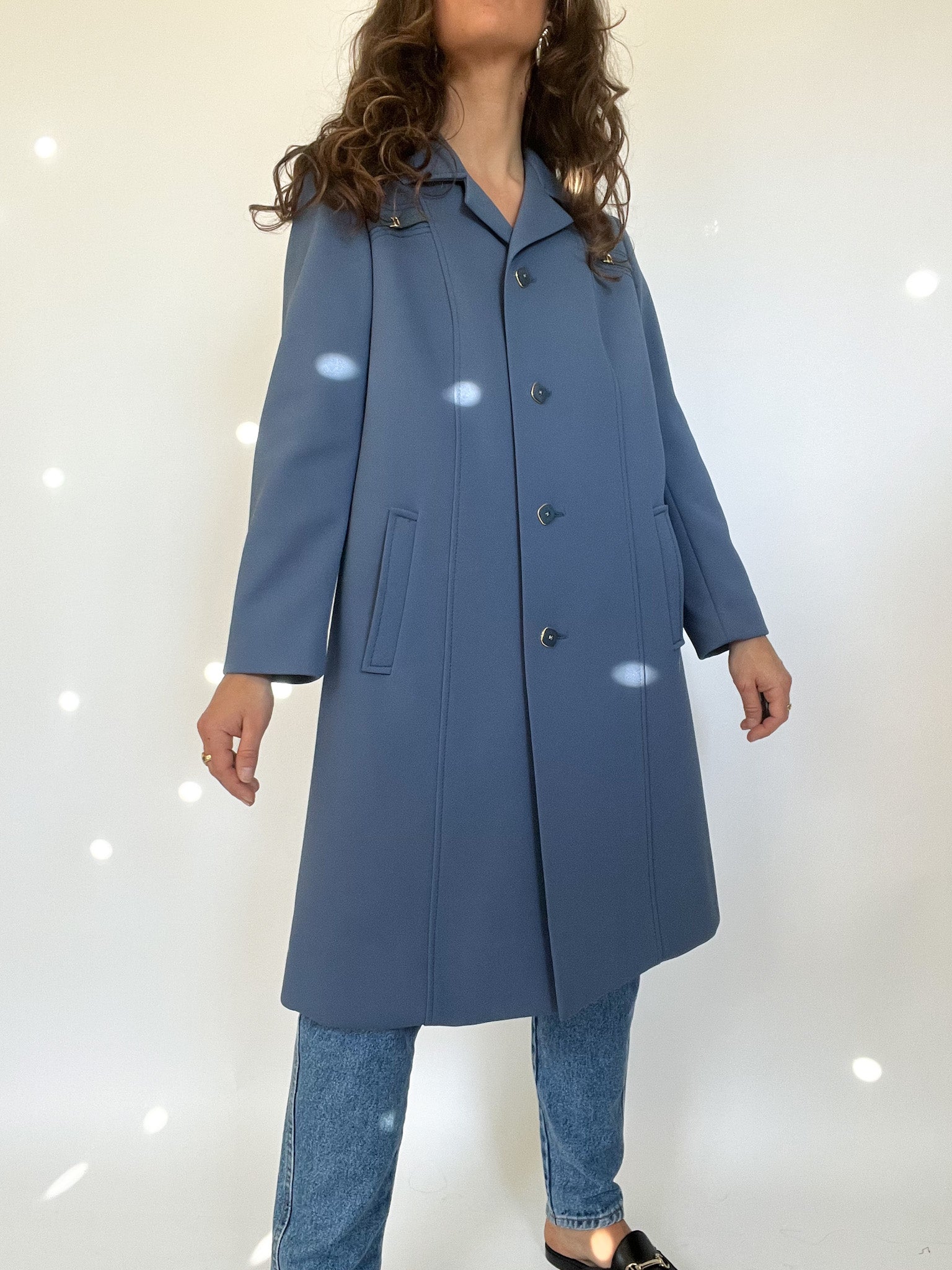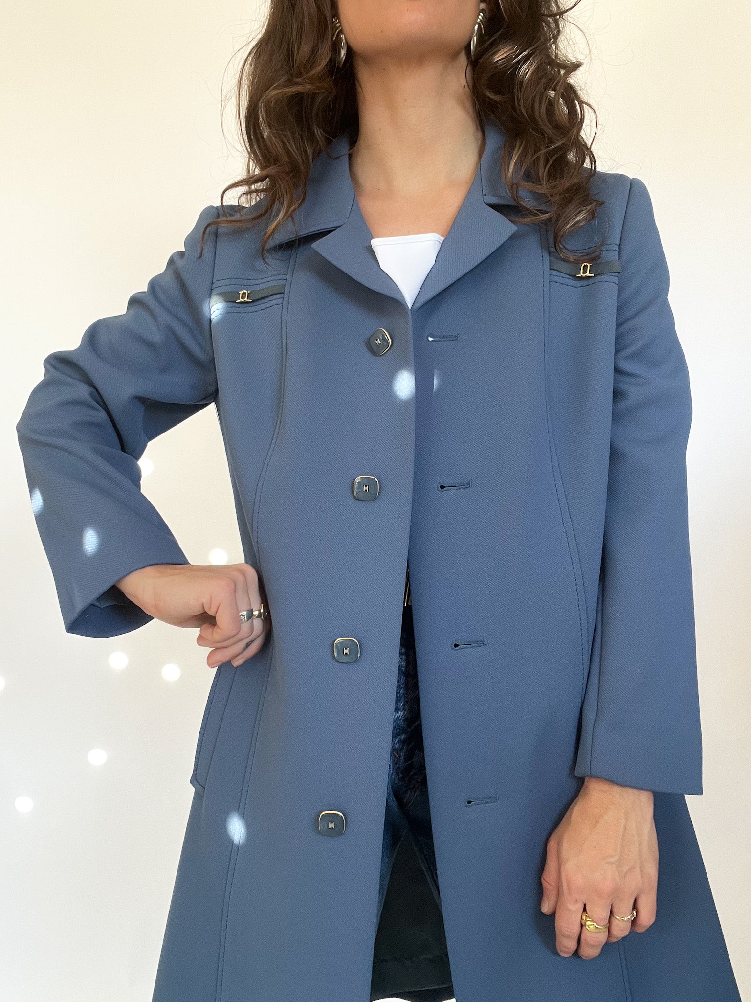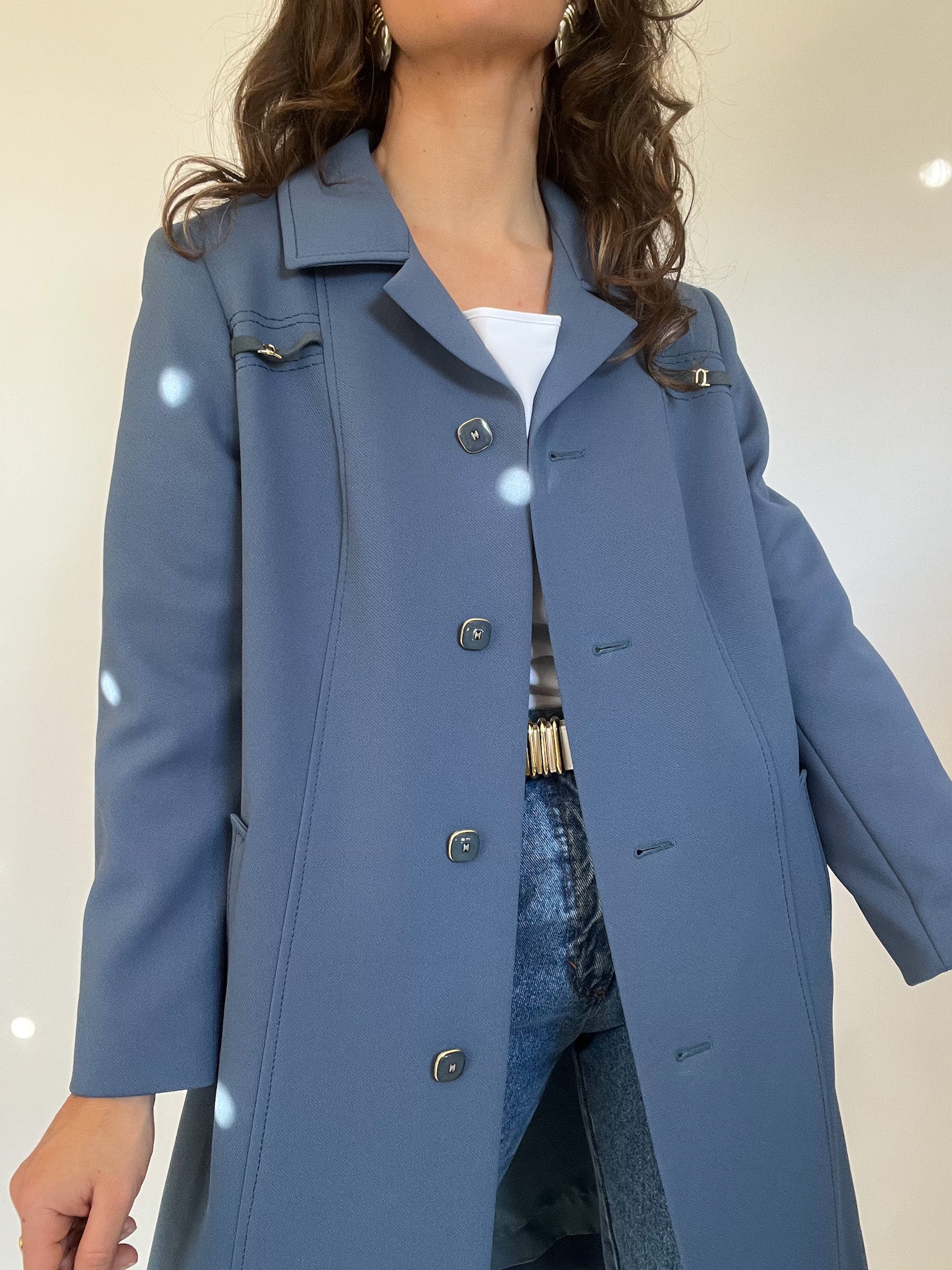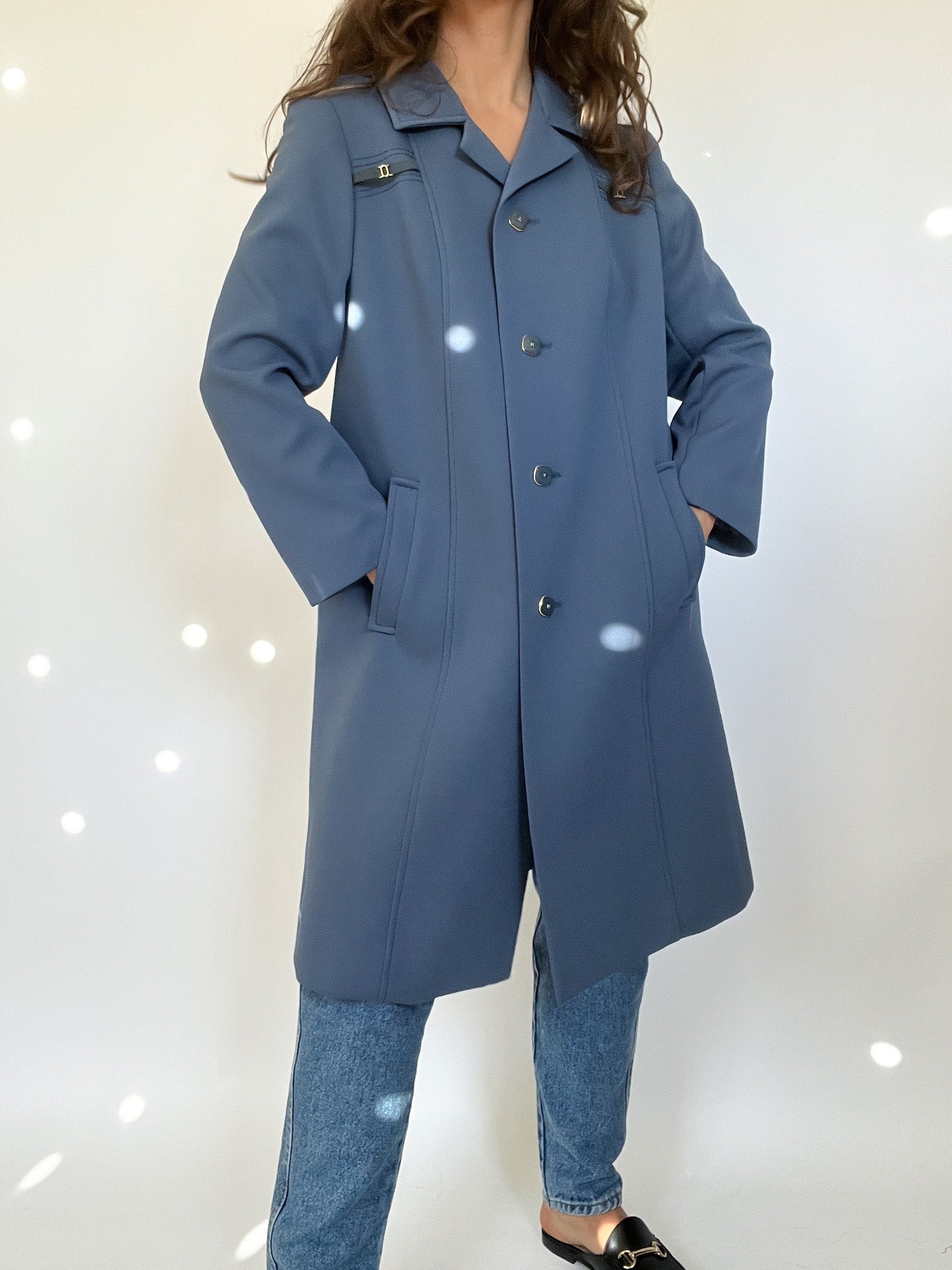Vintage Steel Blue 70’s Coat with Zipper Accents