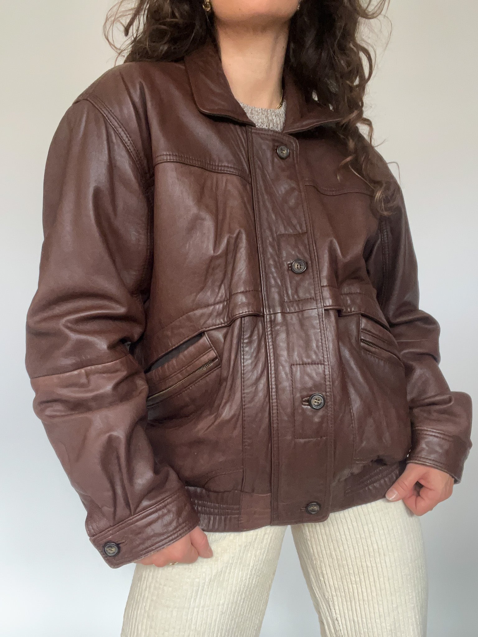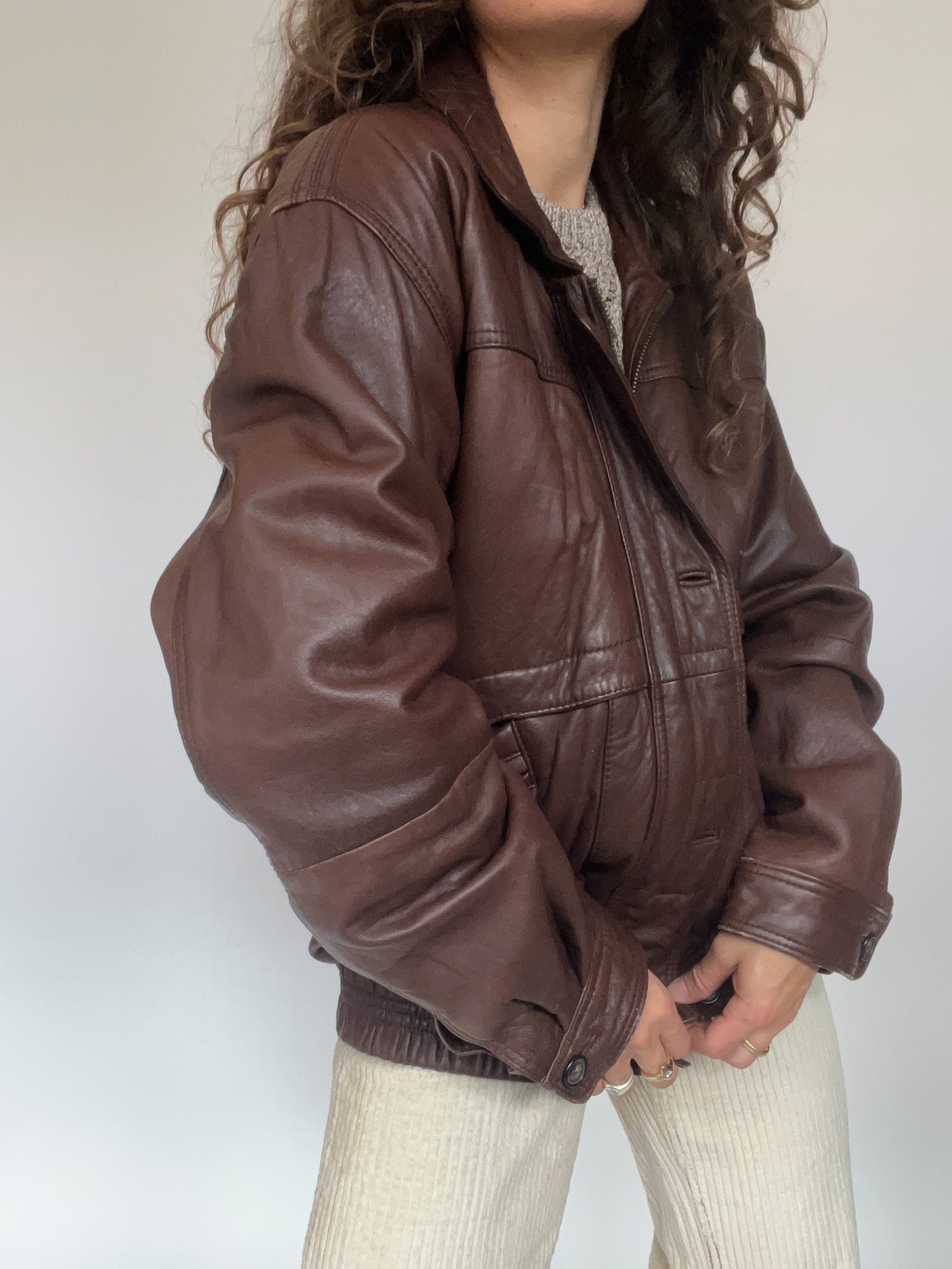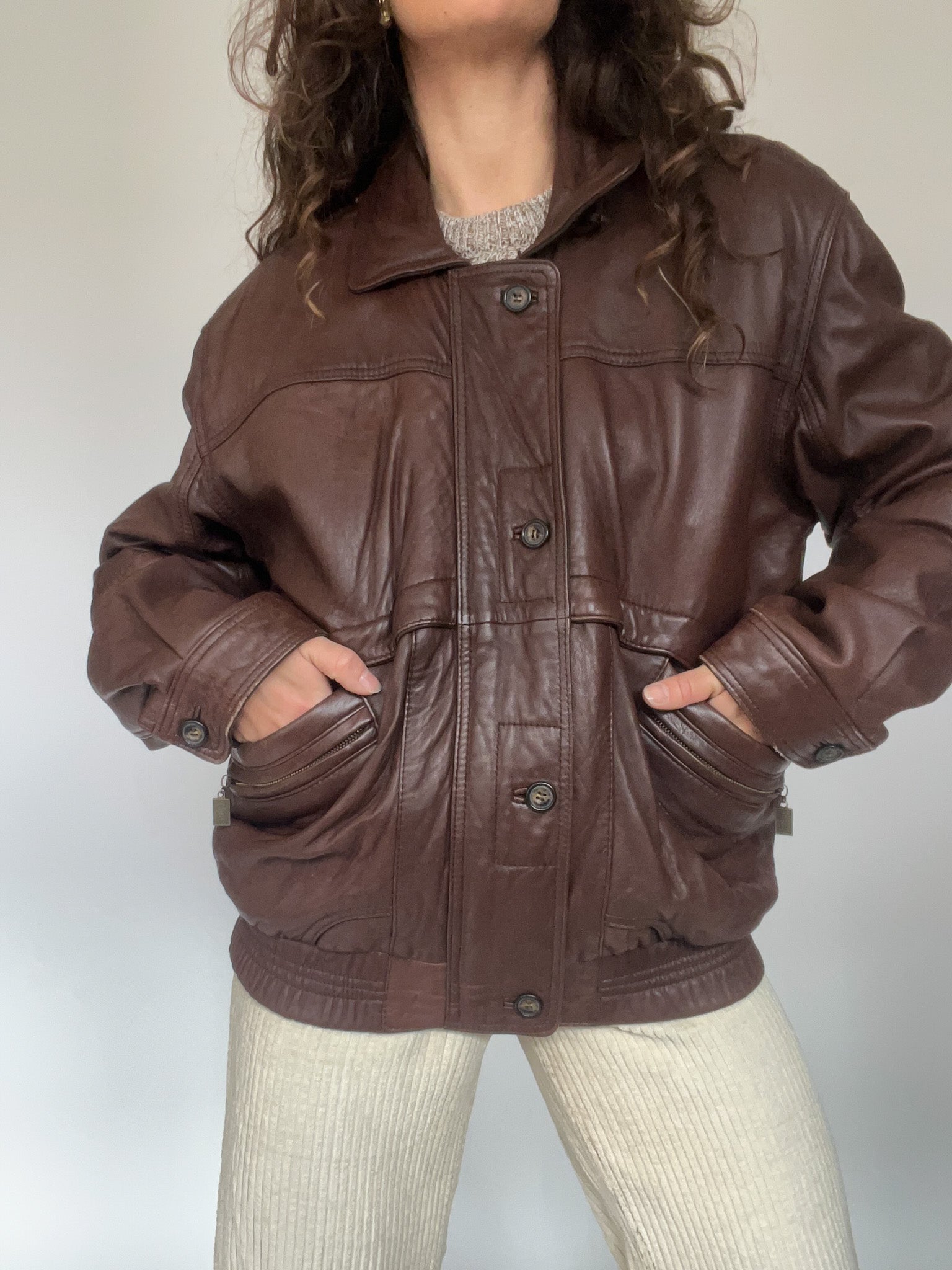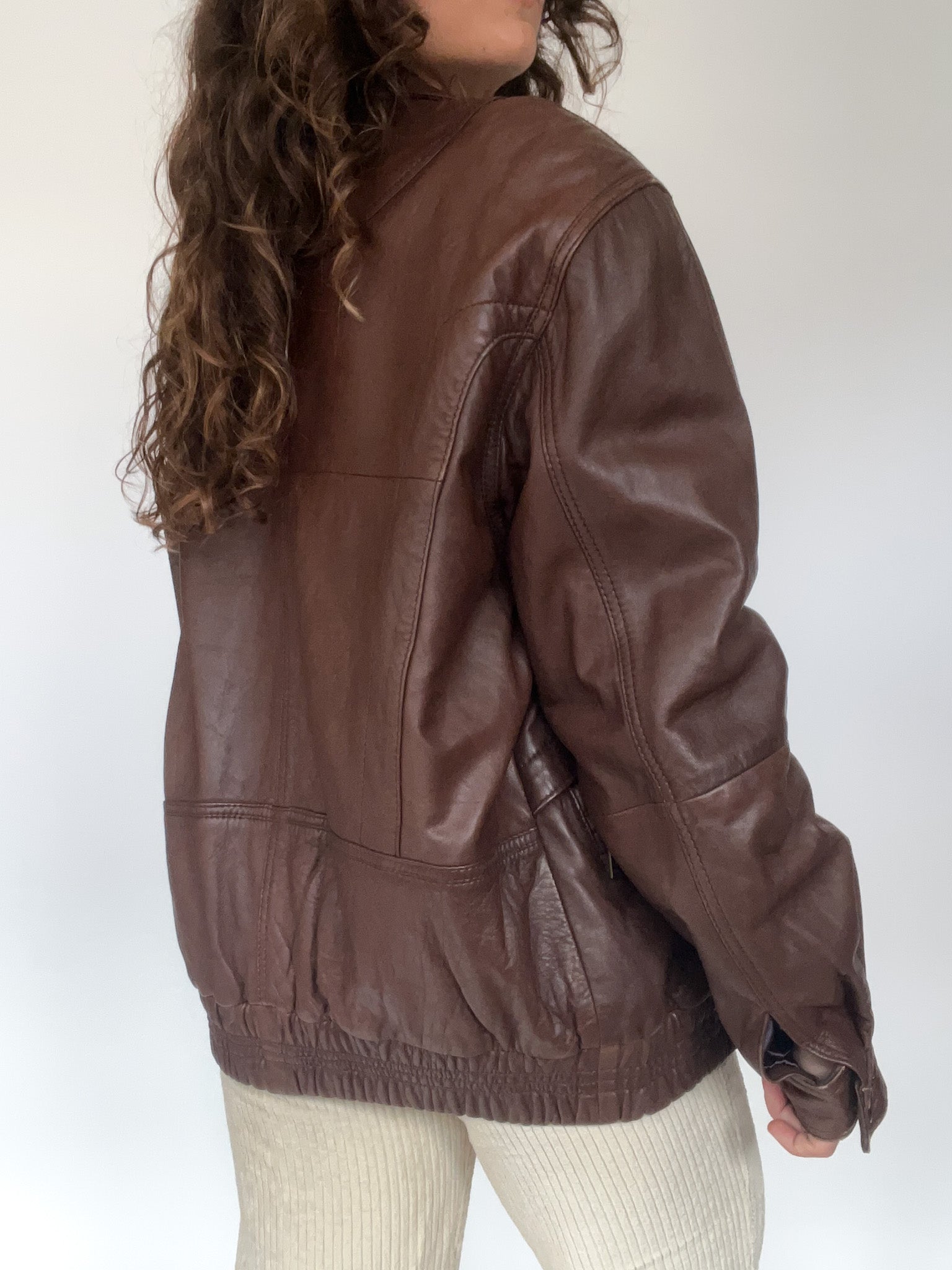 Vintage 80’s Chocolate Brown Bomber Leather Jacket