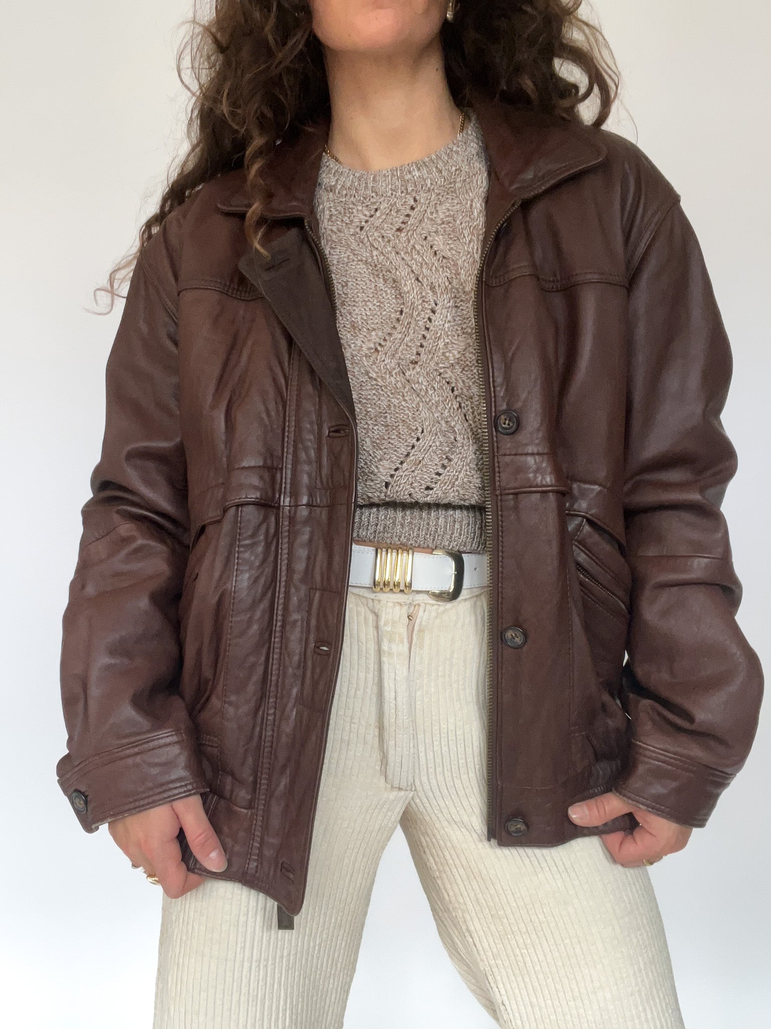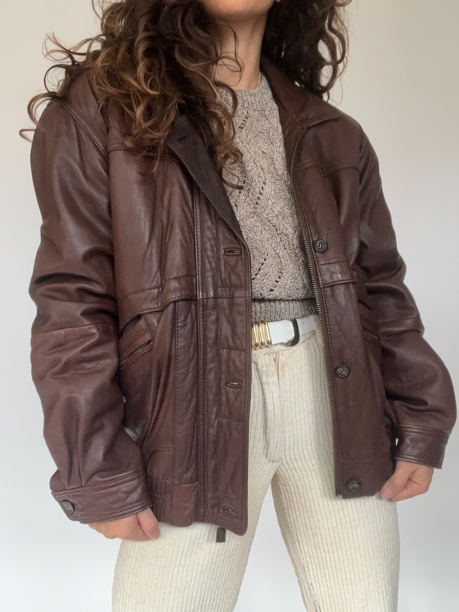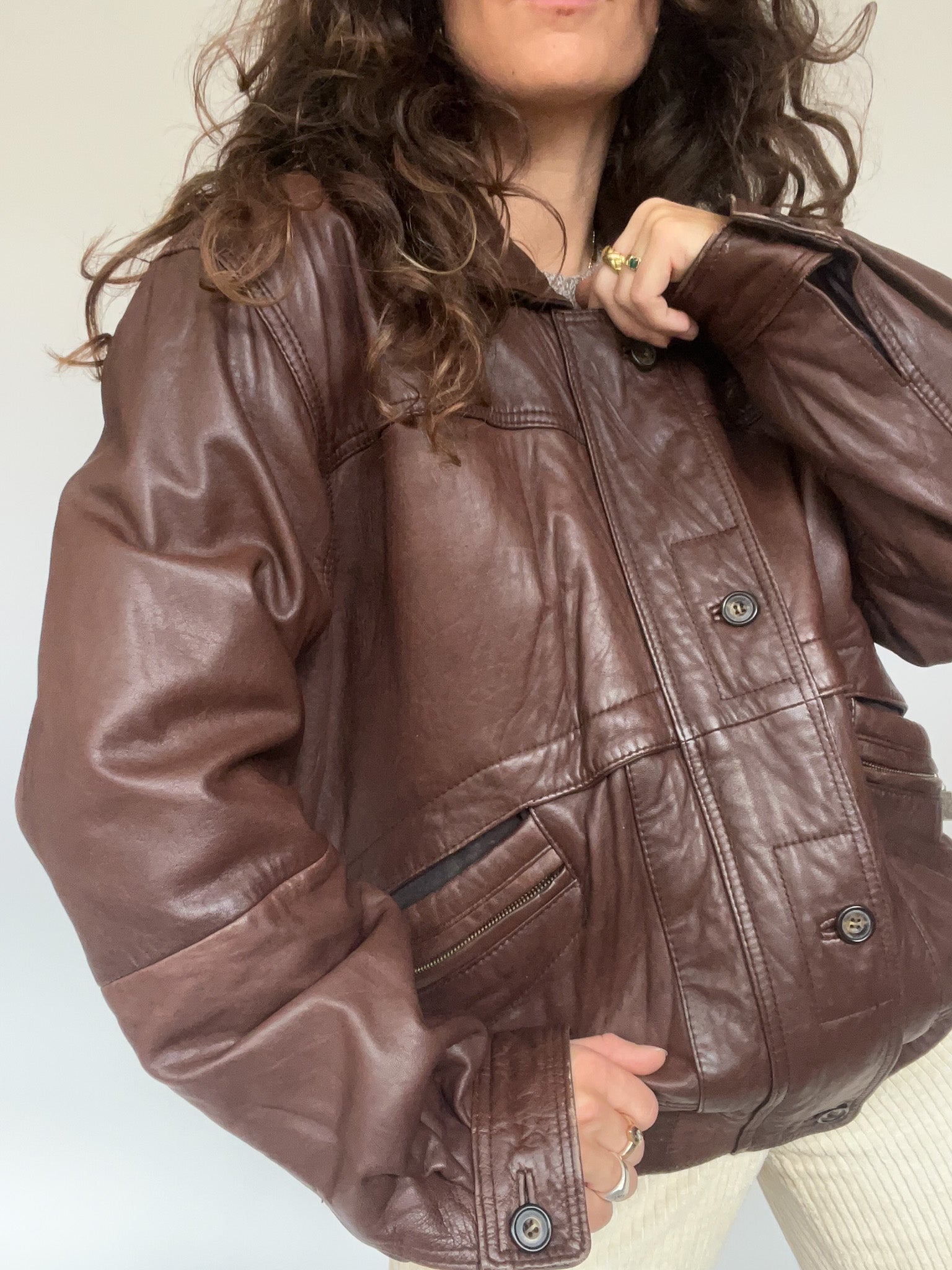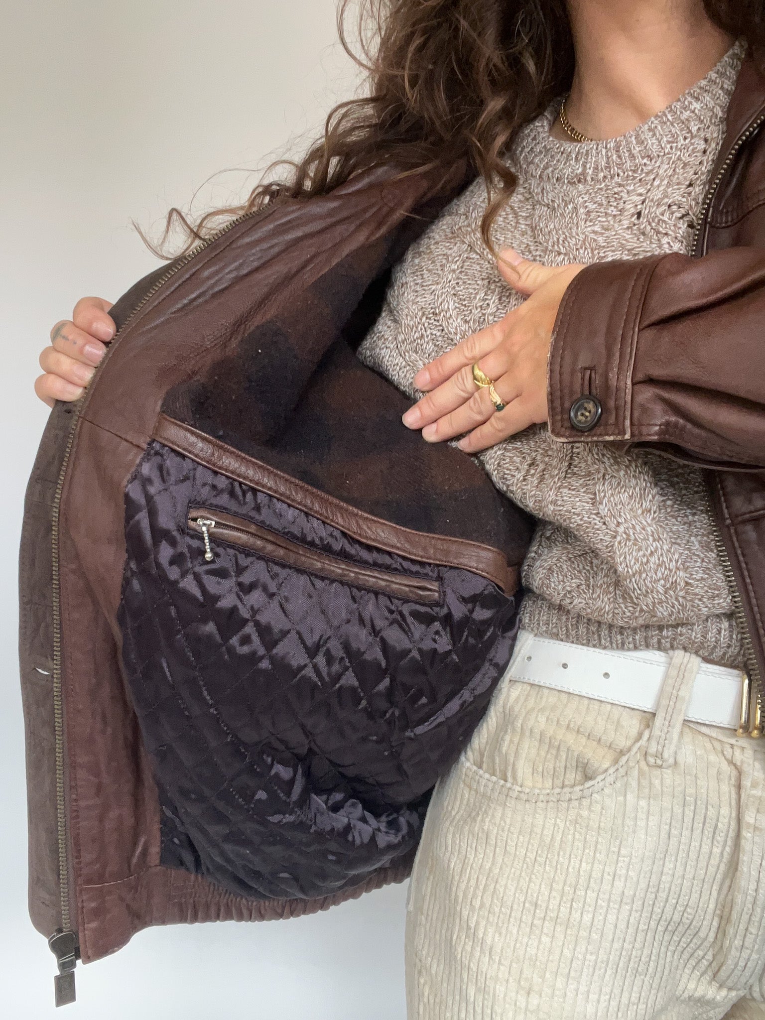 Vintage 80’s Chocolate Brown Bomber Leather Jacket