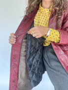 Get swept away by the authentic charm of this burgundy leather jacket. With its patchwork stitching and vintage appeal, it brings a bold retro touch to any outfit. Made from supple leather with a slightly oversized fit, it’s perfect for a relaxed yet chic look. Pair it with jeans or a skirt for an effortlessly stylish vibe.