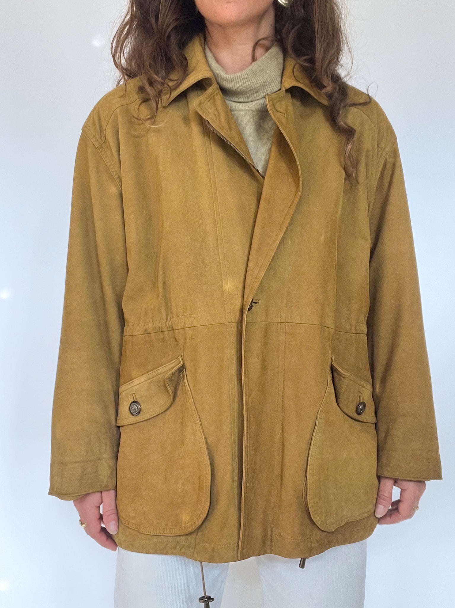Vintage 80’s Mustard Suede Jacket with Adjustable Waist