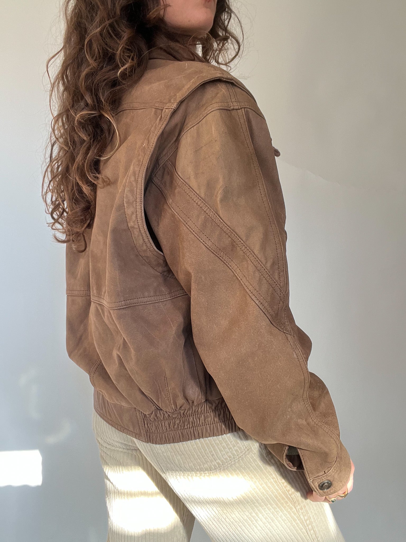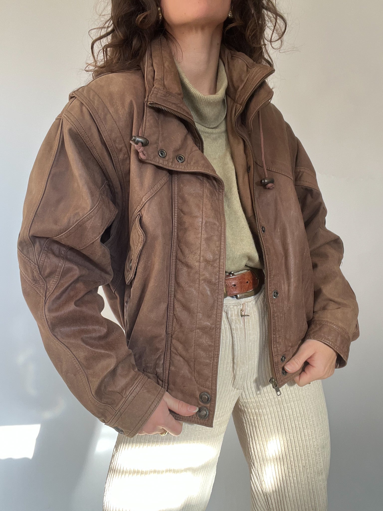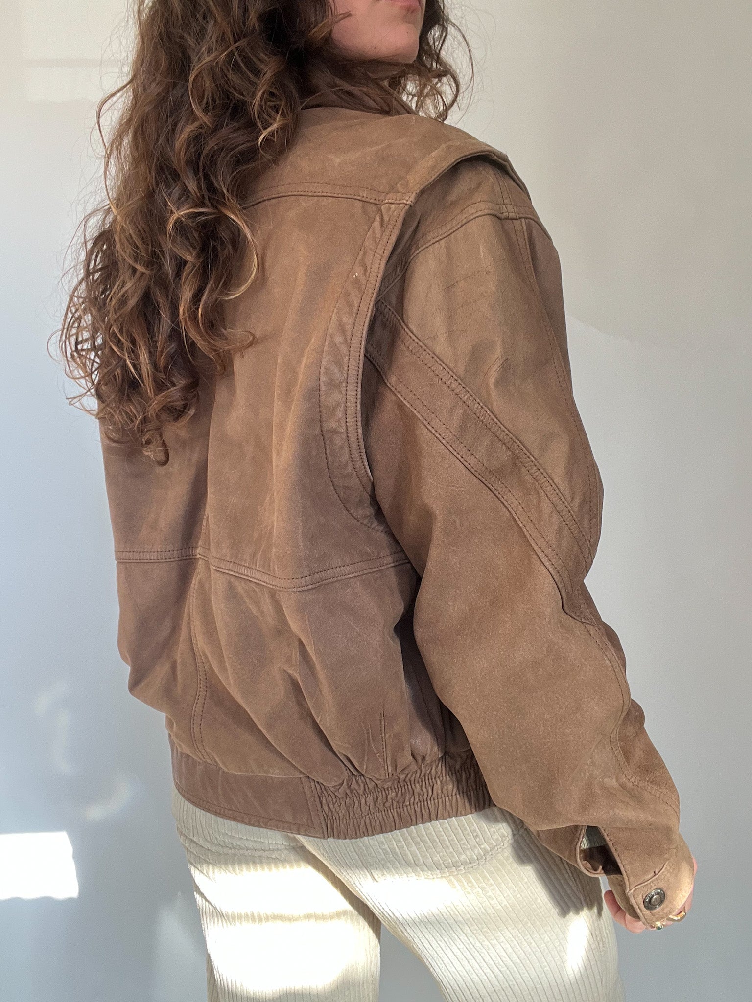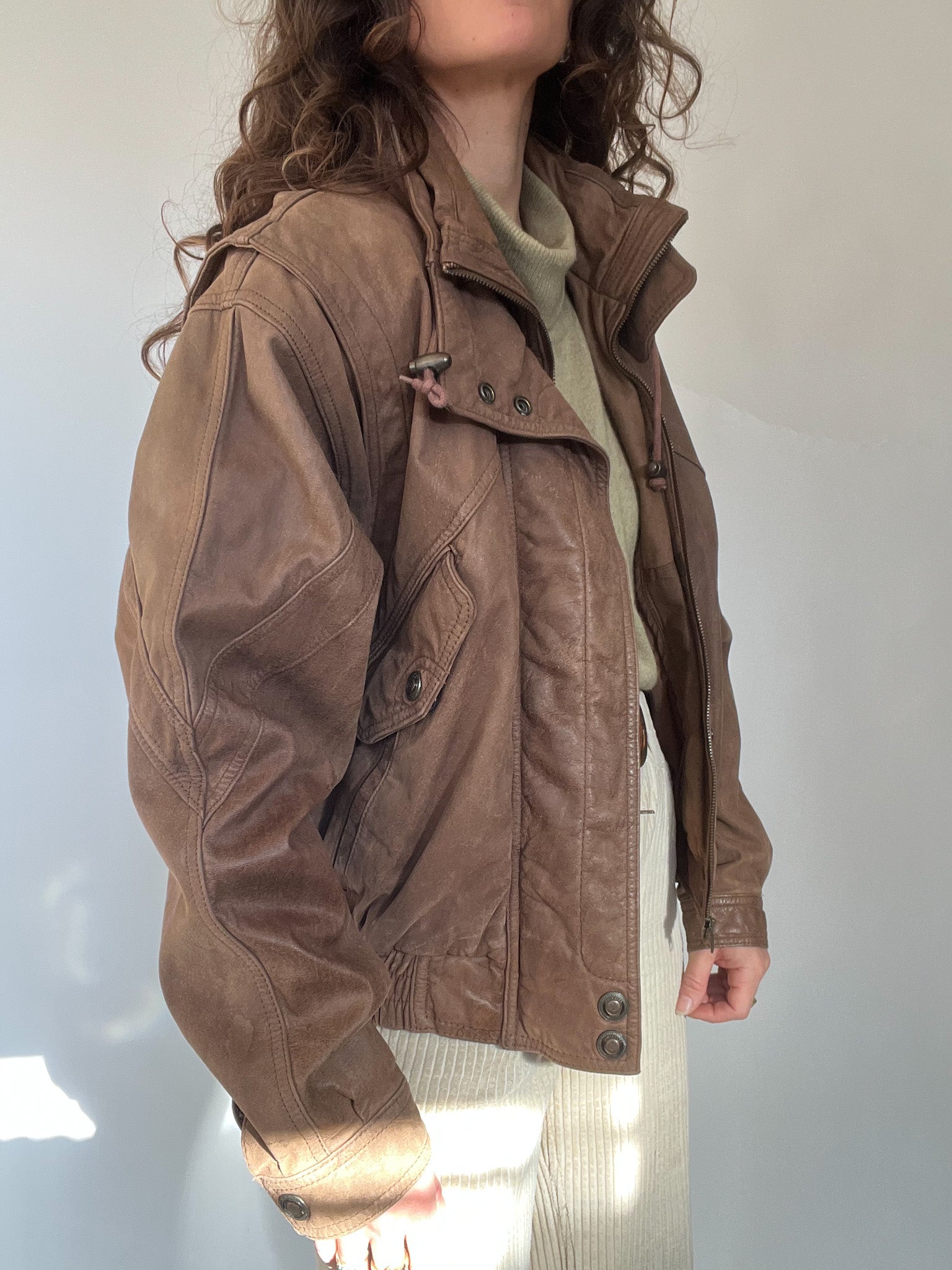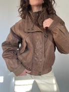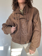 Vintage 80’s Taupe Leather Bomber Jacket