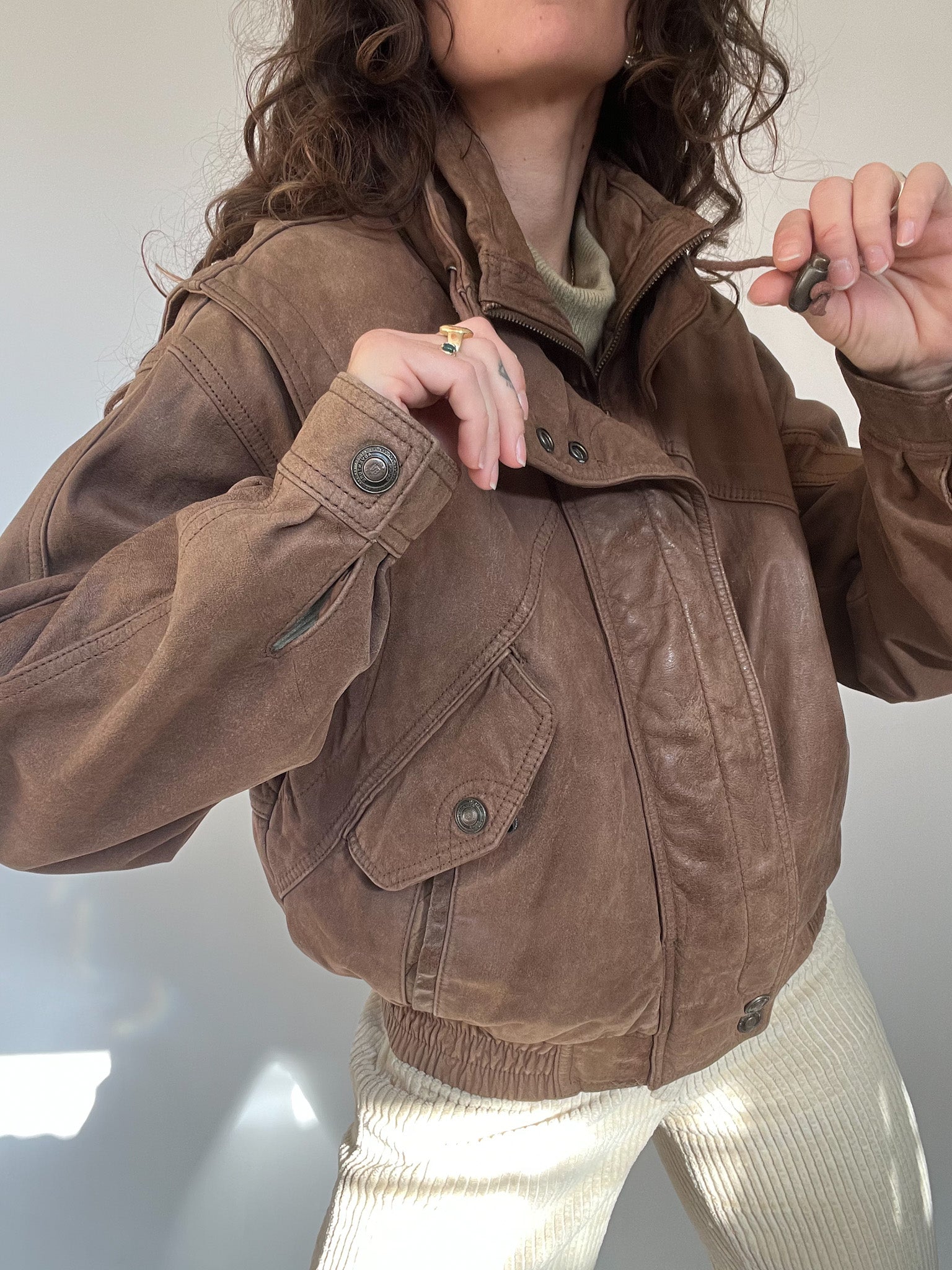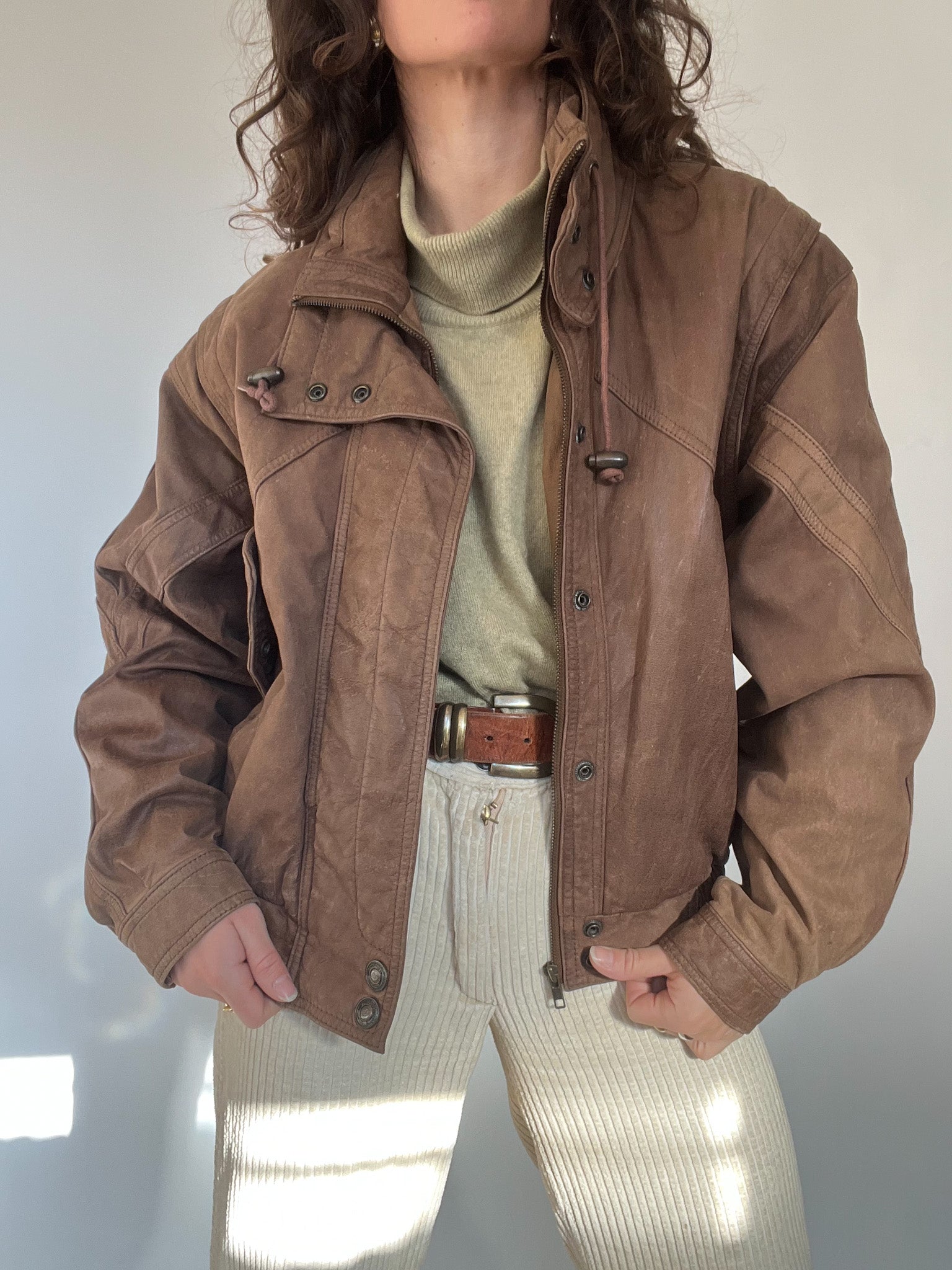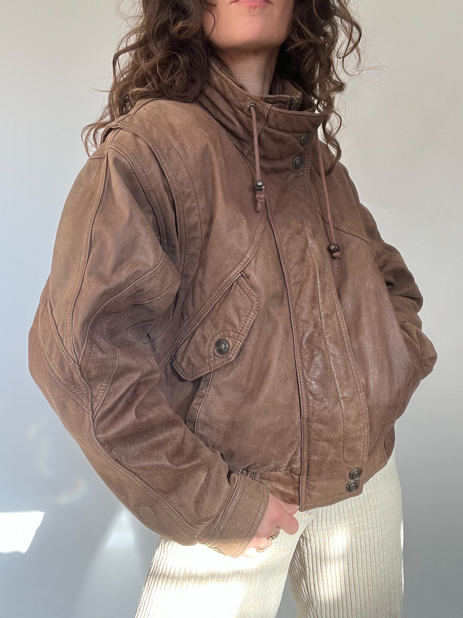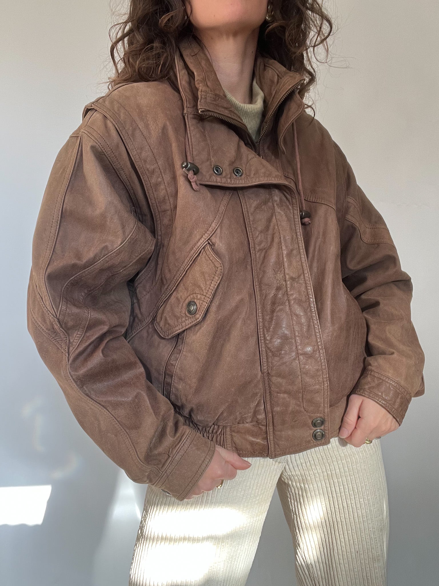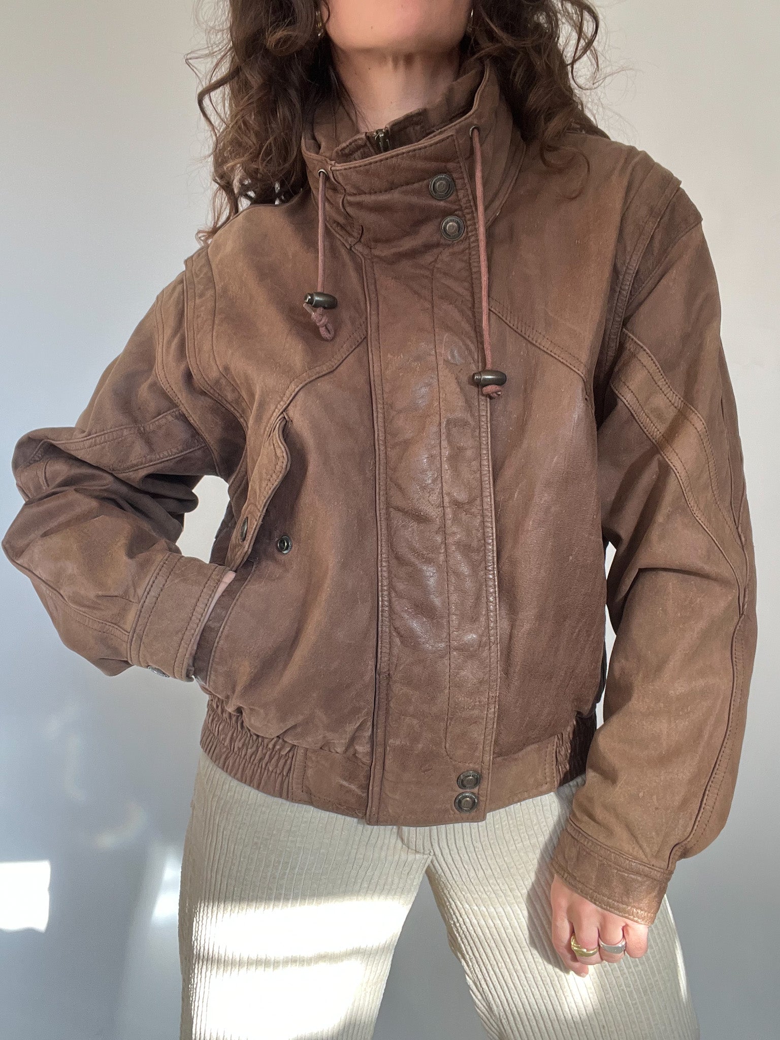 Vintage 80’s Taupe Leather Bomber Jacket
