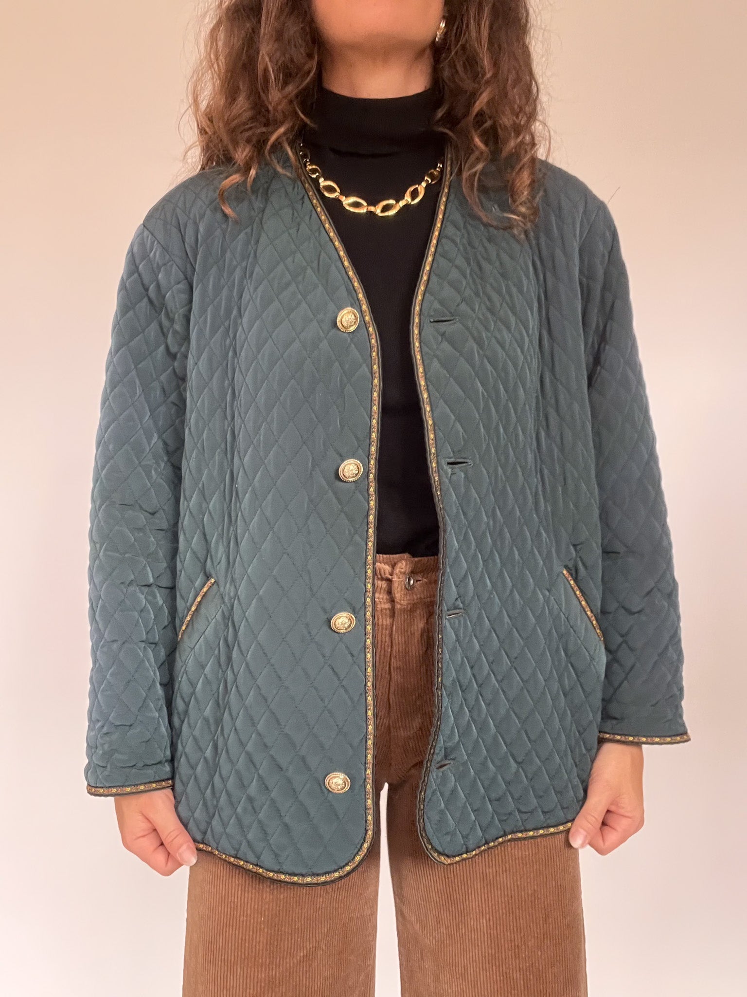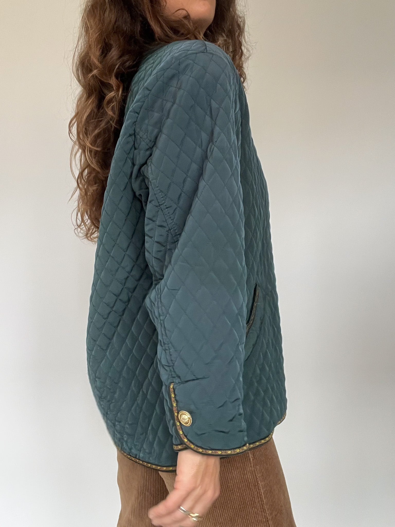 Vintage 80’s Teal Quilted Jacket with Gold Trim
