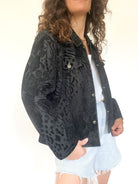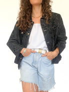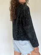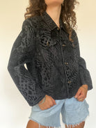 This jacket is a mood. With its tonal jacquard print mixing leopard, zebra and abstract florals, it’s all about quiet drama. The cropped boxy cut and metal buttons keep it grounded in the 90s. A standout vintage piece for when you want to make a statement without saying a word.