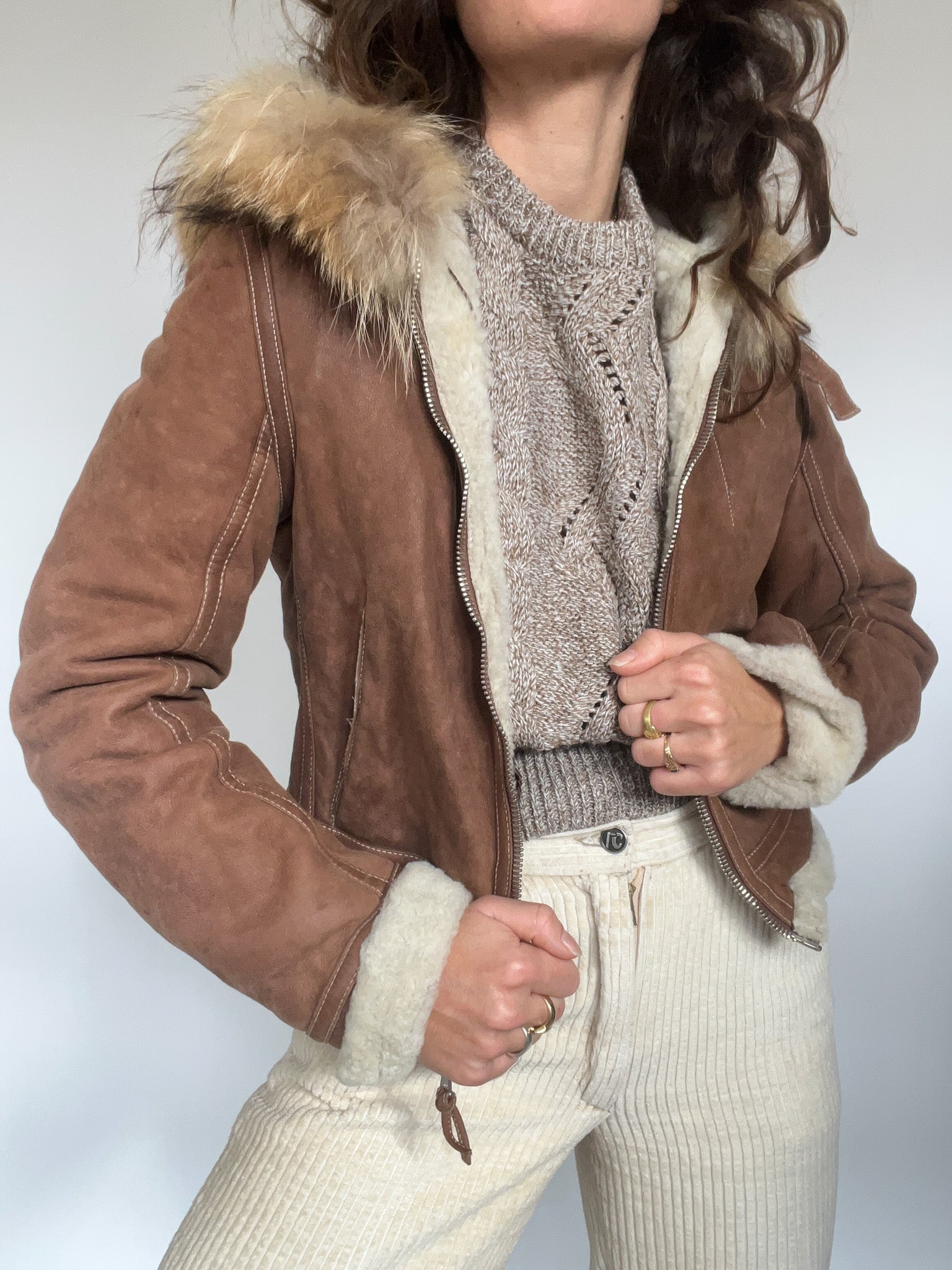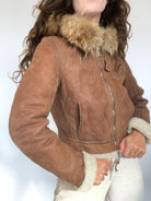Vintage 90’s Shearling Brown Leather Jacket with Fur Hood