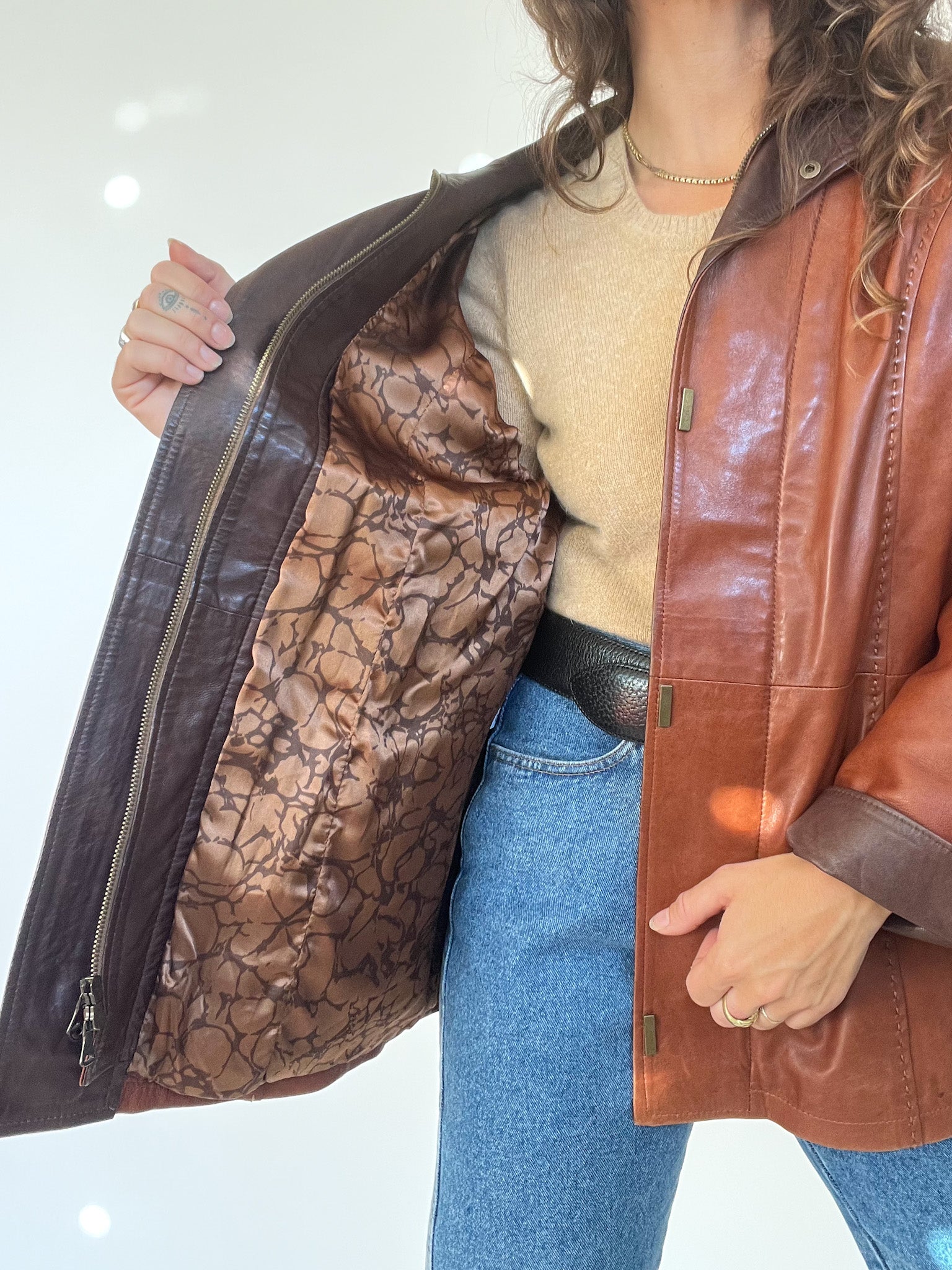 Vintage 90’s Two-Tone Brown Leather Jacket