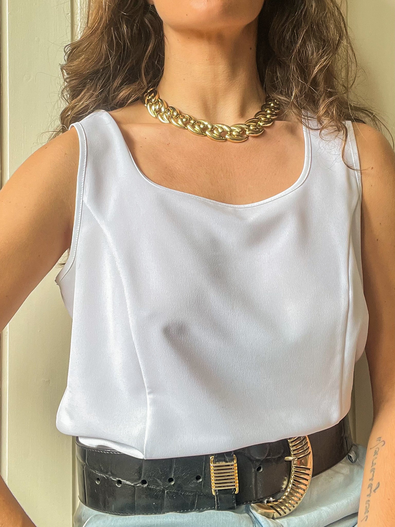 Bold, iconic and timeless—this vintage chunky curb chain necklace is a statement in itself. With its rich gold-tone finish and sculptural links, it hugs the neckline with confident elegance. Perfect for layering or worn solo to elevate even the most minimalist looks, it’s the kind of piece that embodies the power of simplicity and strength. A vintage classic that never goes unnoticed.