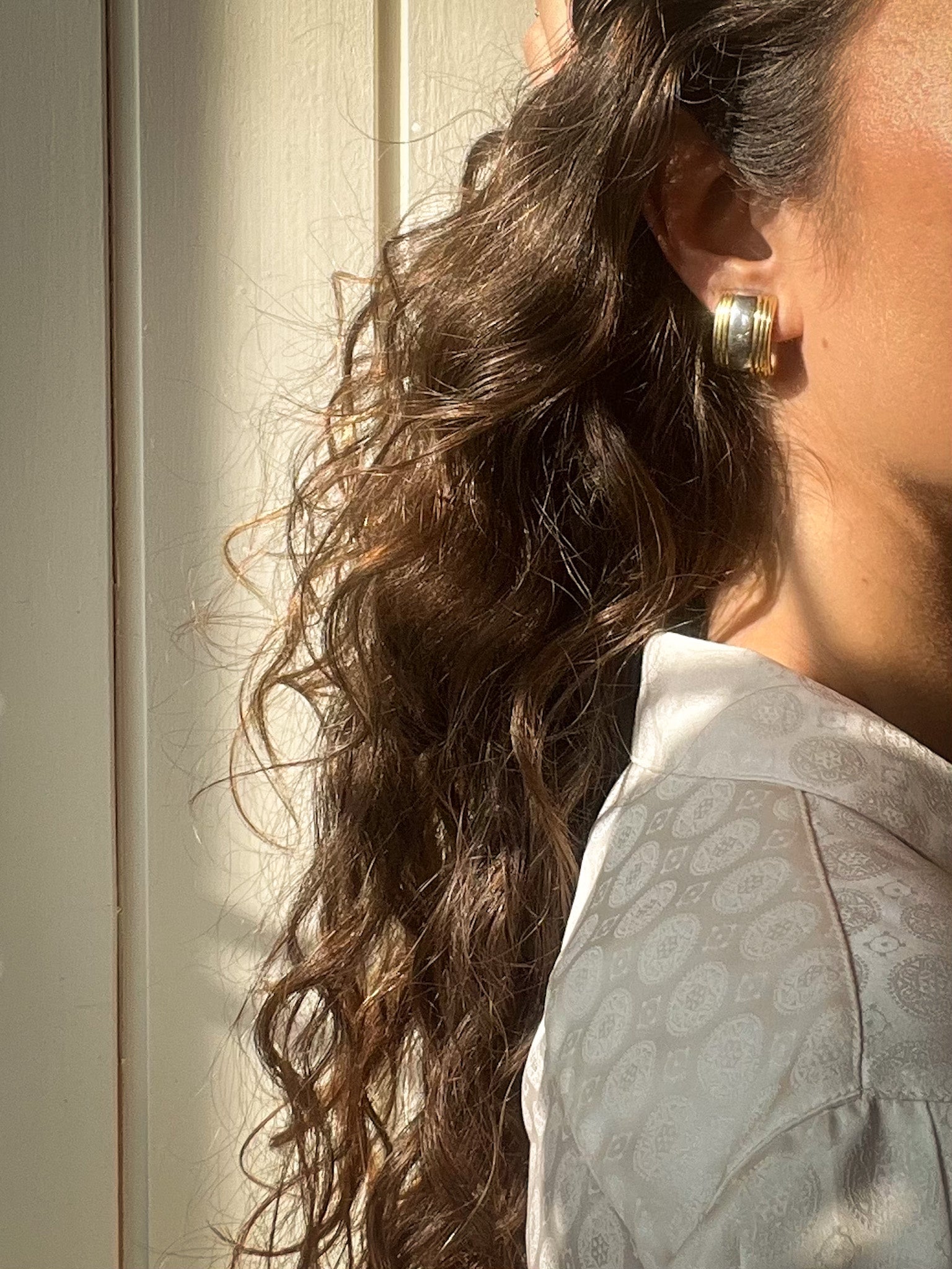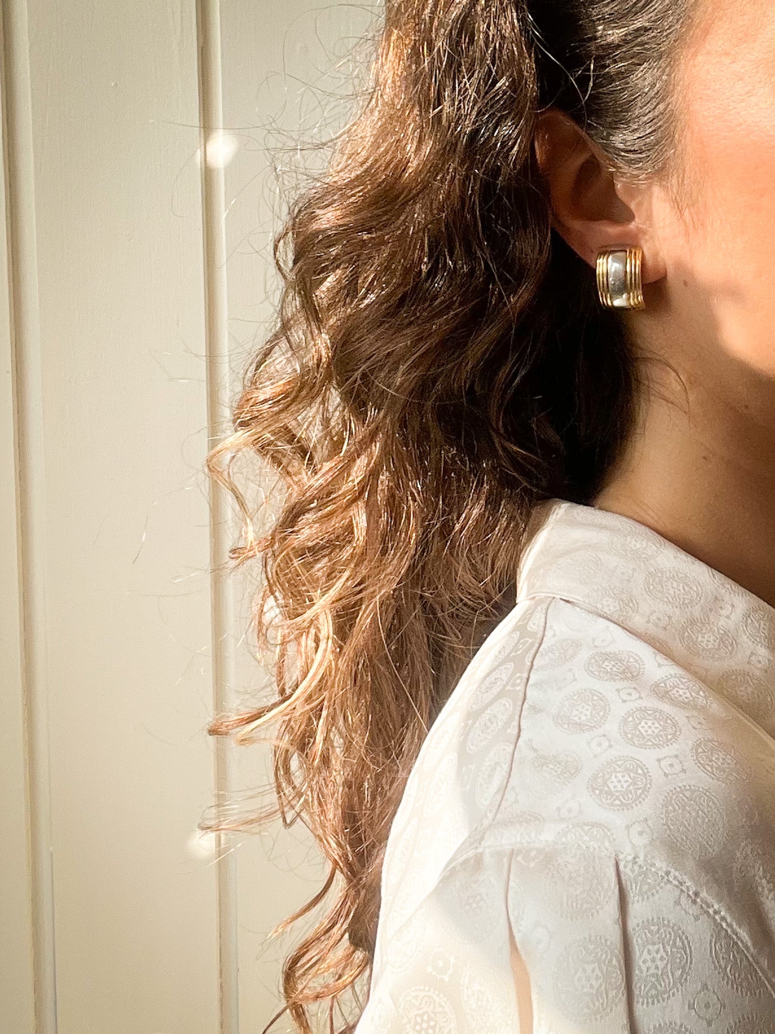 These elegant vintage clip-on earrings feature a sophisticated ribbed design with alternating gold and silver tones. Their structured, curved shape adds depth and dimension, making them a refined yet statement-worthy accessory. Timeless and versatile, they are perfect for both everyday wear and special occasions.