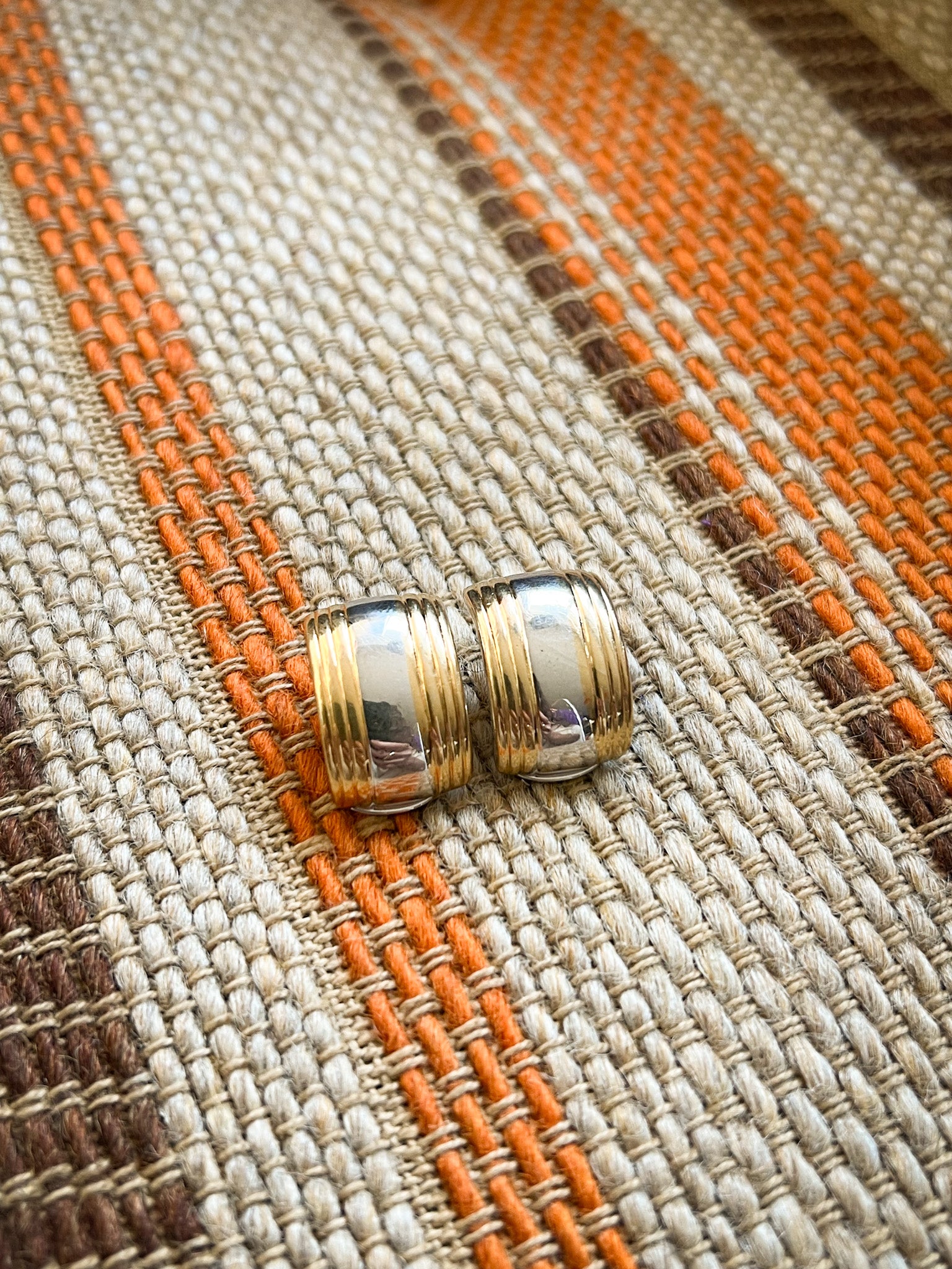 Vintage Two-Tone Ribbed Clip-On Earrings