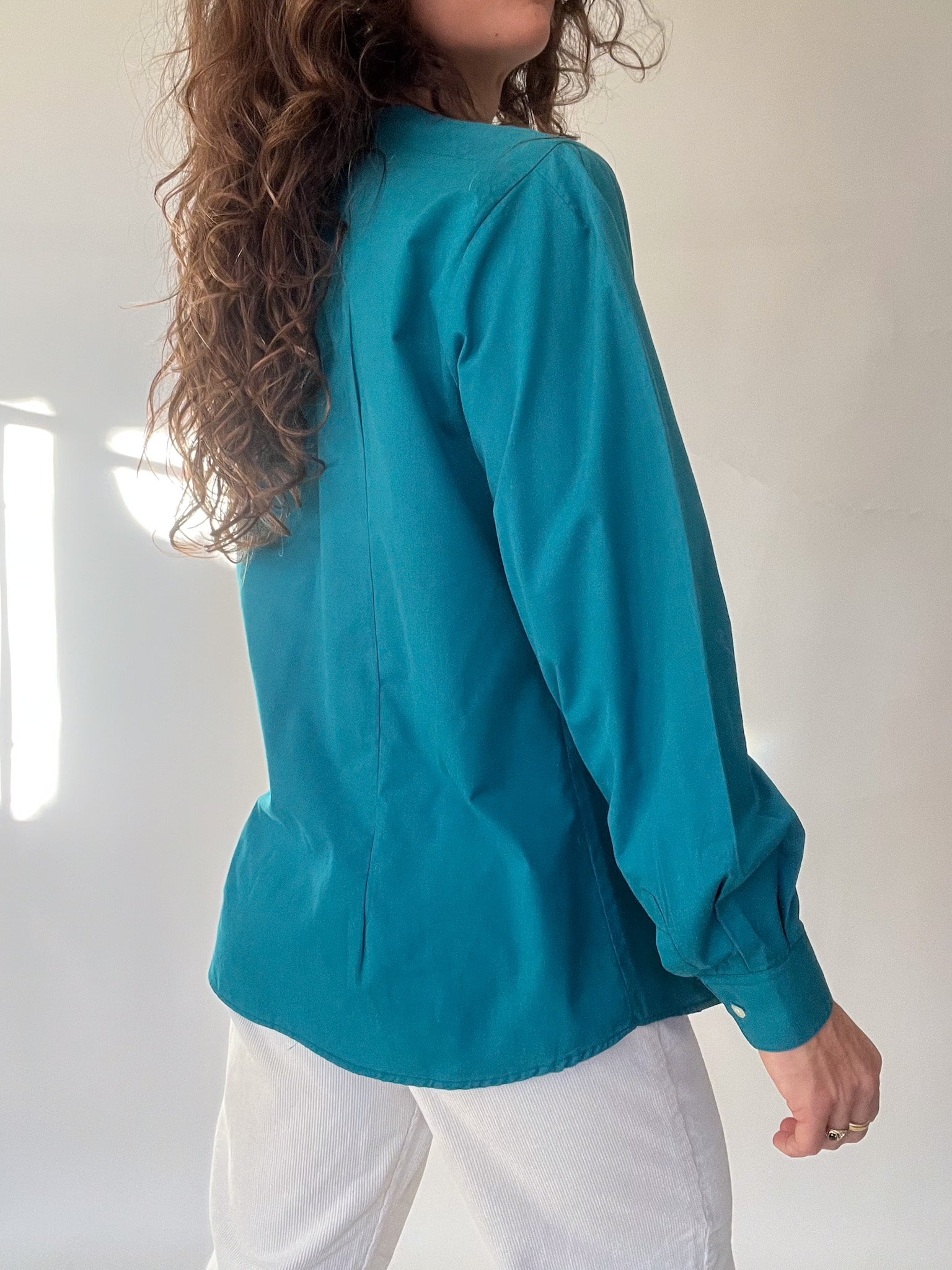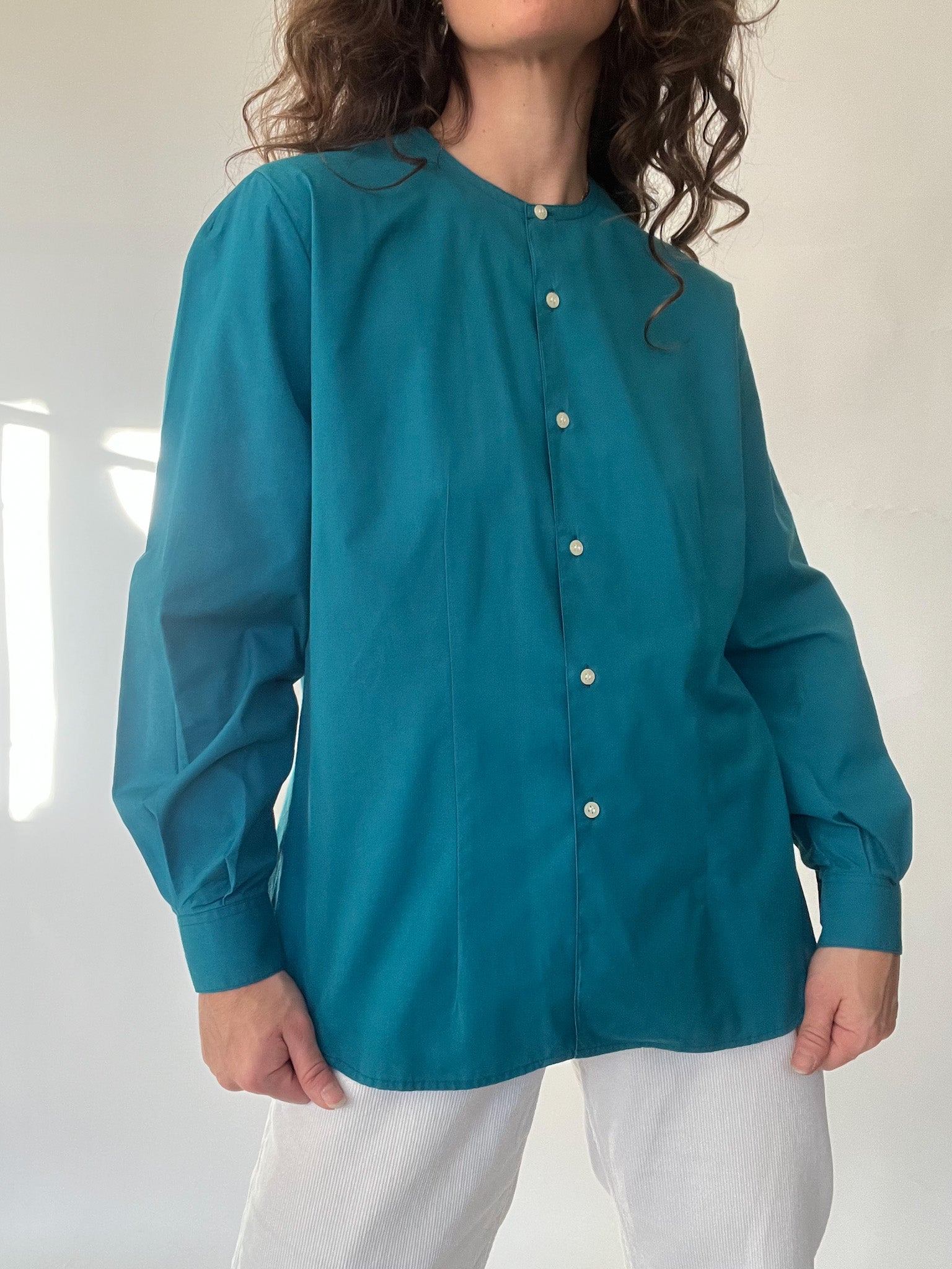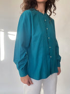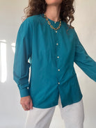 Vintage 80’s Teal Minimalist Button-Down Blouse