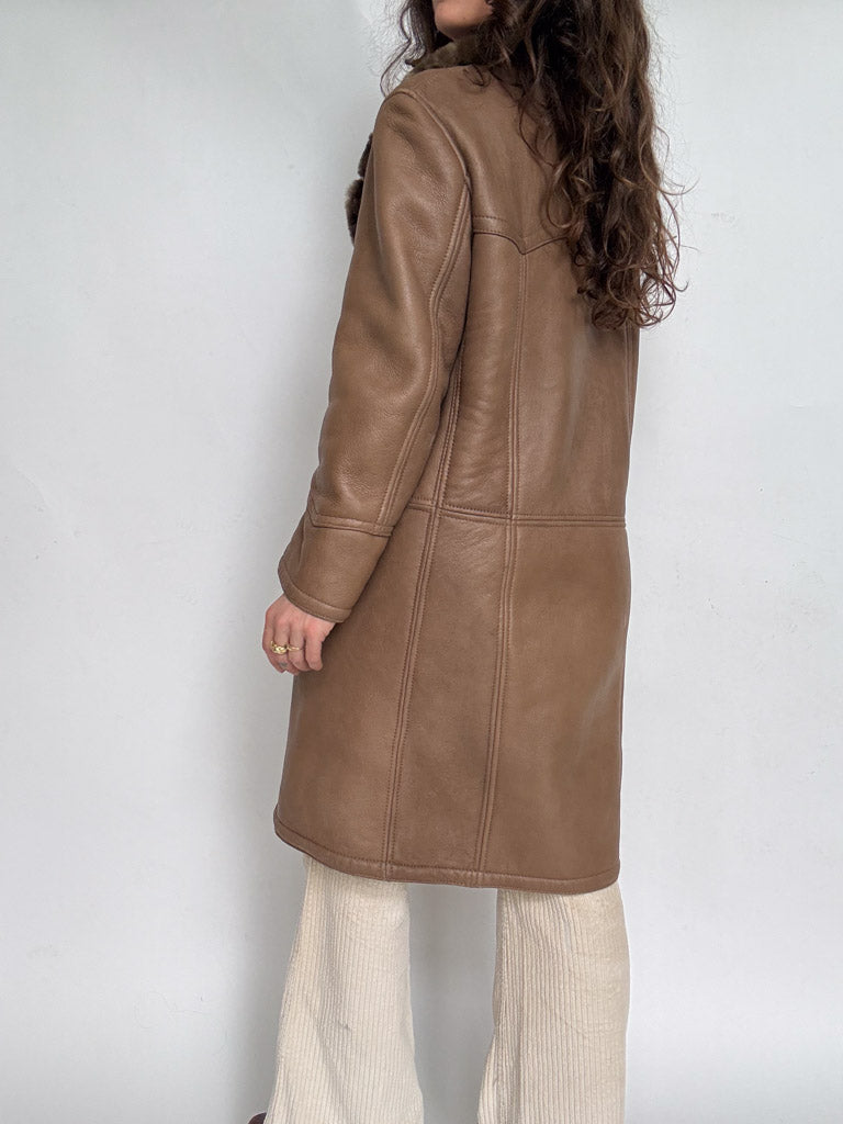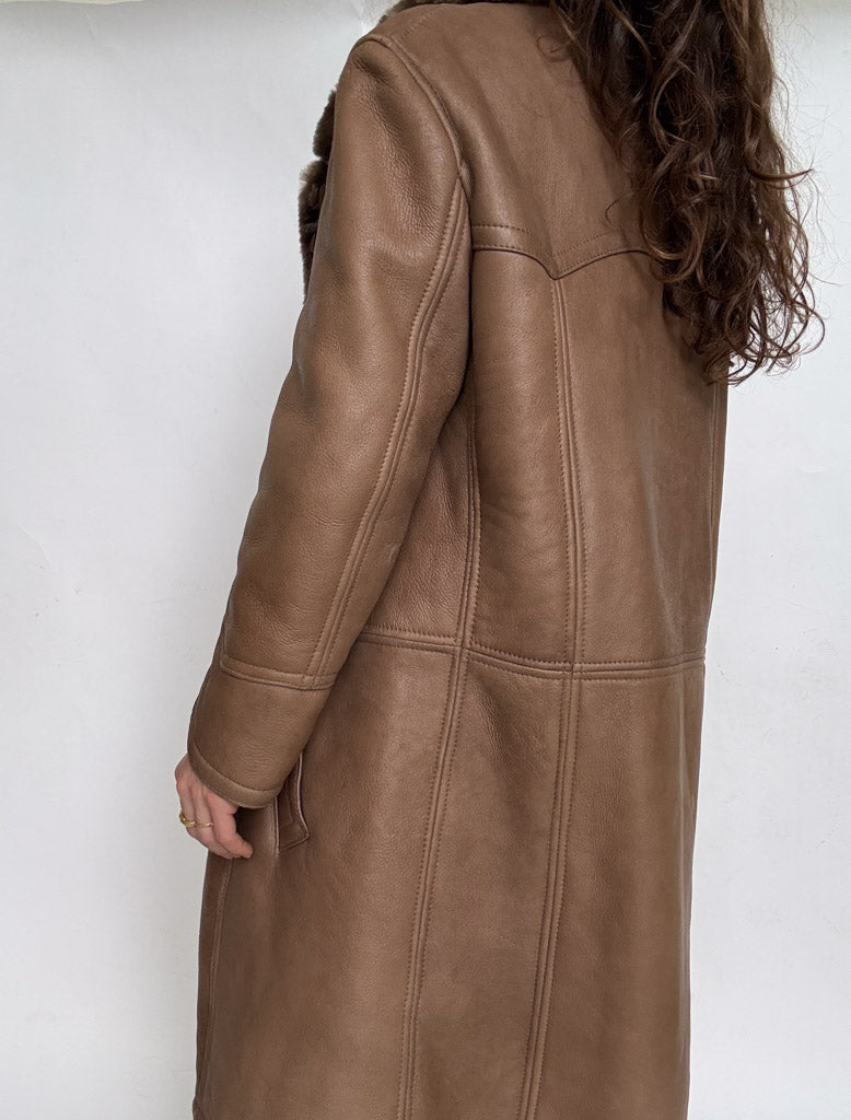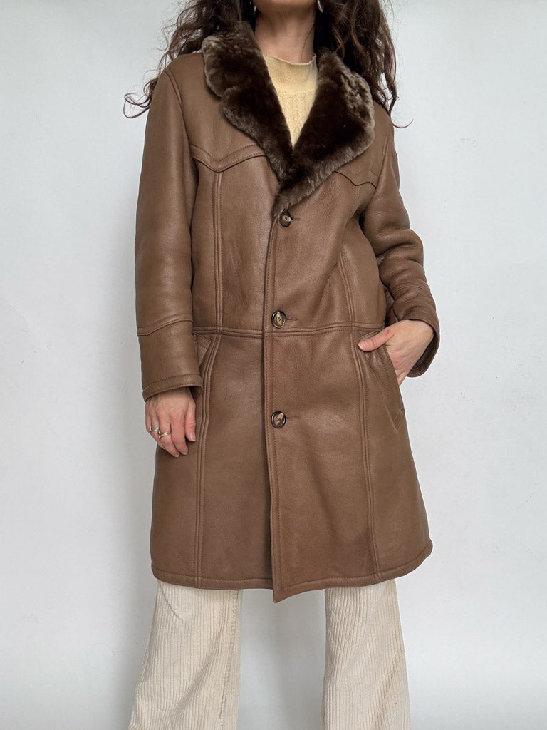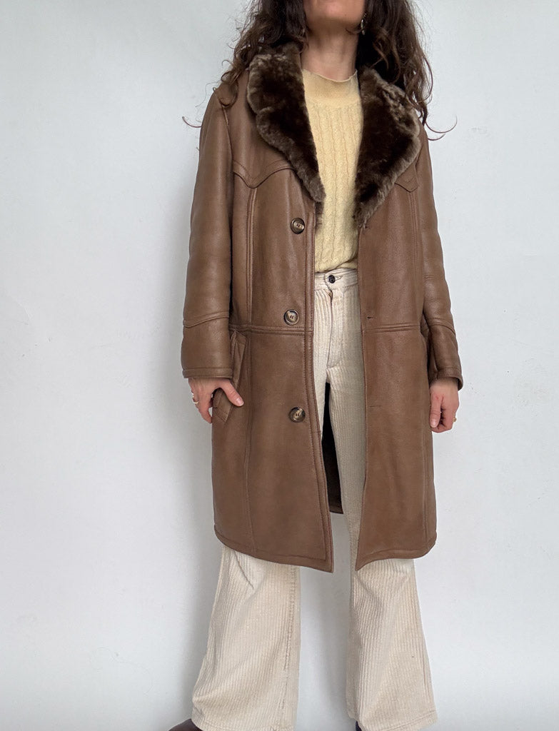 Vintage 70’s Taupe Shearling Leather Long Coat