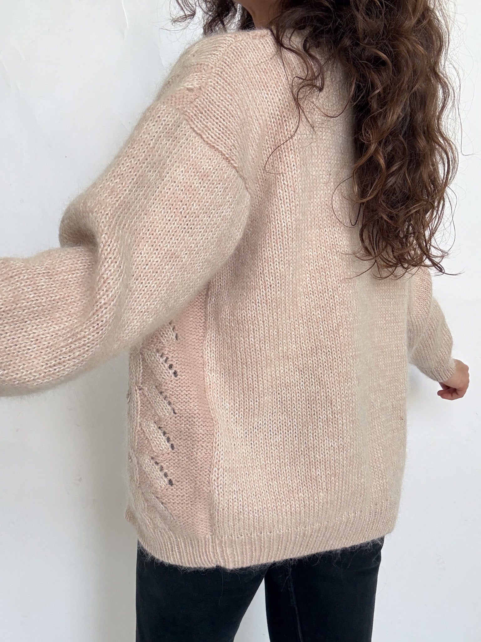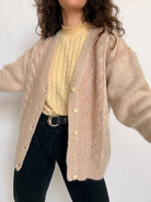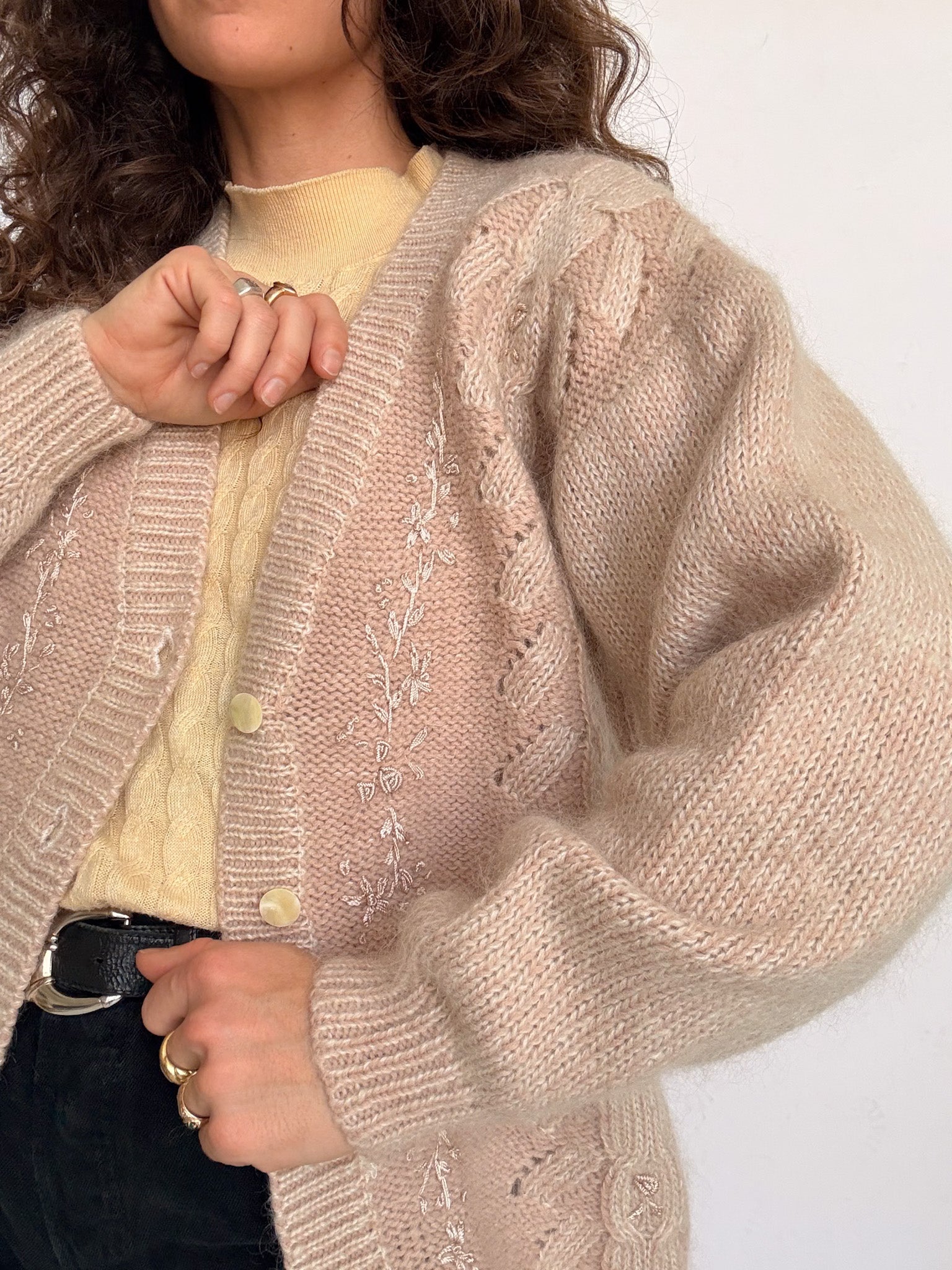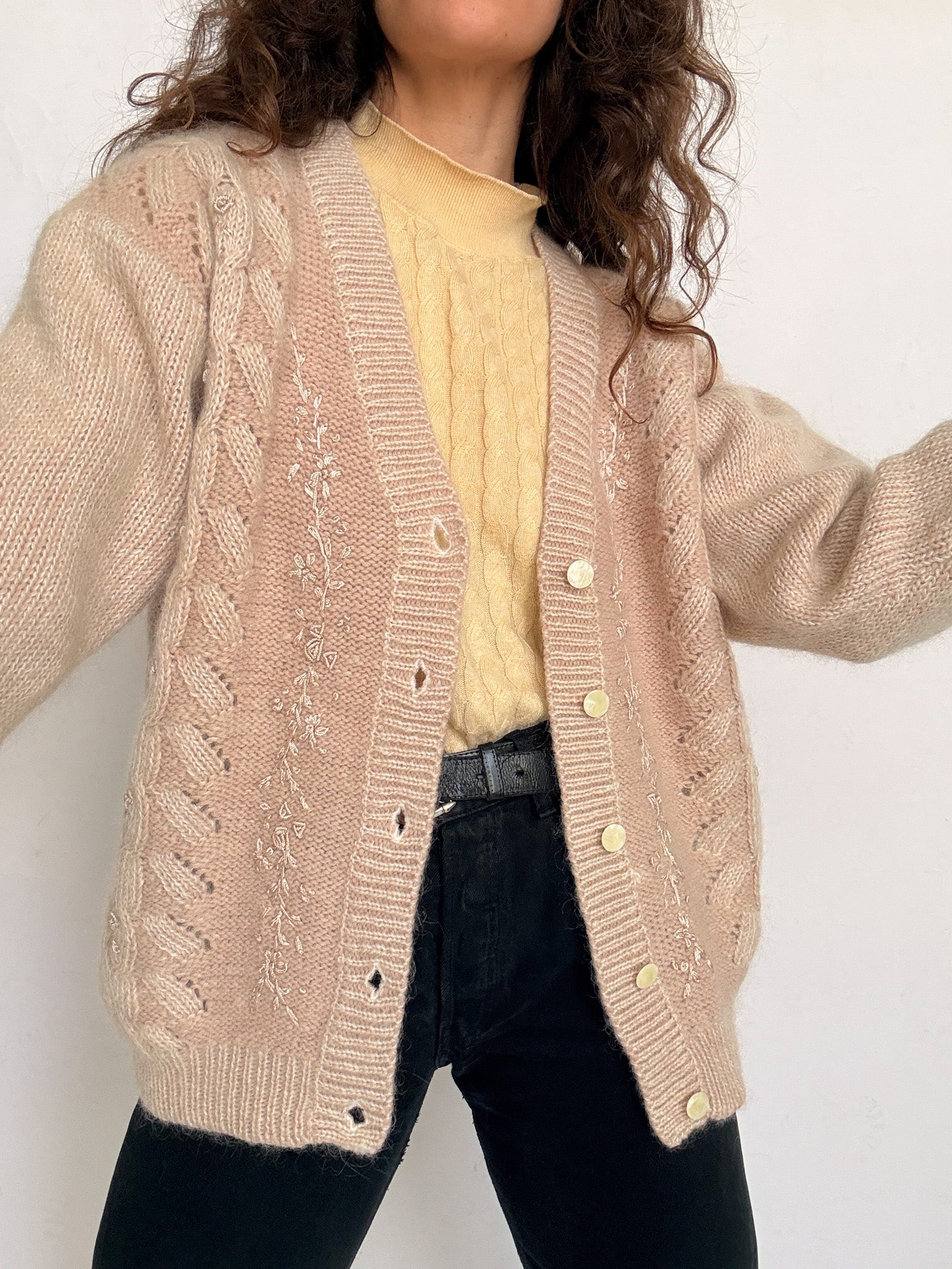 Vintage 80’s Beige Light Pink Embroidered Mohair Cardigan