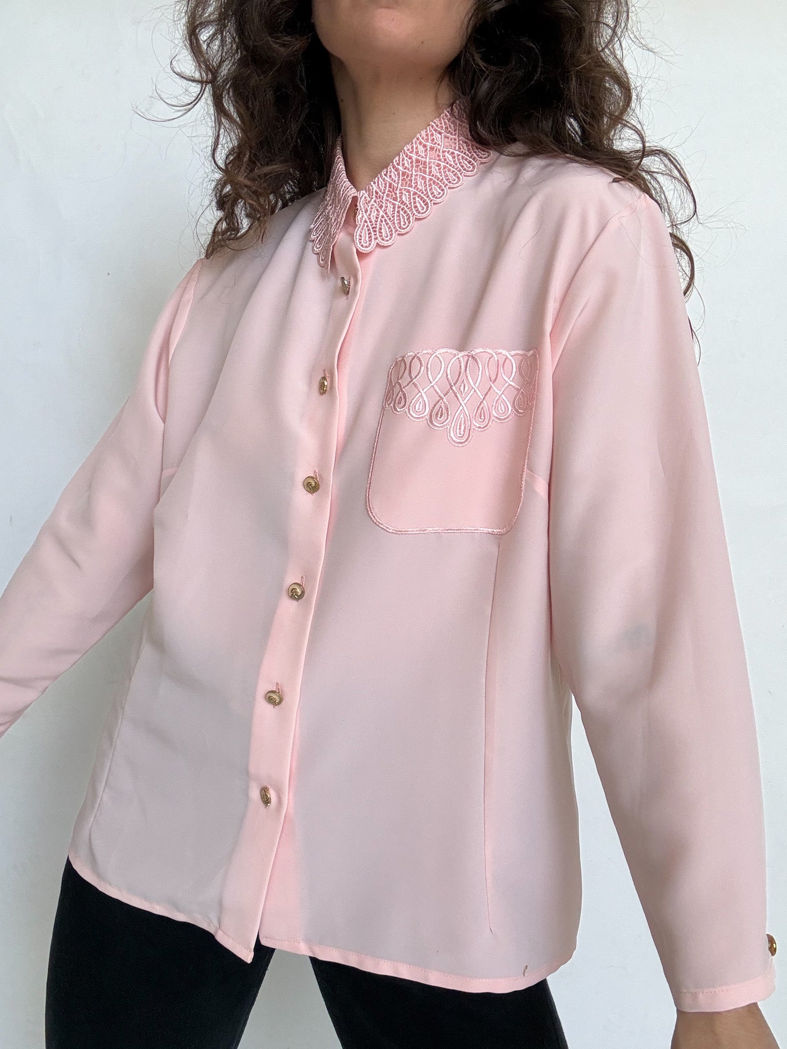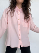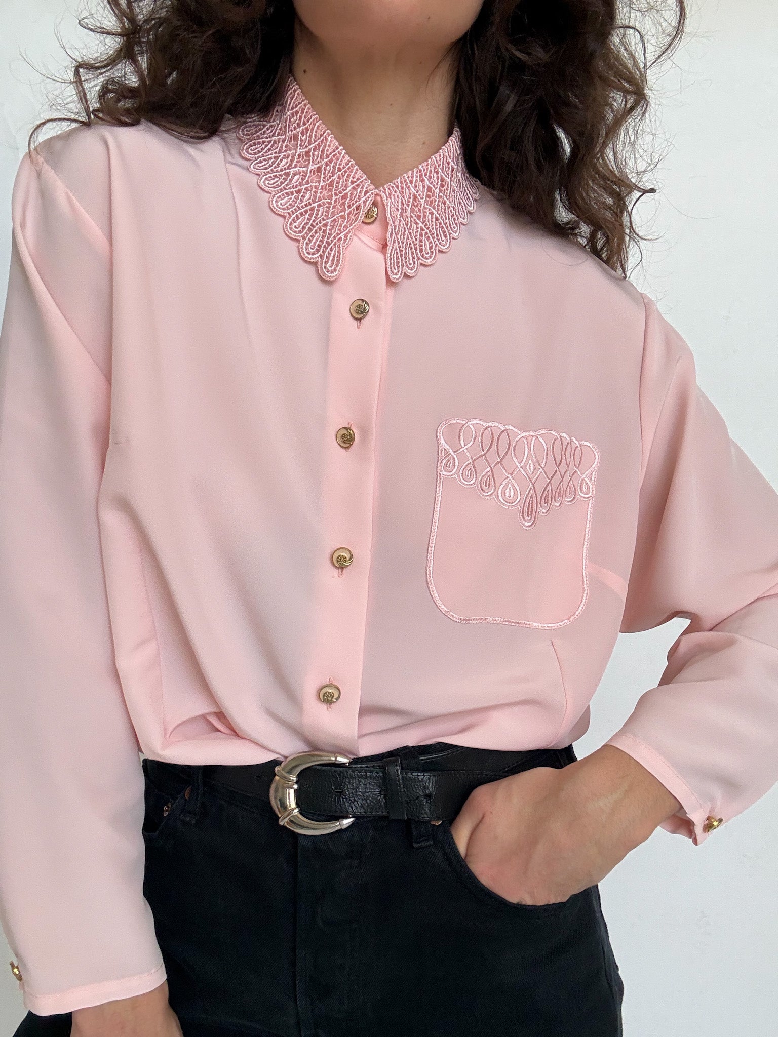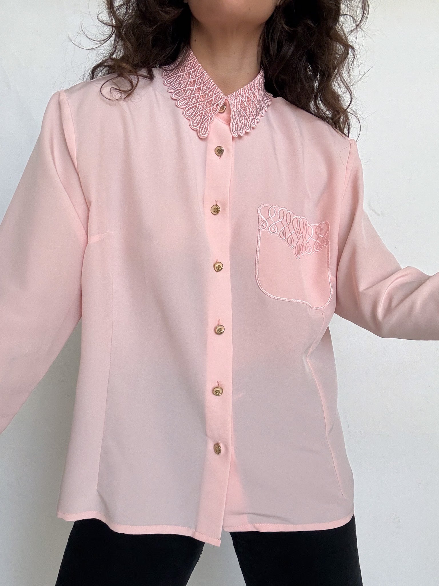 Vintage 80’s Light Pink Embroidered Collar Pink Blouse