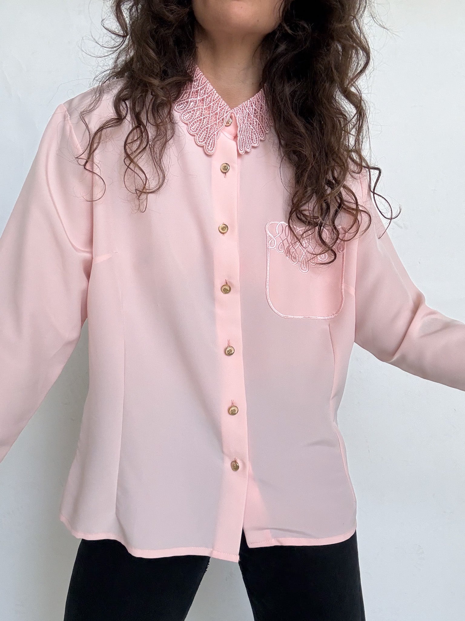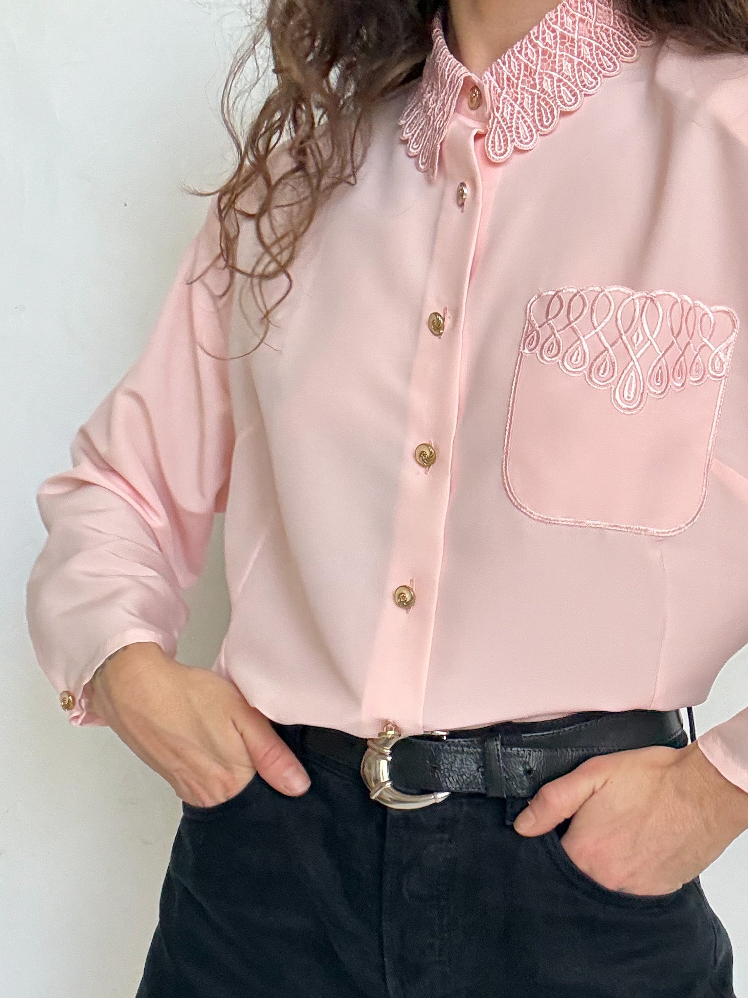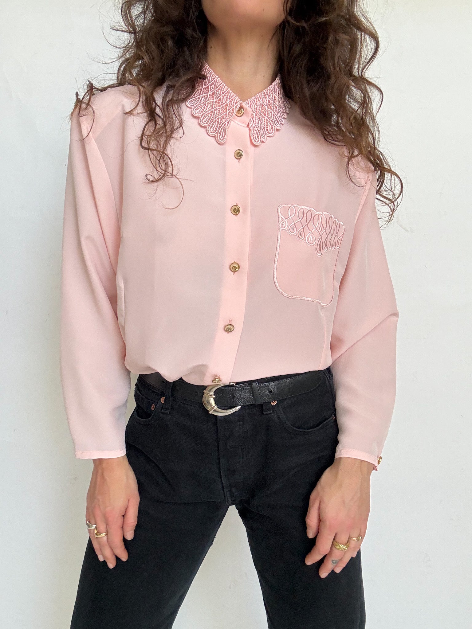 Vintage 80’s Light Pink Embroidered Collar Pink Blouse
