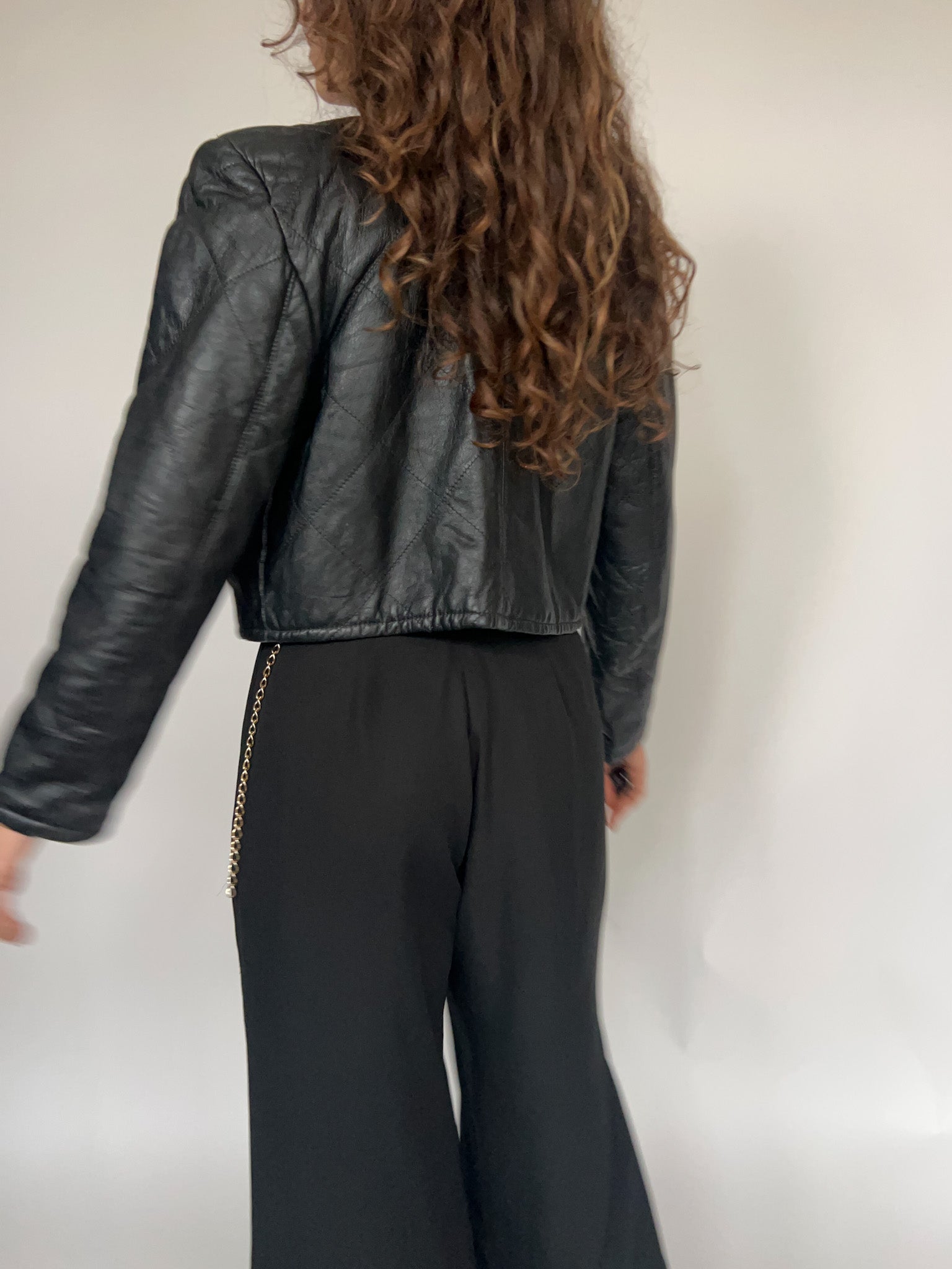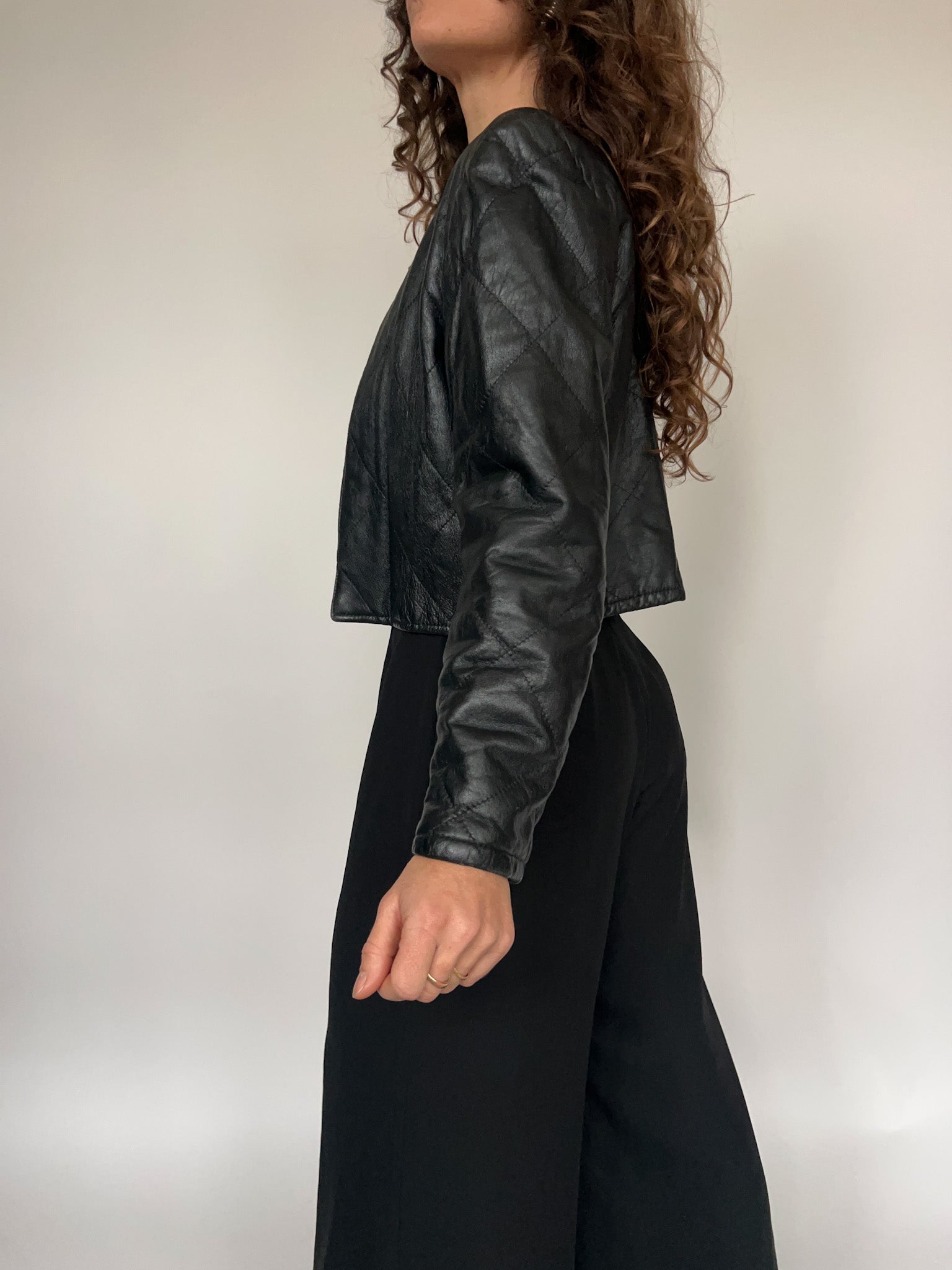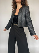 Vintage 90’s Black Quilted Cropped Leather Jacket